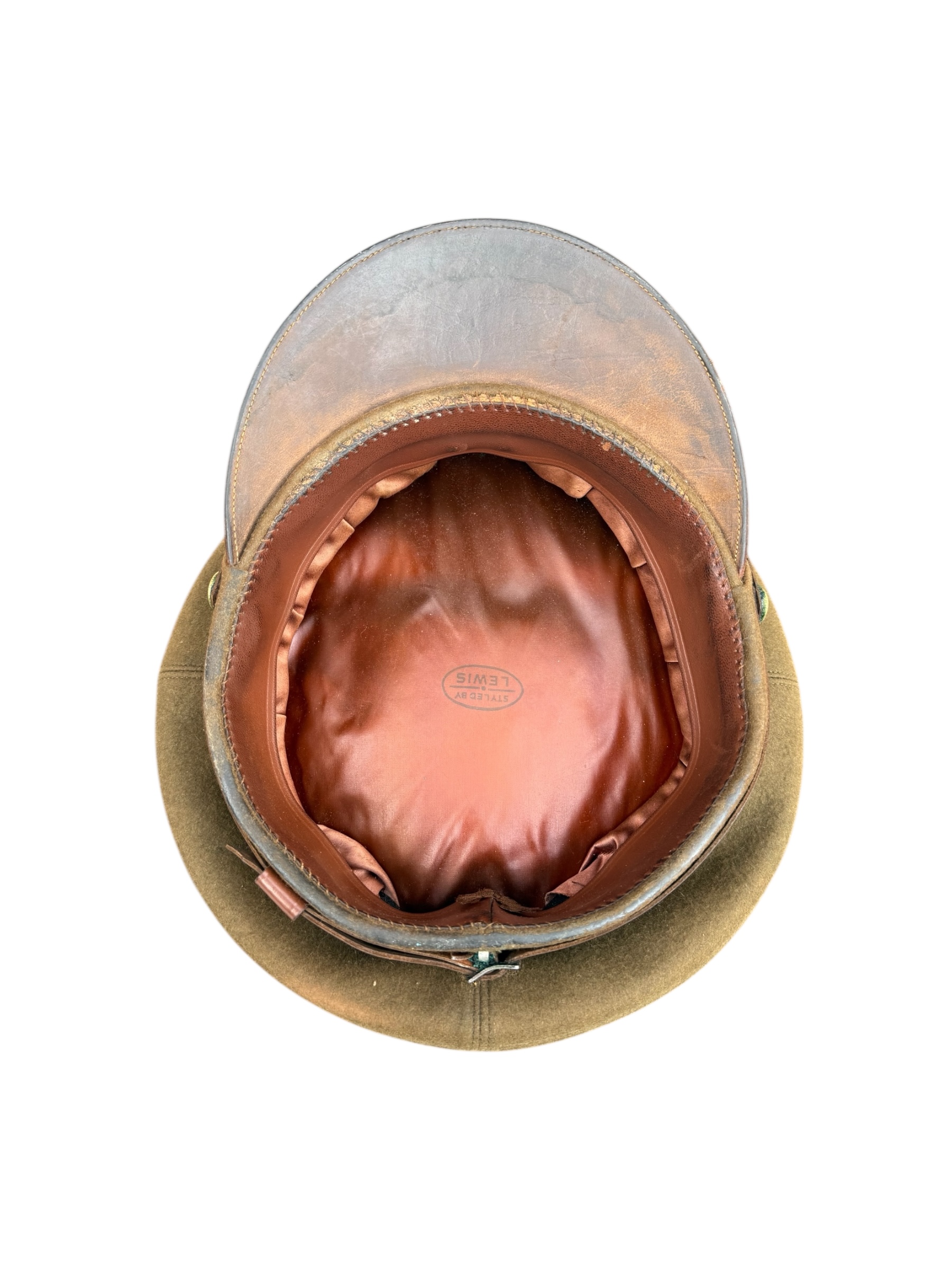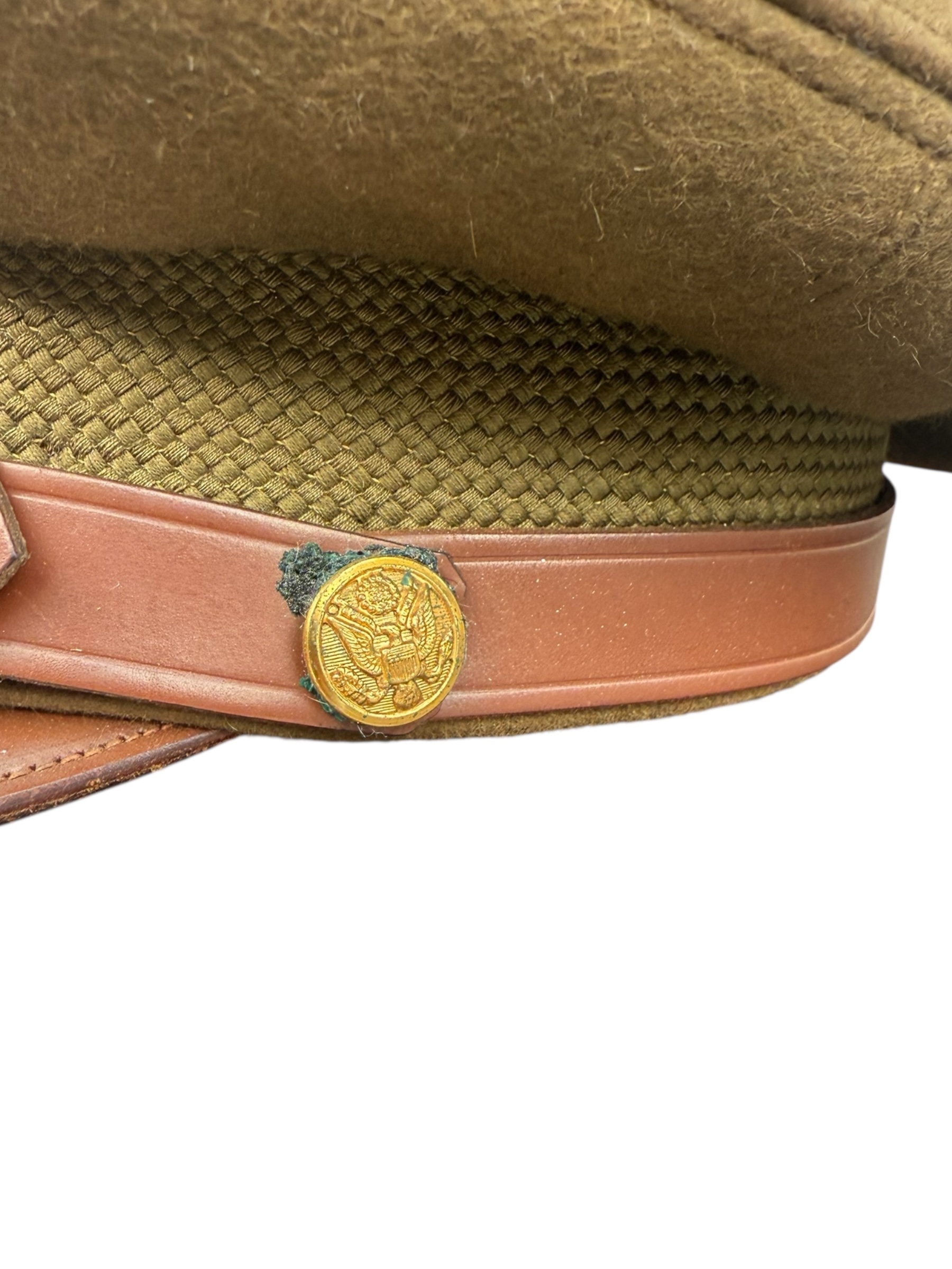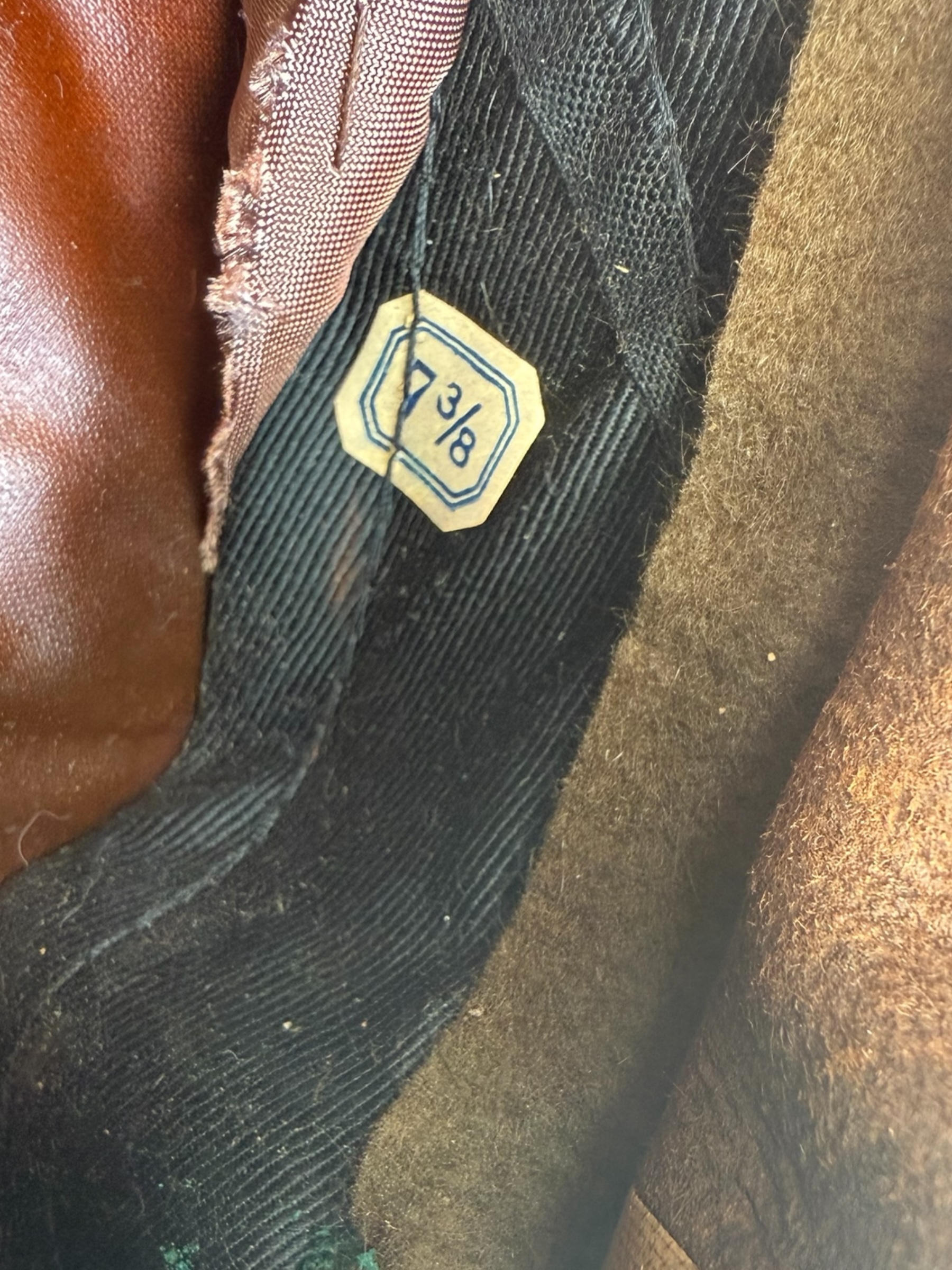 Amerikaanse WO2 Officierspet in zeer nette staat. Het leer is nog mooi soepel en de vorm is goed behouden. Het exemplaar is maat 7 3/8 en het producentenmerk is nog duidelijk zichtbaar. Er is bovendien geen sprake van mot of waterschade.
