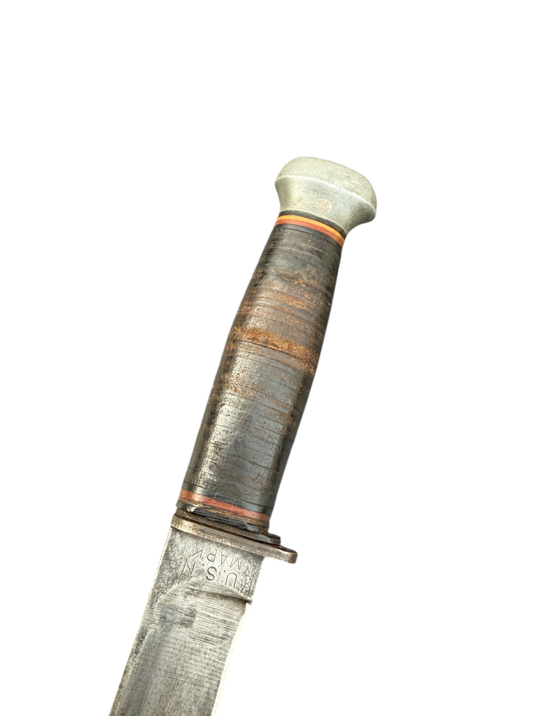 Amerikaans WO2 MK1 Navy gevechtsmes in goede staat, vervaardigd door de bekende producent PAL. Alle markeringen zijn duidelijk zichtbaar, zowel op het mes als op de schede. Let op: in verband met de huisregels kan dit item niet via PayPal worden afgerekend. Verkoop uitsluitend aan personen van 18 jaar en ouder.
