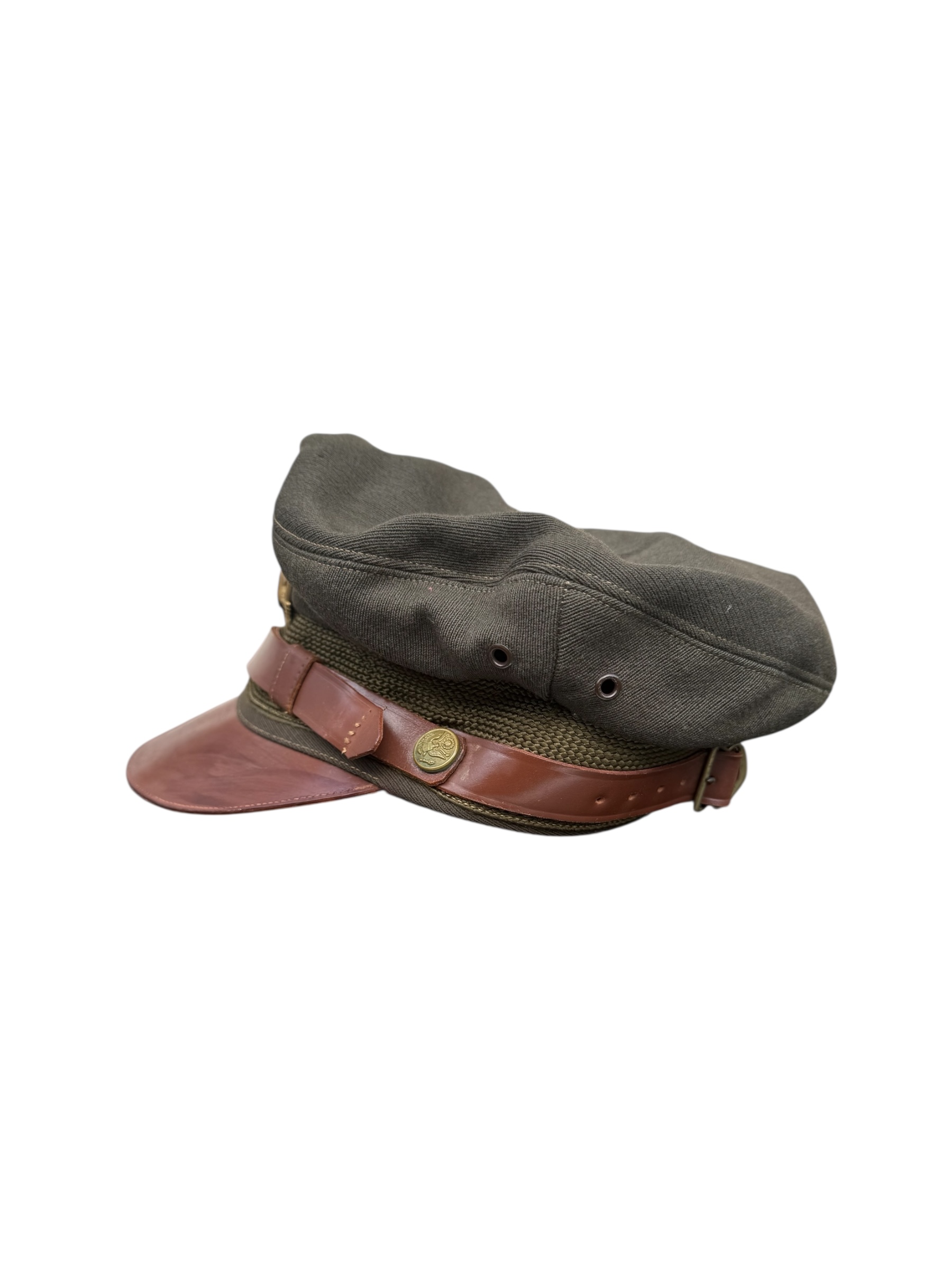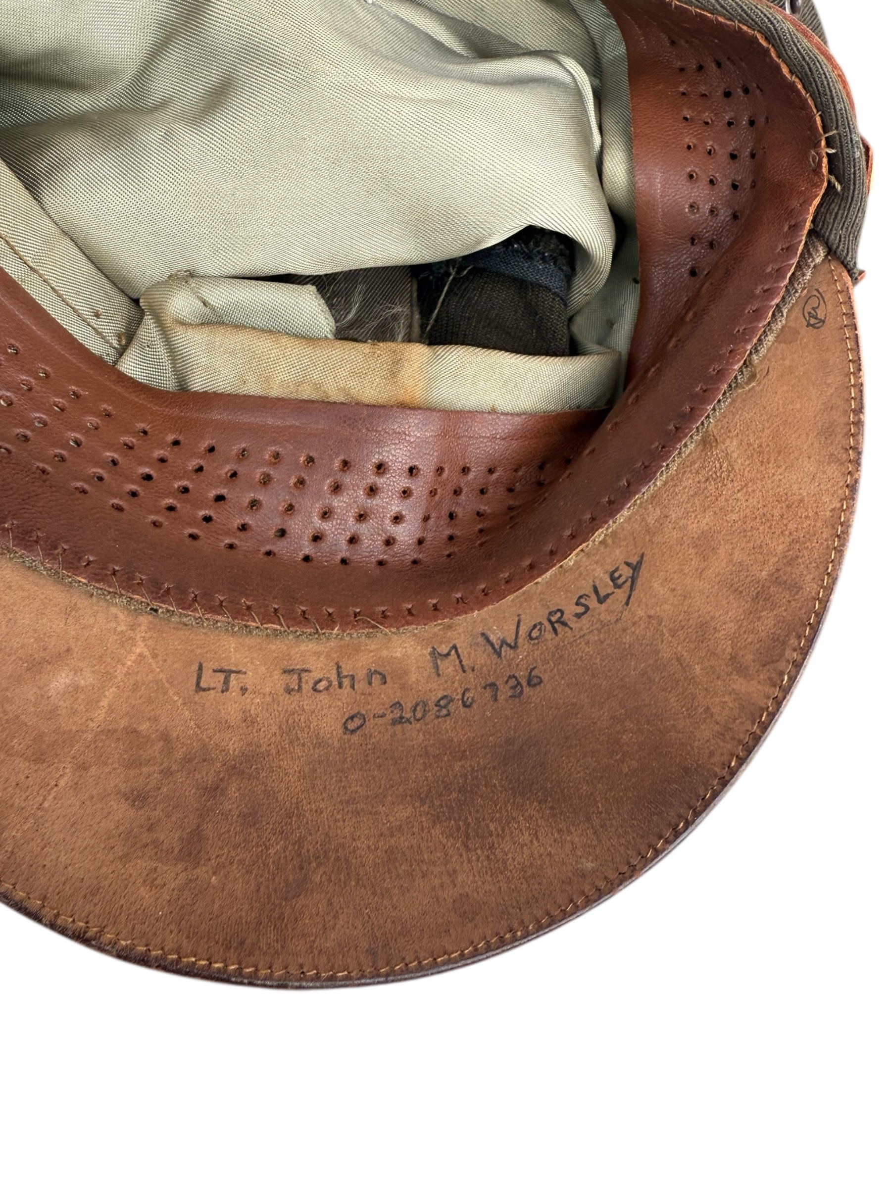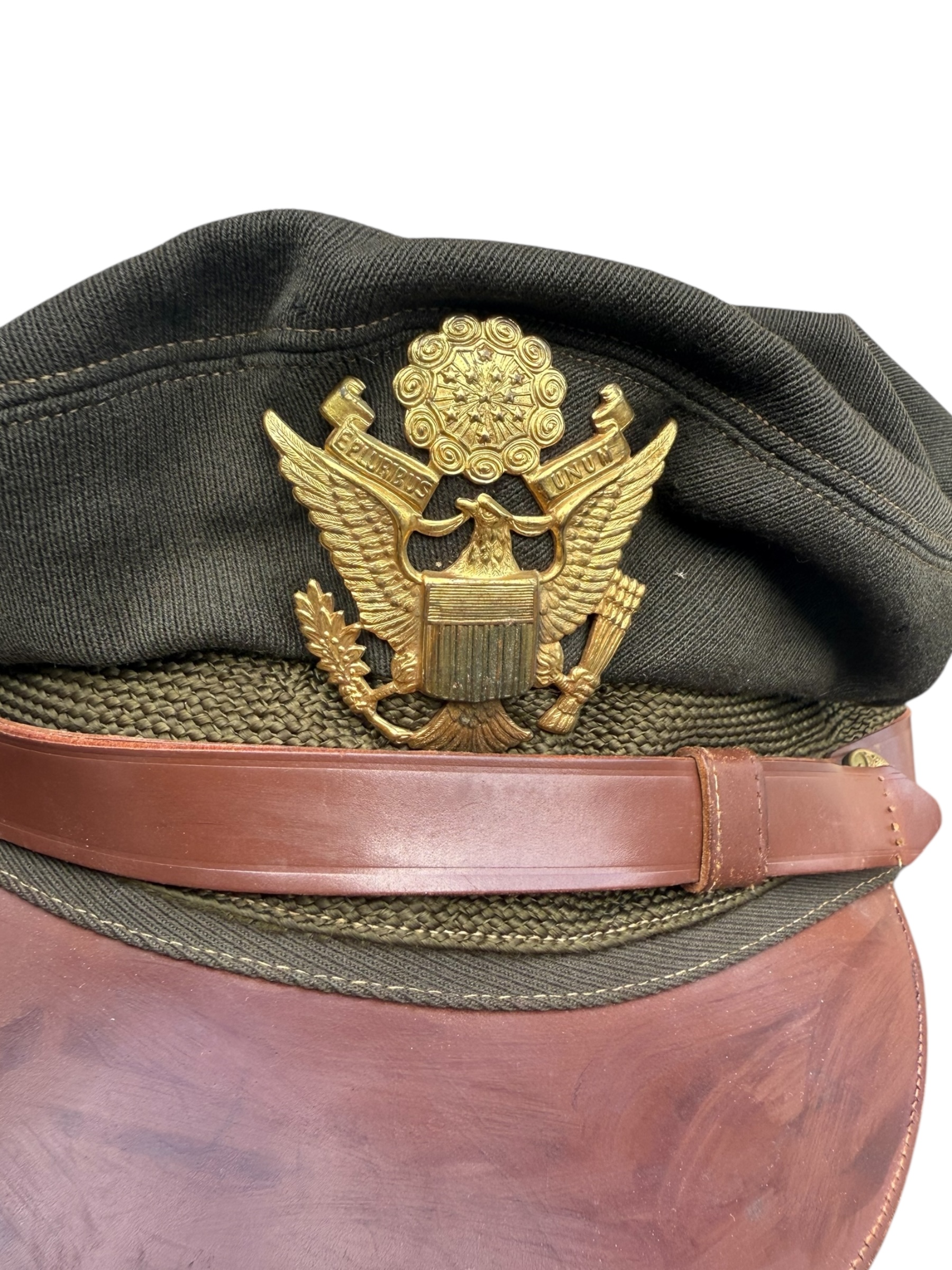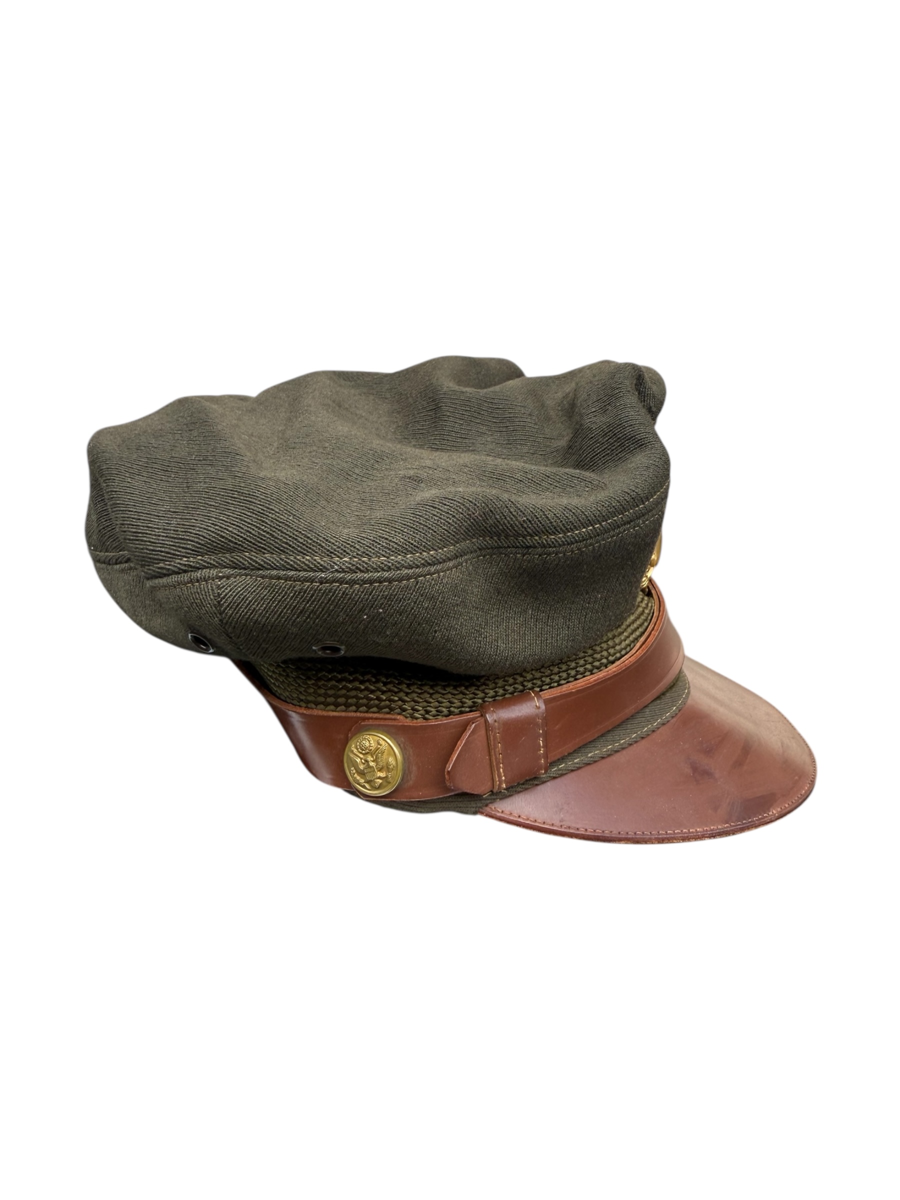 Amerikaanse WO2 USAAF Crusher pet in gedragen staat. Het exemplaar is ongeveer maat 6 3/4. Het leer is nog soepel en de vorm is vrij goed behouden. Op de pet is een naam en nummer terug te vinden; verder is hier nog geen onderzoek naar gedaan.