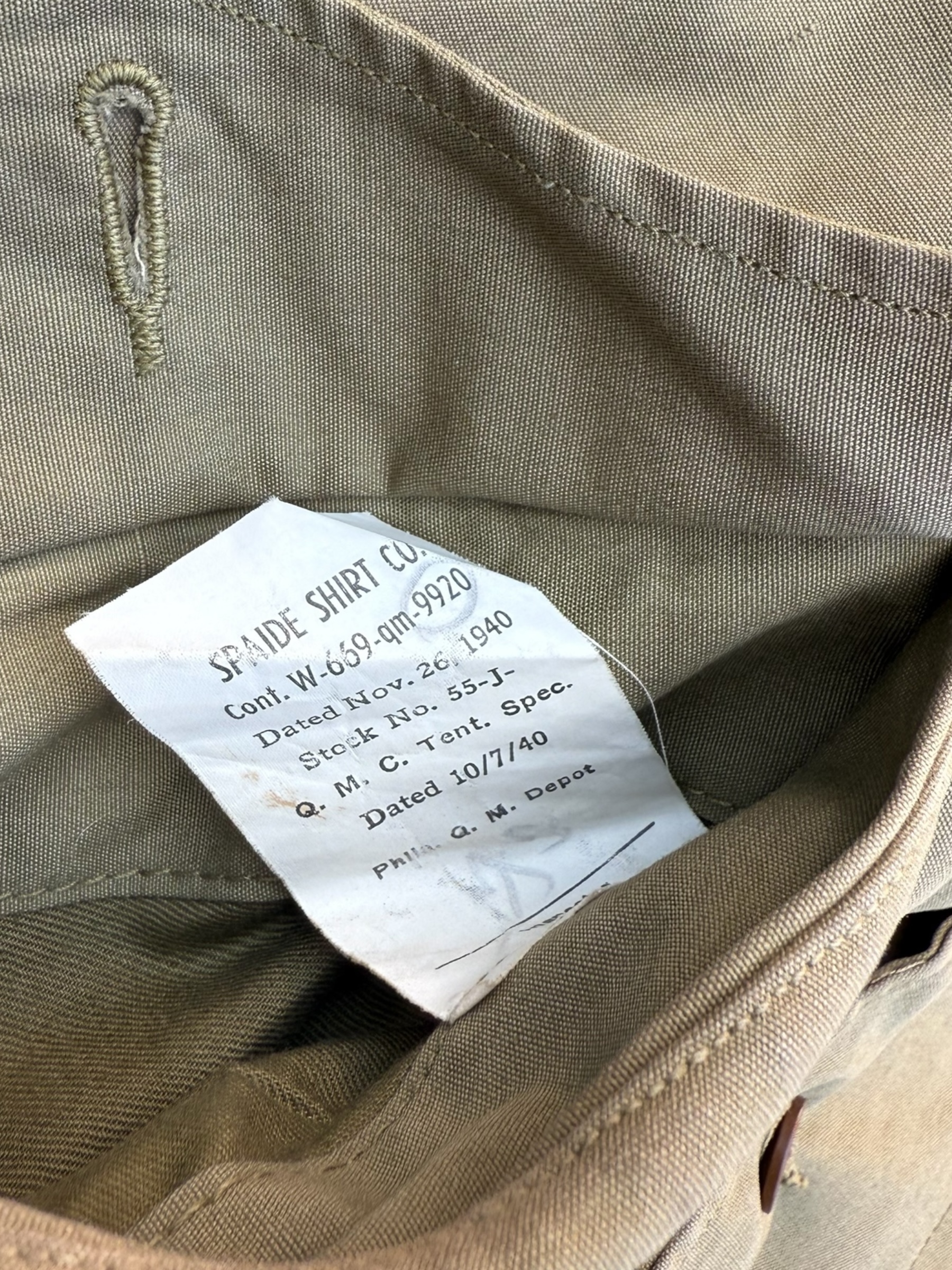 Amerikaanse WO2 Field Jacket uit 1940. Deze zeldzame vroeg-oorlogse M41 verkeert in zeer nette staat. Het verschil met latere uitgaven is het flapje boven de zakken. Dit exemplaar heeft nog een goed leesbaar label, waaruit blijkt dat het in 1940 is geproduceerd. Het betreft maat 10 en in de nek is nog een naam en nummer terug te vinden.