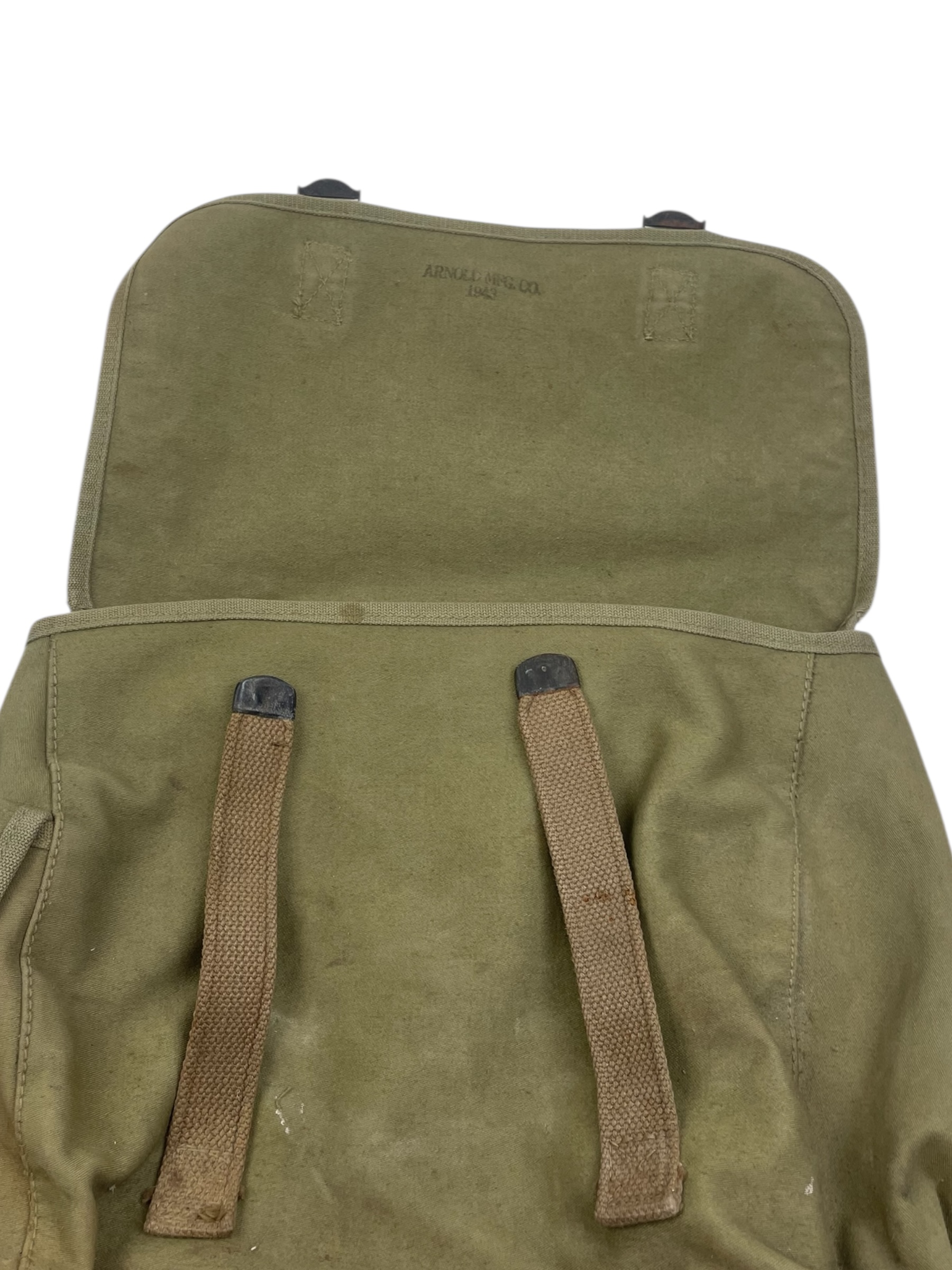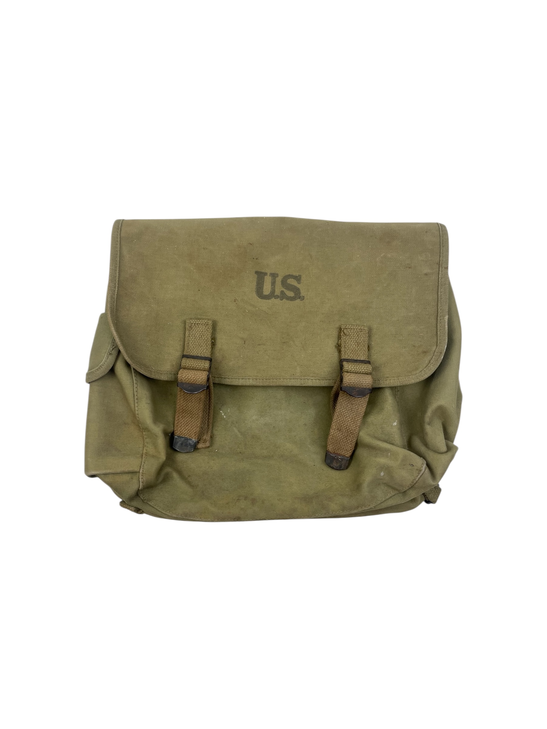 Amerikaanse WO2 M36 musette bag. Deze rubberized tas is geïmpregneerd met een waterafstotende coating om deze waterdicht te maken. Dit exemplaar is 1943 gedateerd en verkeert in hele nette staat.