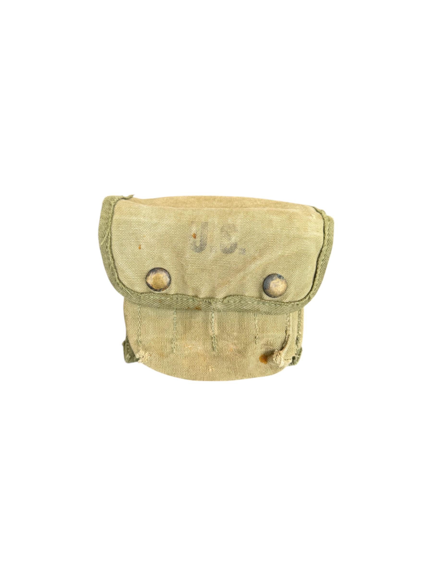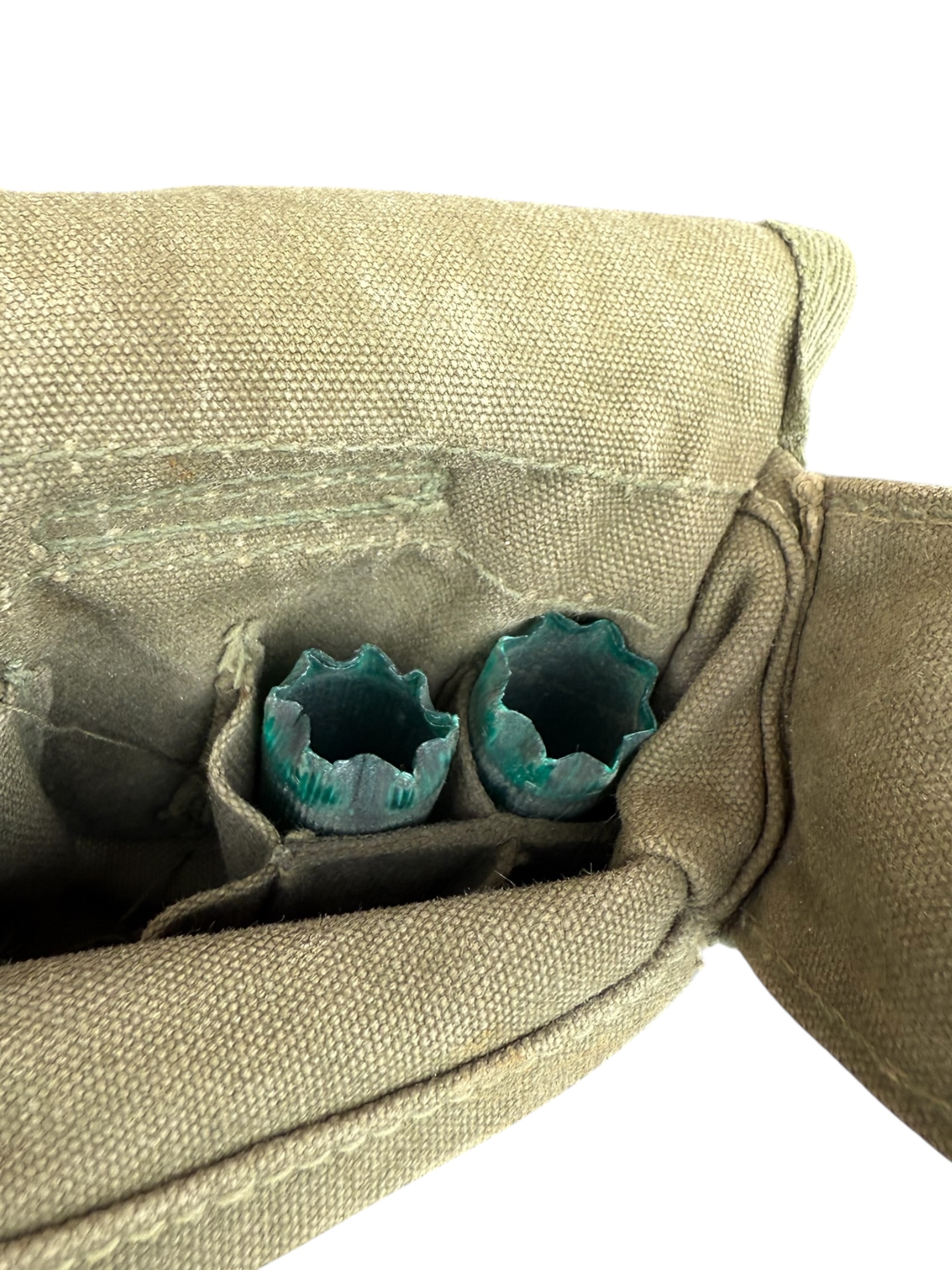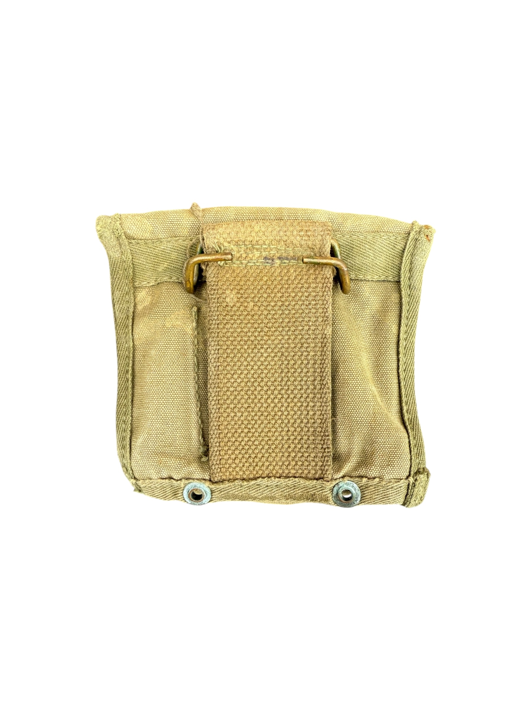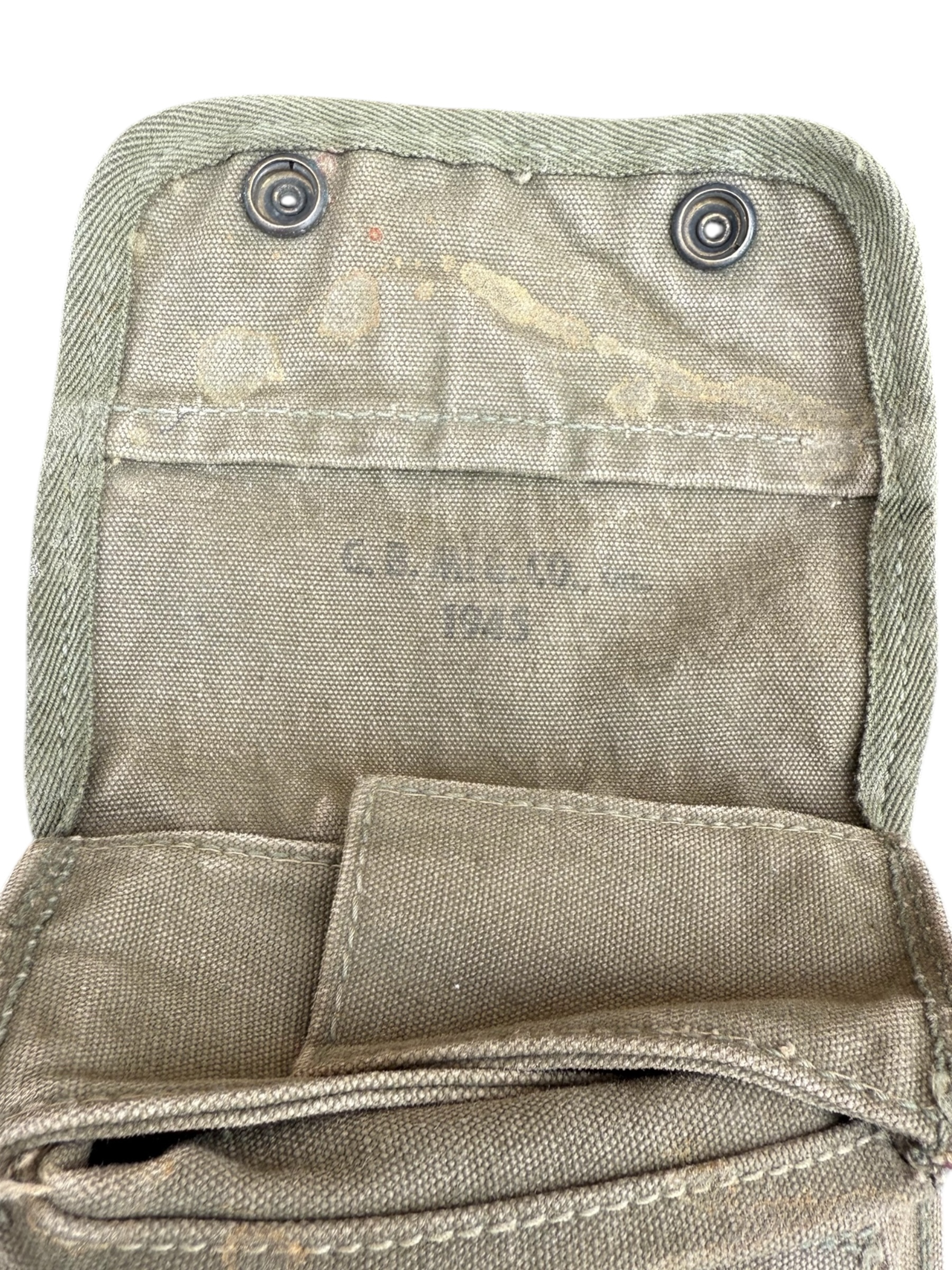 Amerikaanse WO2 M2 First Aid Kit. Dit exemplaar is gedateerd 1945 en verkeert in gebruikte staat. Deze variant werd voornamelijk ingezet in de jungle en in de Pacific.