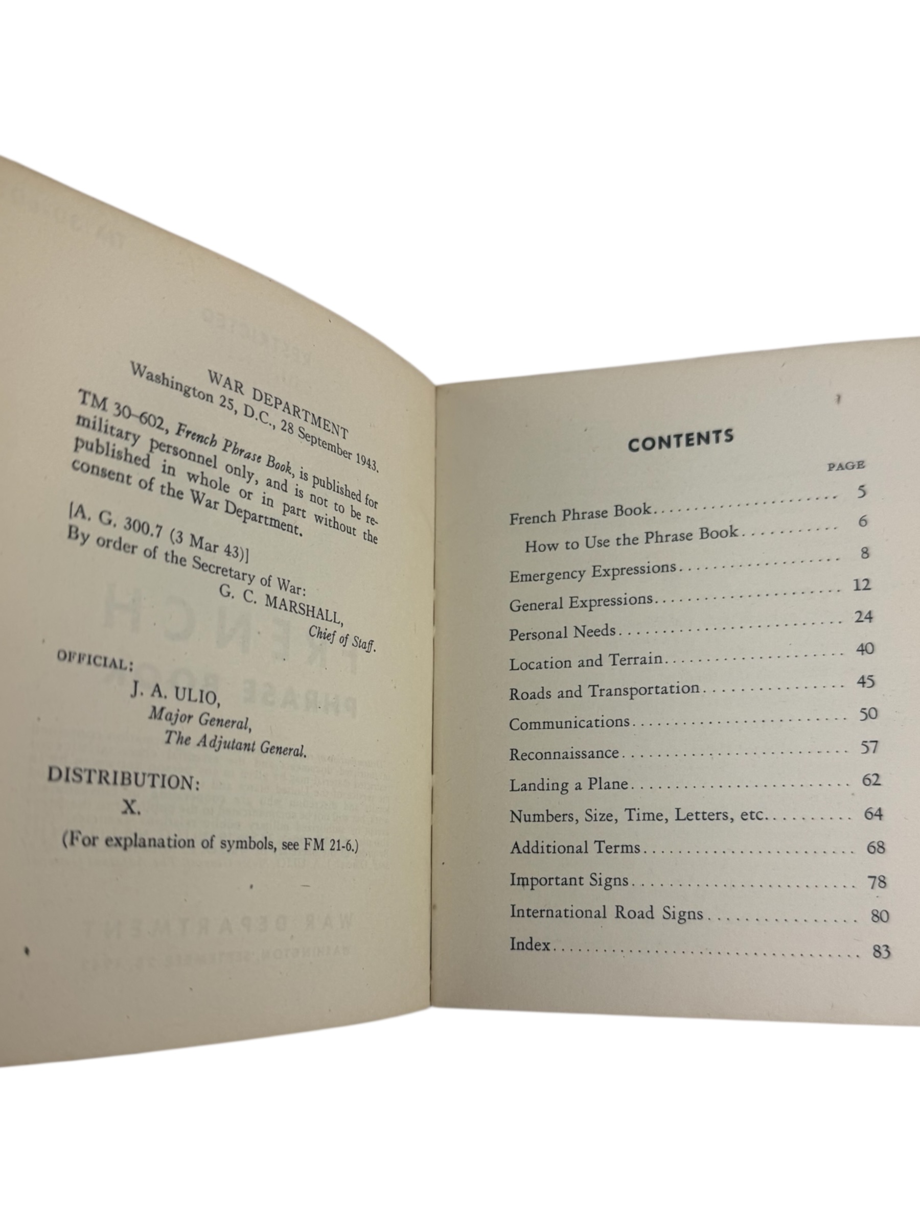 Amerikaanse WO2 Franstalige TM30-602 taalgids