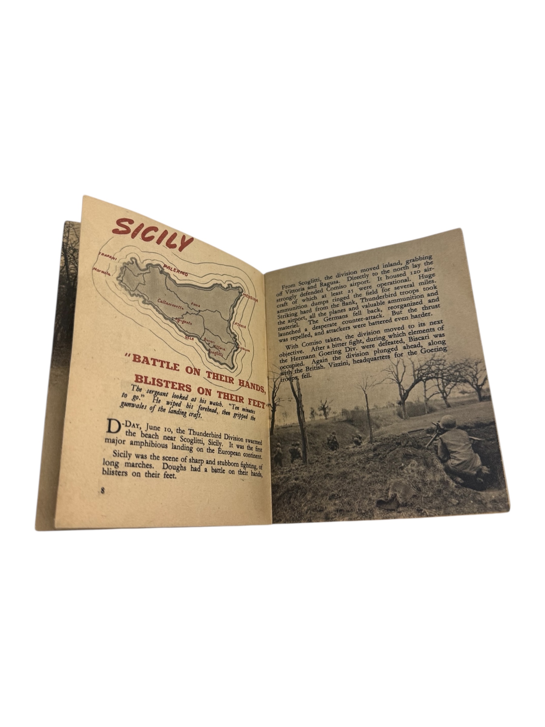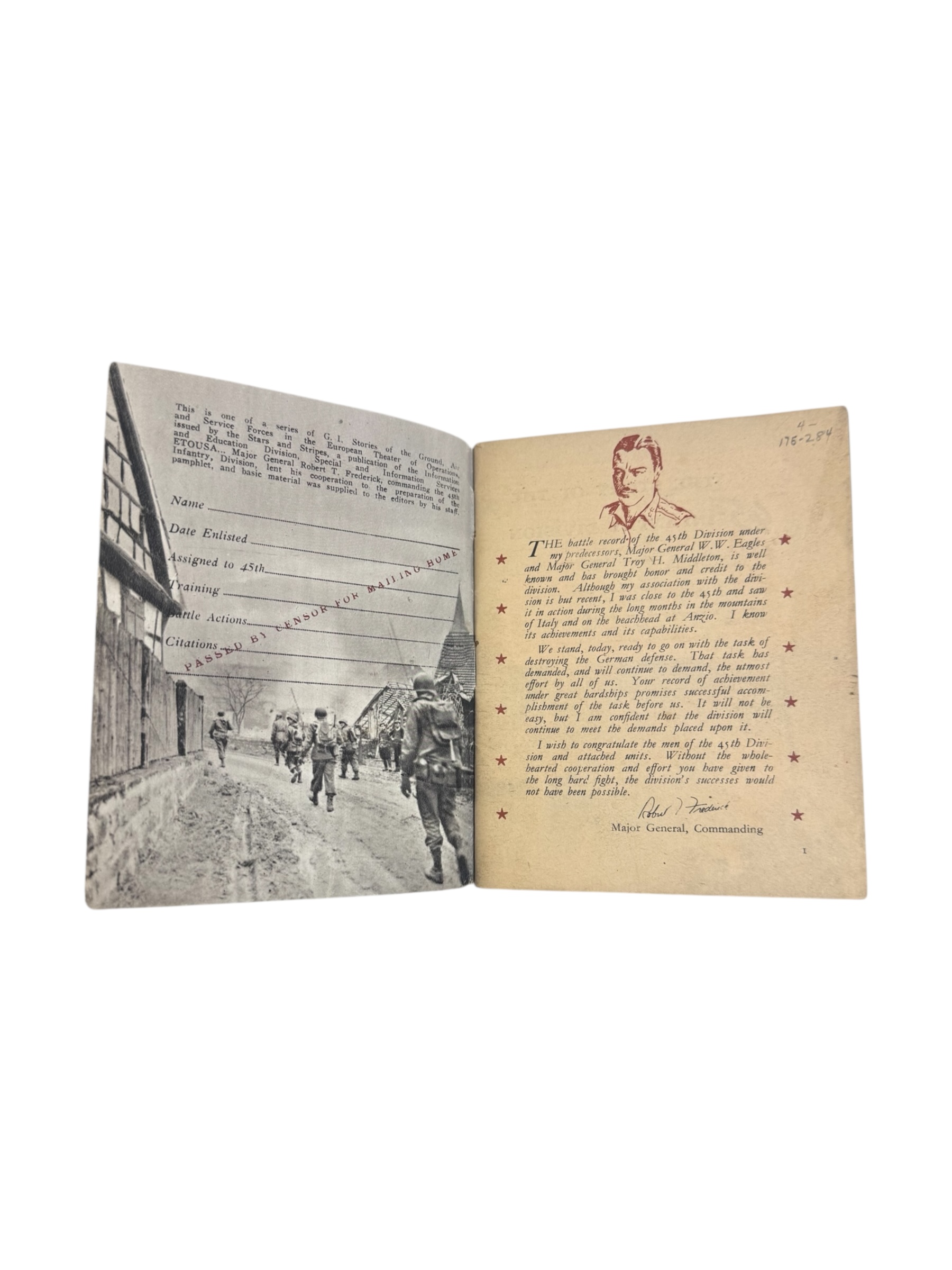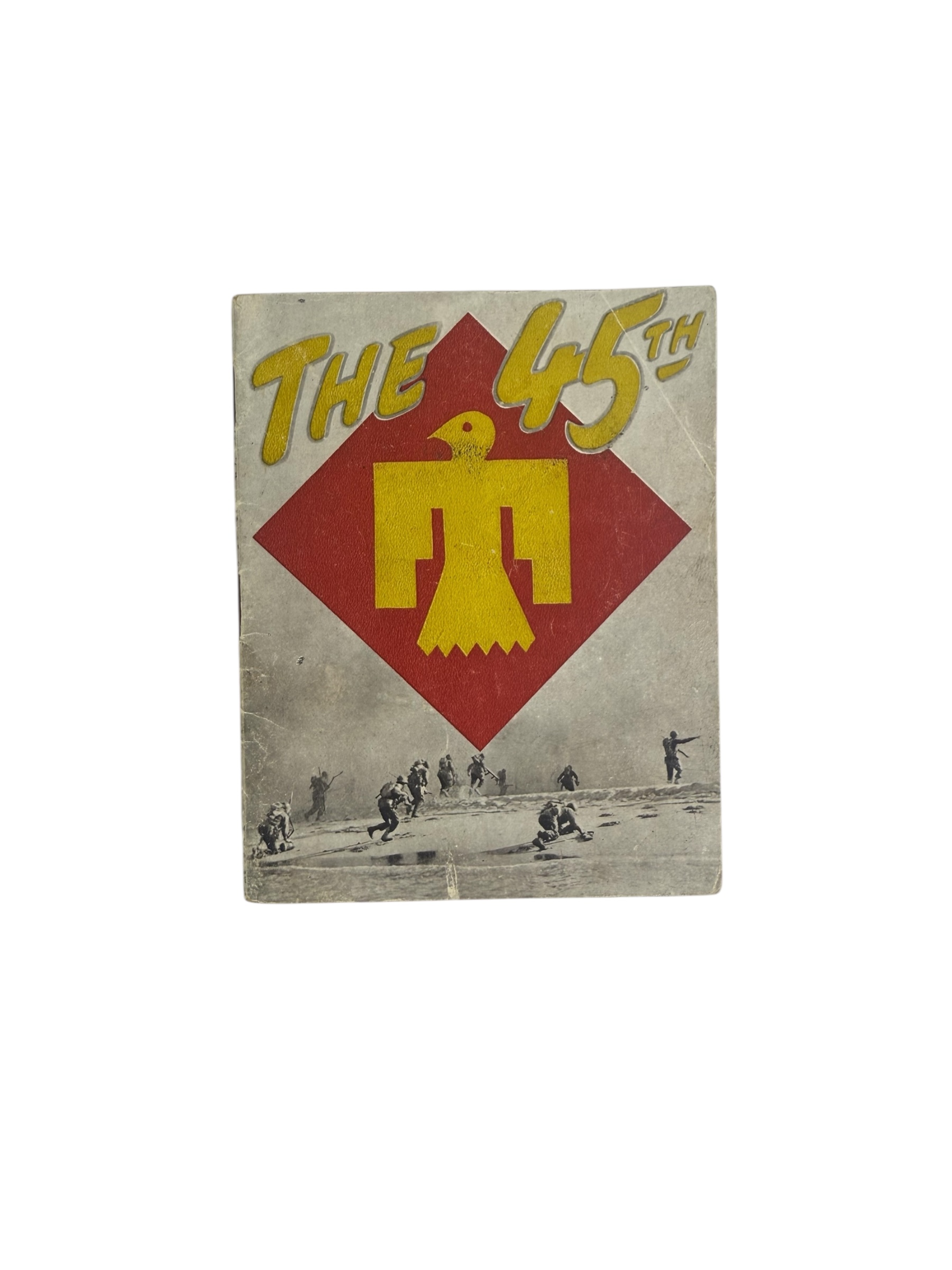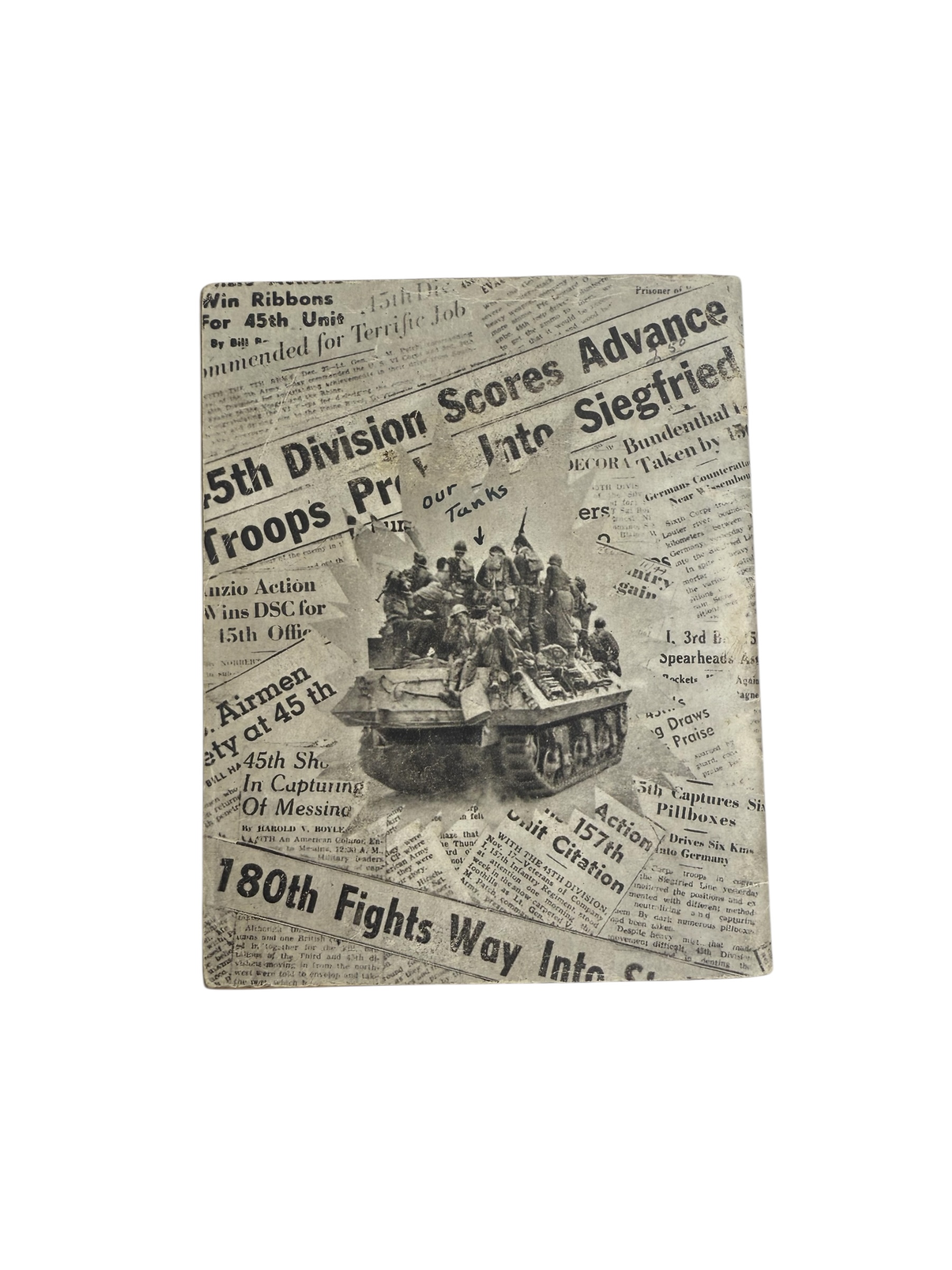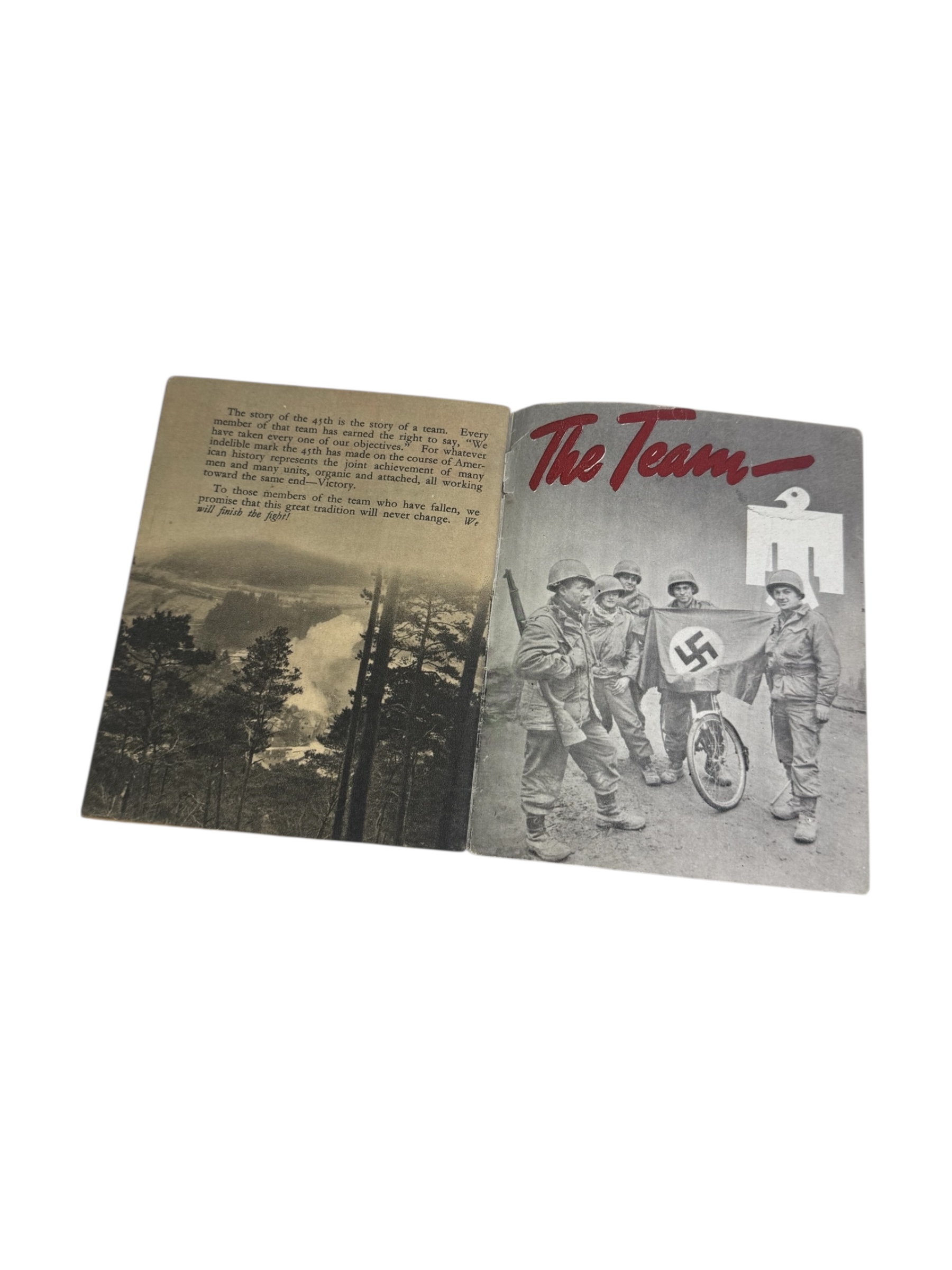 Amerikaans WO2 45th Infantry Division boekje. Het betreft een periodiek boekje in goede staat. Hierin wordt onder anderen de betrokkenheid van de Divisie besproken in de Tweede Wereldoorlog en andere relatieve informatie.