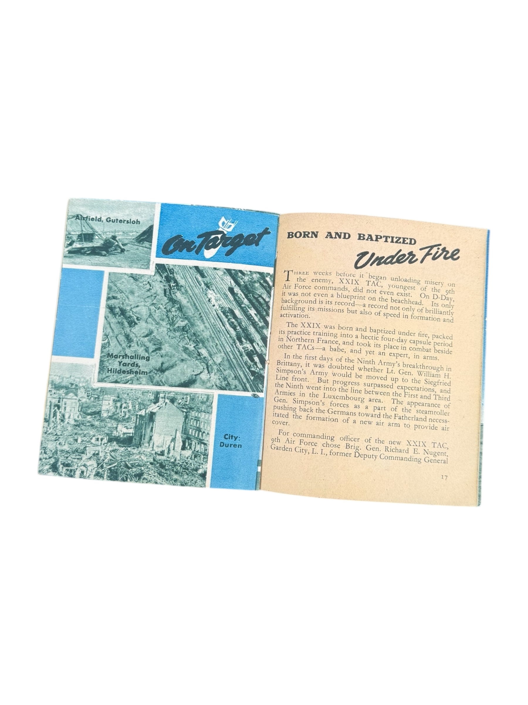 Amerikaans WO2 XXIX TAC, 9th Air Force boekje. Het betreft een periodiek boekje in goede staat. Hierin wordt onder anderen de betrokkenheid van de Divisie besproken in de Tweede Wereldoorlog en andere relatieve informatie.