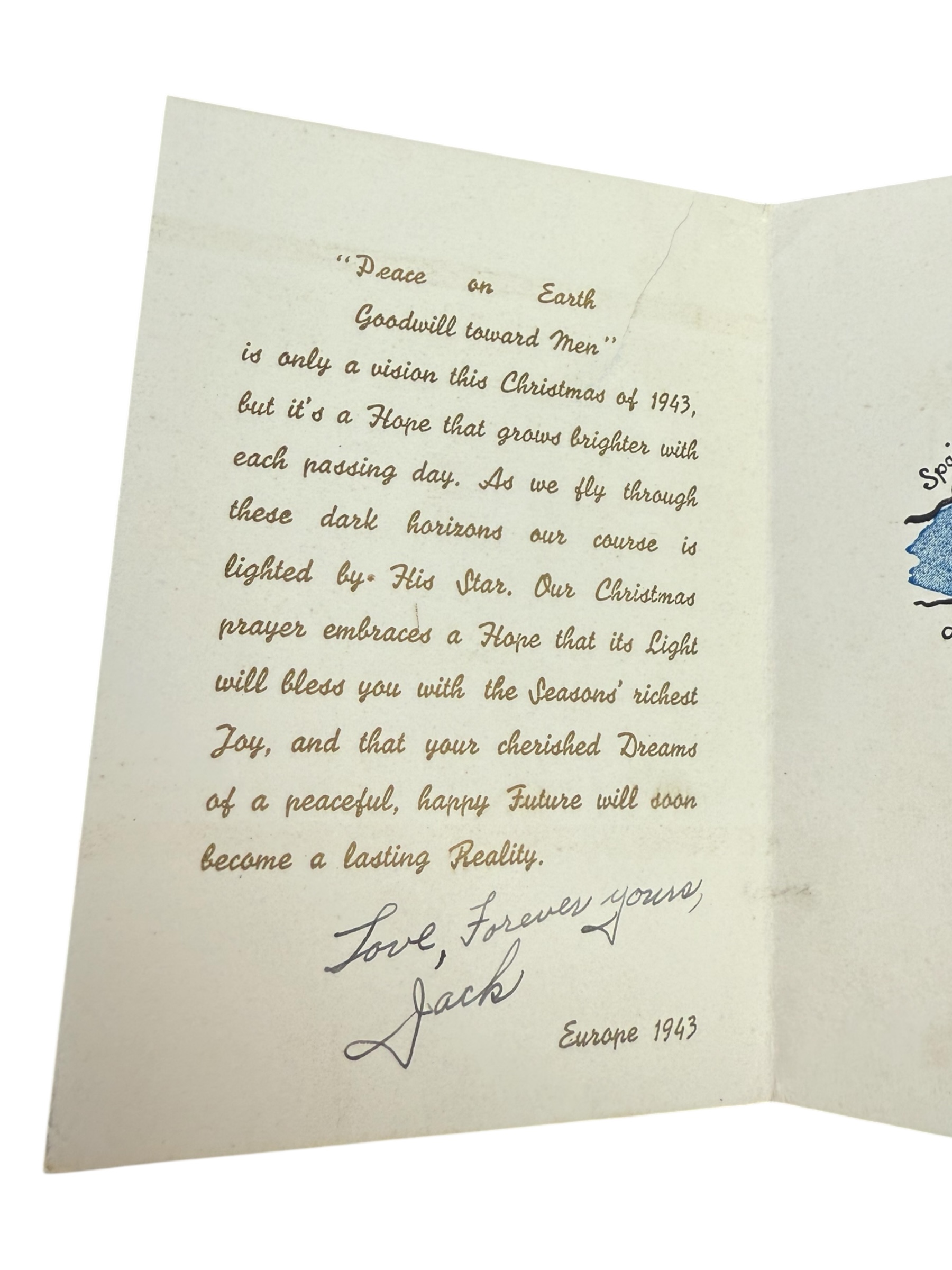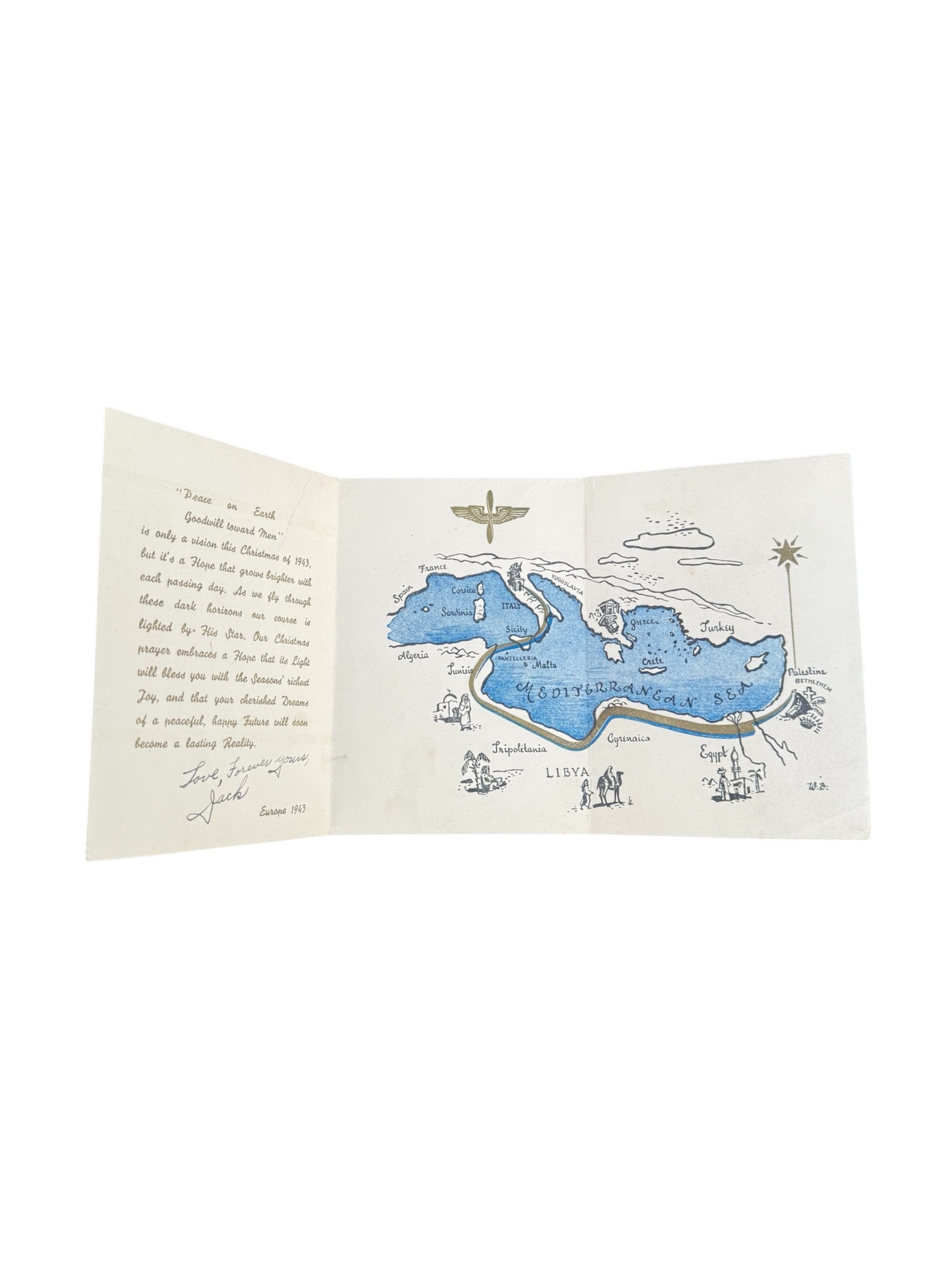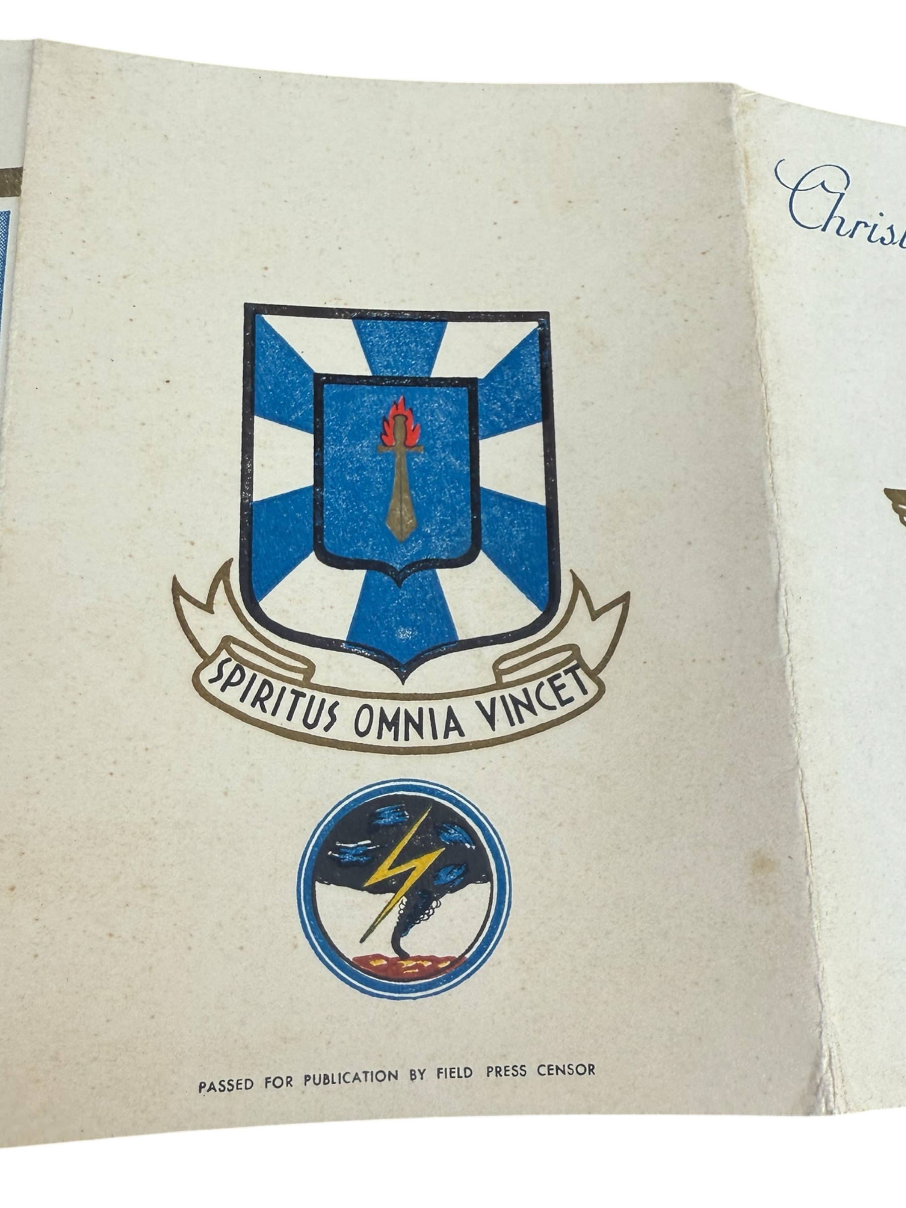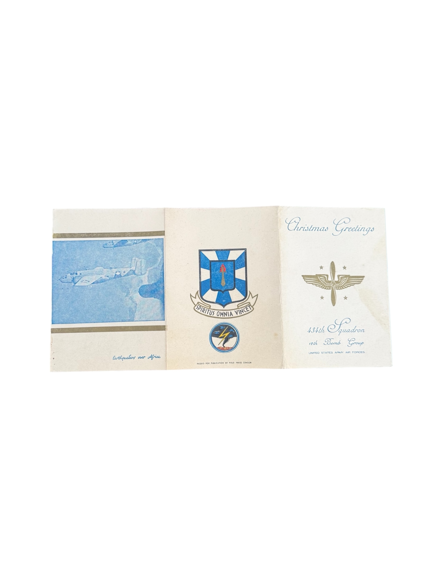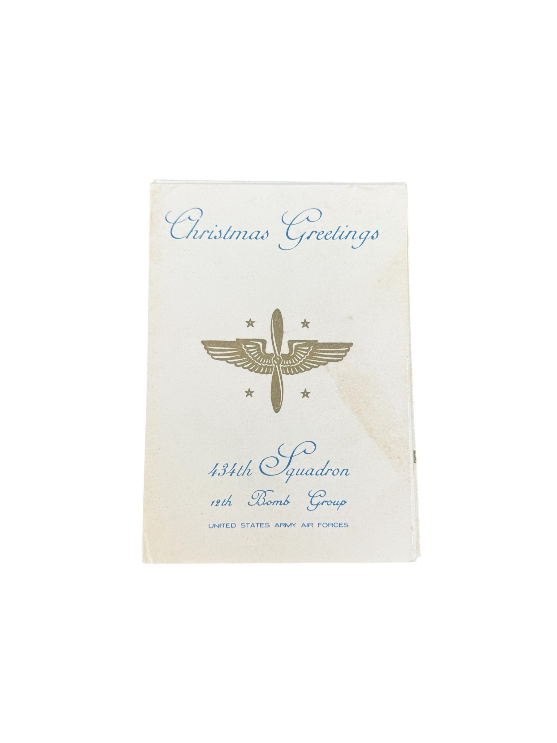 Amerikaanse WO2 USAAF 434th Bomb Squadron, 12th Bomb Group, kerstkaart in nette staat. Dit exemplaar is geproduceerd in 1943, toen ze in Foggia, Italiƫ waren gestationeerd.