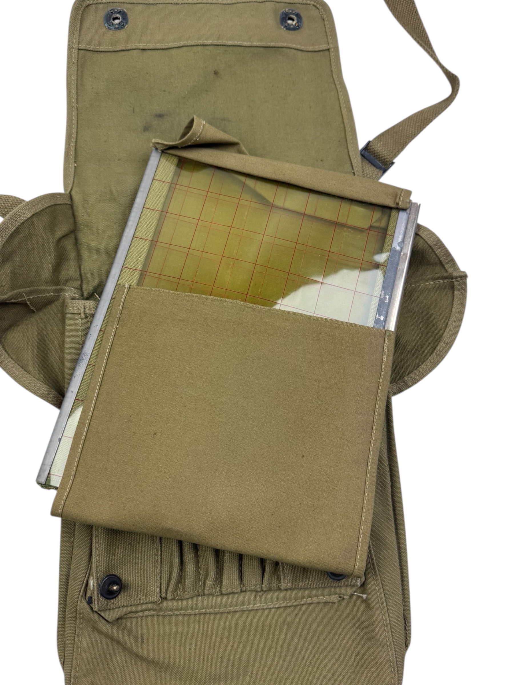 Amerikaanse WO2 kaartentas in zeer nette staat. Dit exemplaar is 1942 gedateerd en de kaartenhoes (grid) die meestal ontbreekt in nog aanwezig. Alle markeringen zijn overigens nog duidelijk leesbaar.