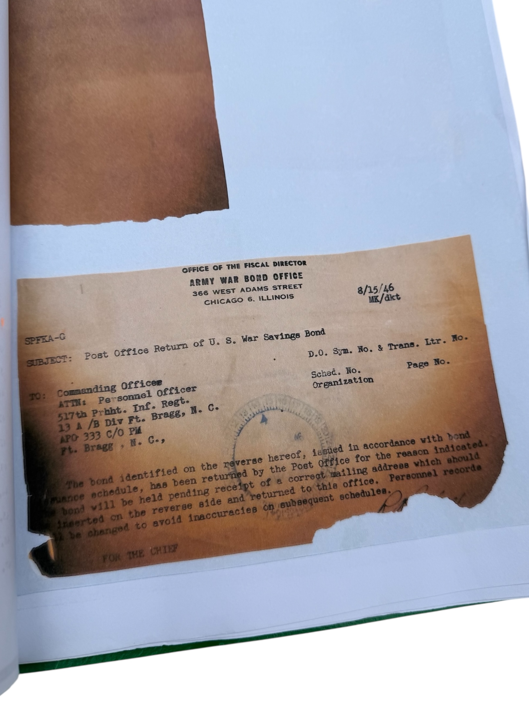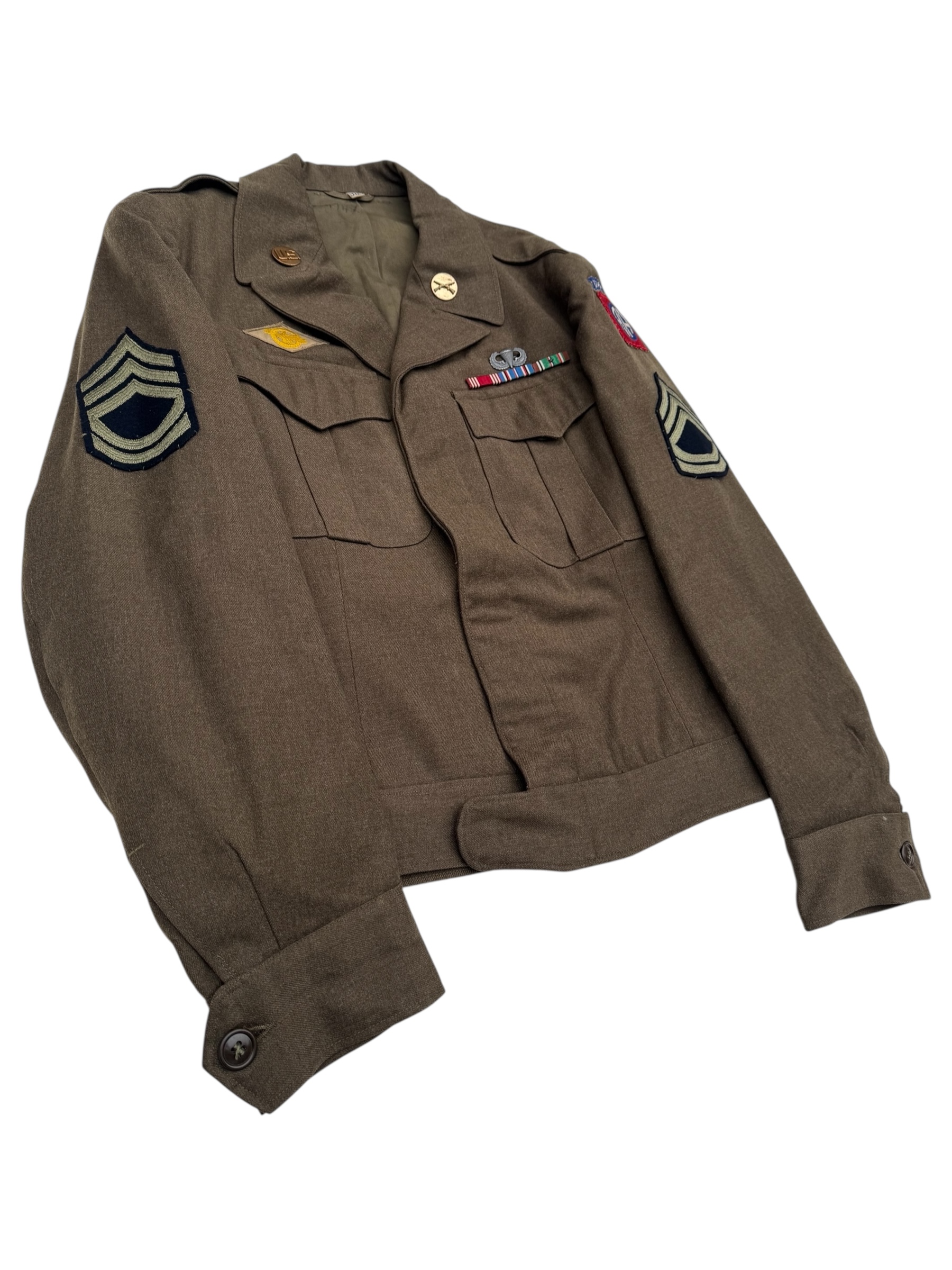 (1996) This jacket was purchased directly from the vet’s son earlier this year. His dad was a very late war replacement to the 517th. In fact, ha arrived to the 517th right before they were transferred to the 13th Airborne Division and thus saw no combat. He returned home with the 517th/13th and remained with the 13th until the disestablished and absorbed in to the 82nd Airborne Division (Hence the 82nd patch).