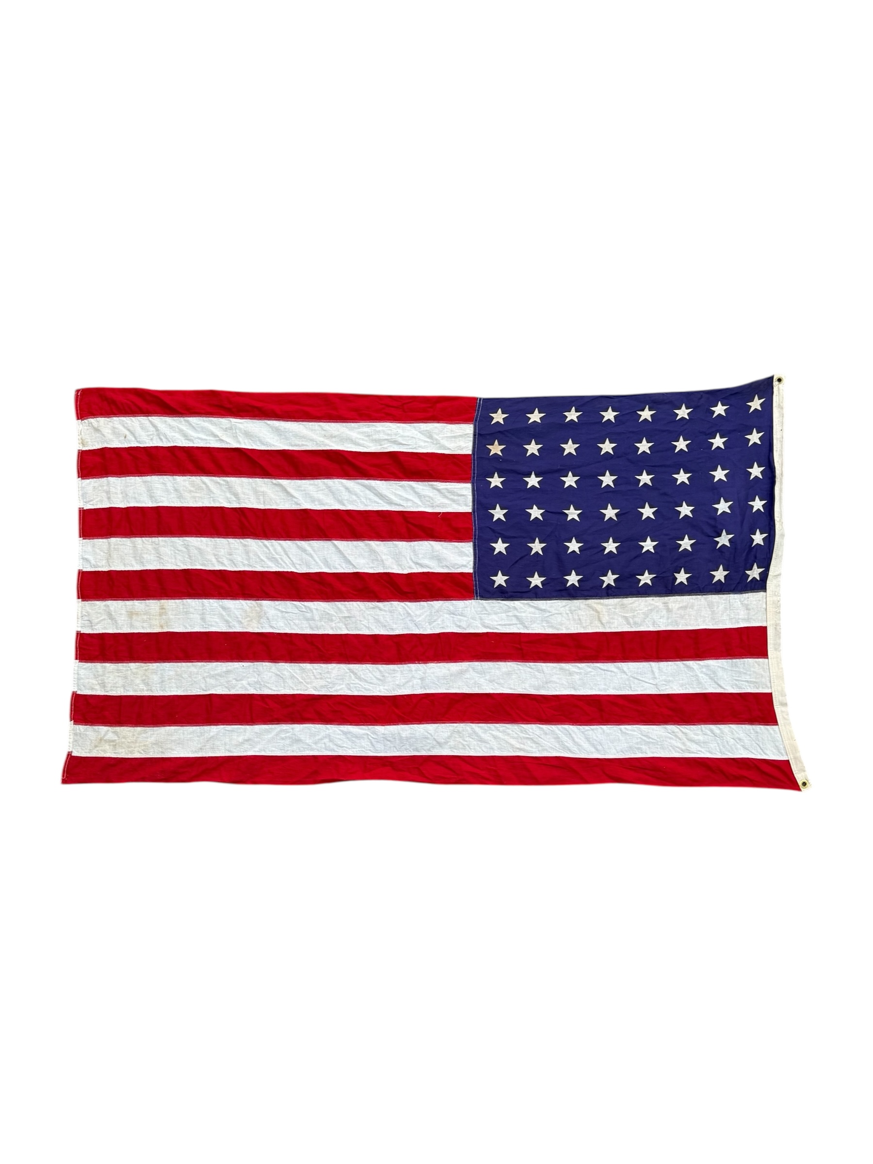 Amerikaanse WO2 vlag met 48 sterren. Het betreft een geprinte uitgave in goede staat. De afmetingen zijn ongeveer 144 cm x 85 cm.