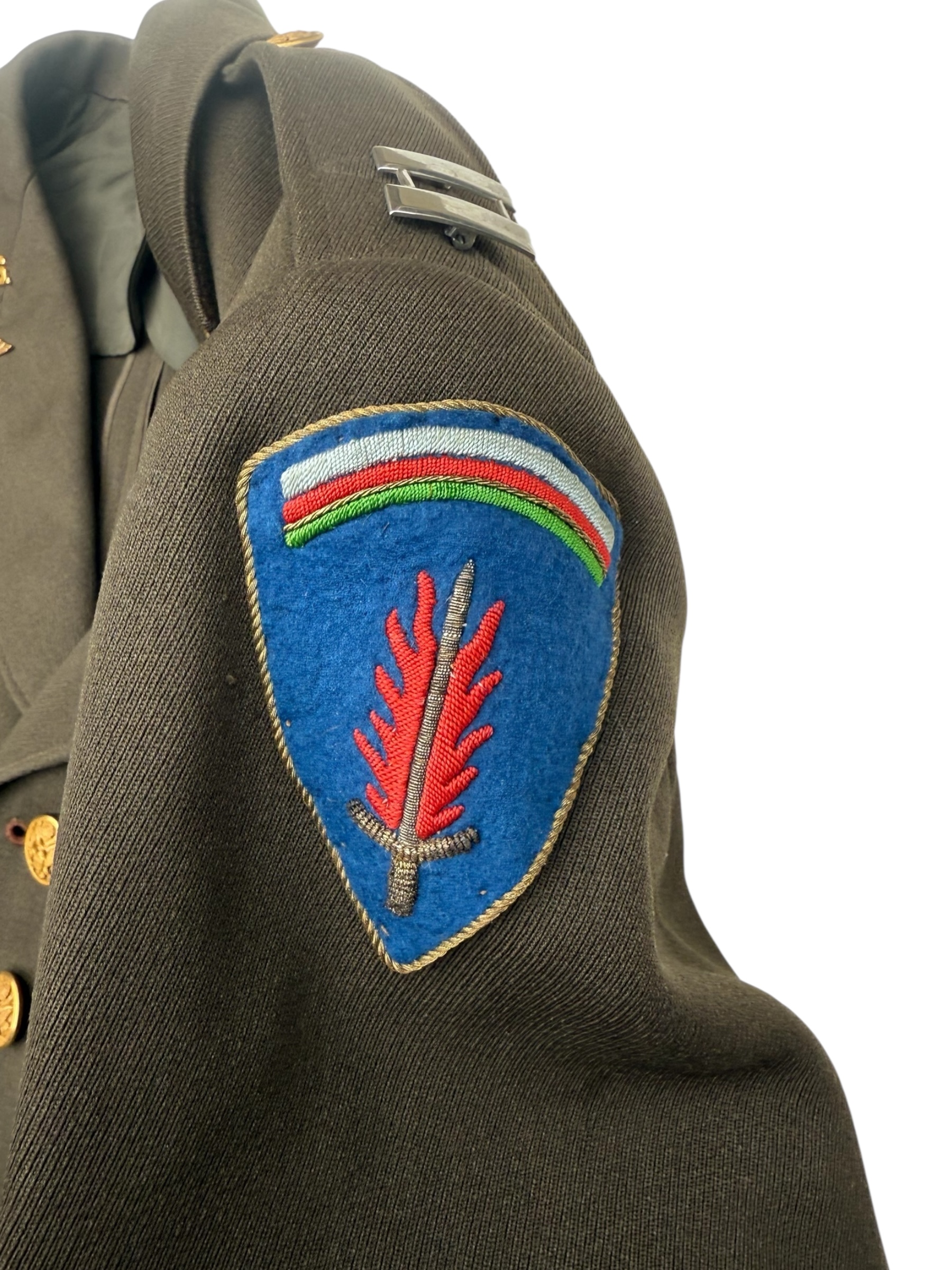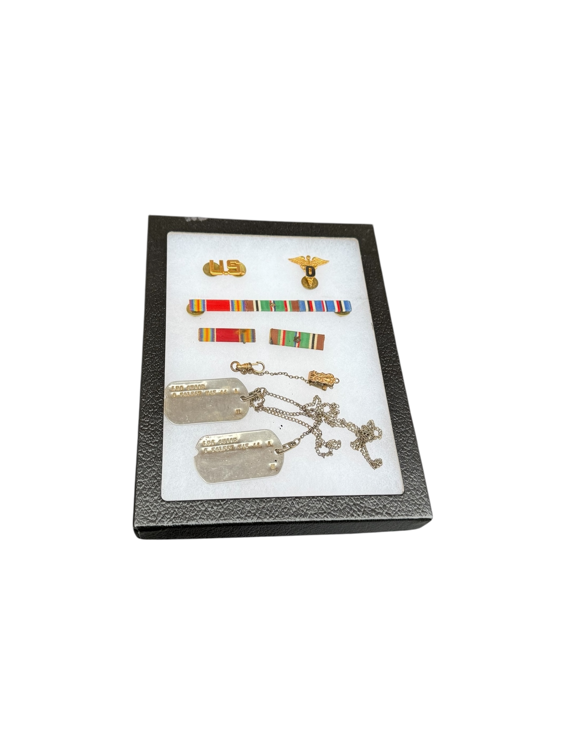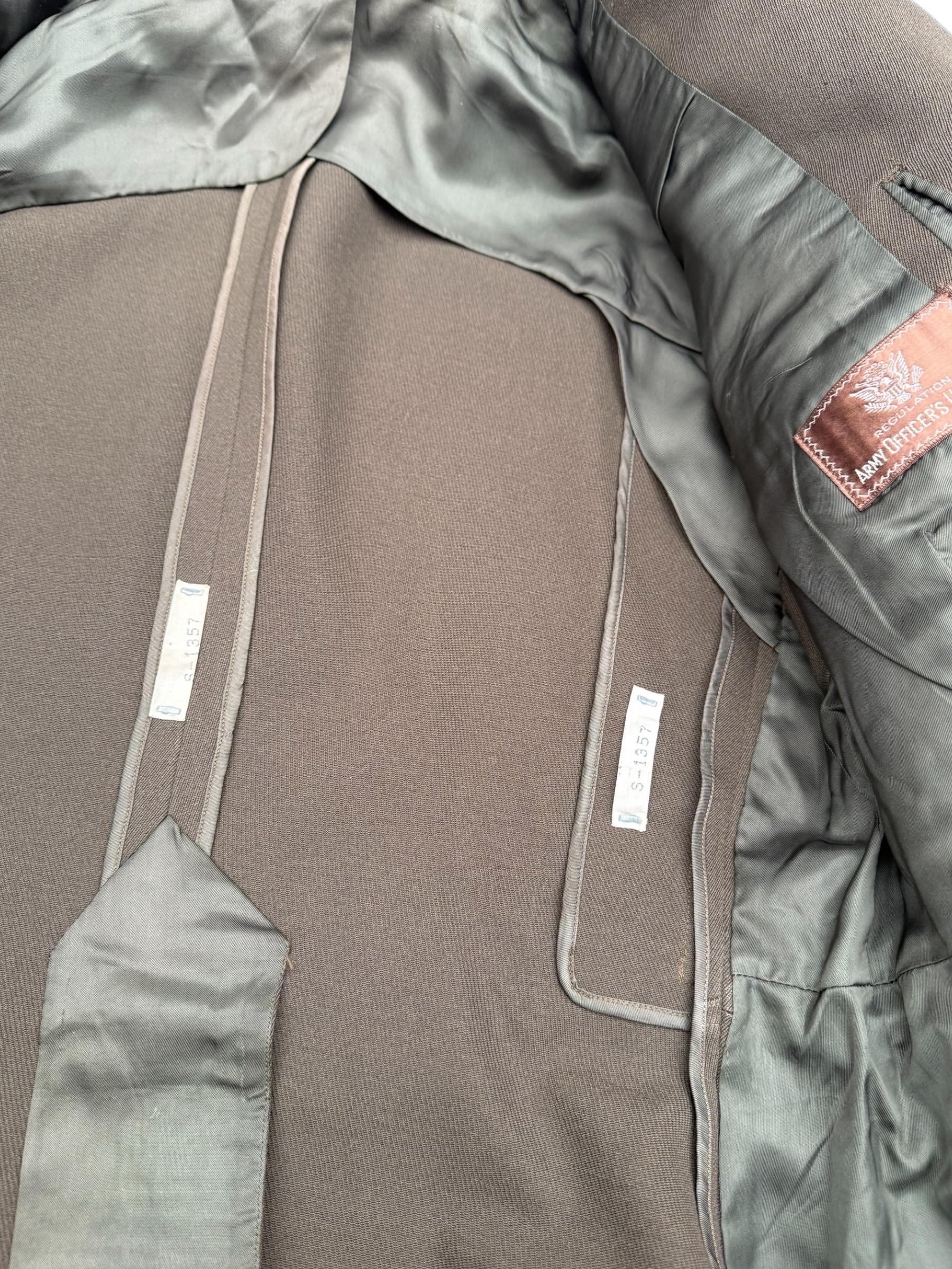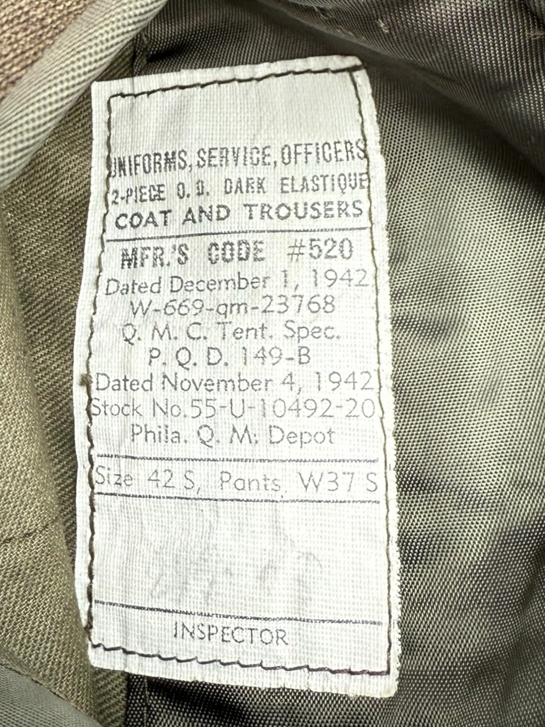 Amerikaanse WO2 set van Captain Leo Stoor. Stoor maakte deel uit van de Occupation Force Berlin van het Amerikaanse leger. De broek en de jas zijn beide door dezelfde producent vervaardigd en bovendien matching 1942 gedateerd. Alle labels zijn aanwezig en nog duidelijk leesbaar. De pet is gemarkeerd met zijn persoonlijke gegevens, wat overeenkomt met alle overige details. Daarnaast wordt de set geleverd met diverse persoonlijke bezittingen die het geheel nog completer maken.