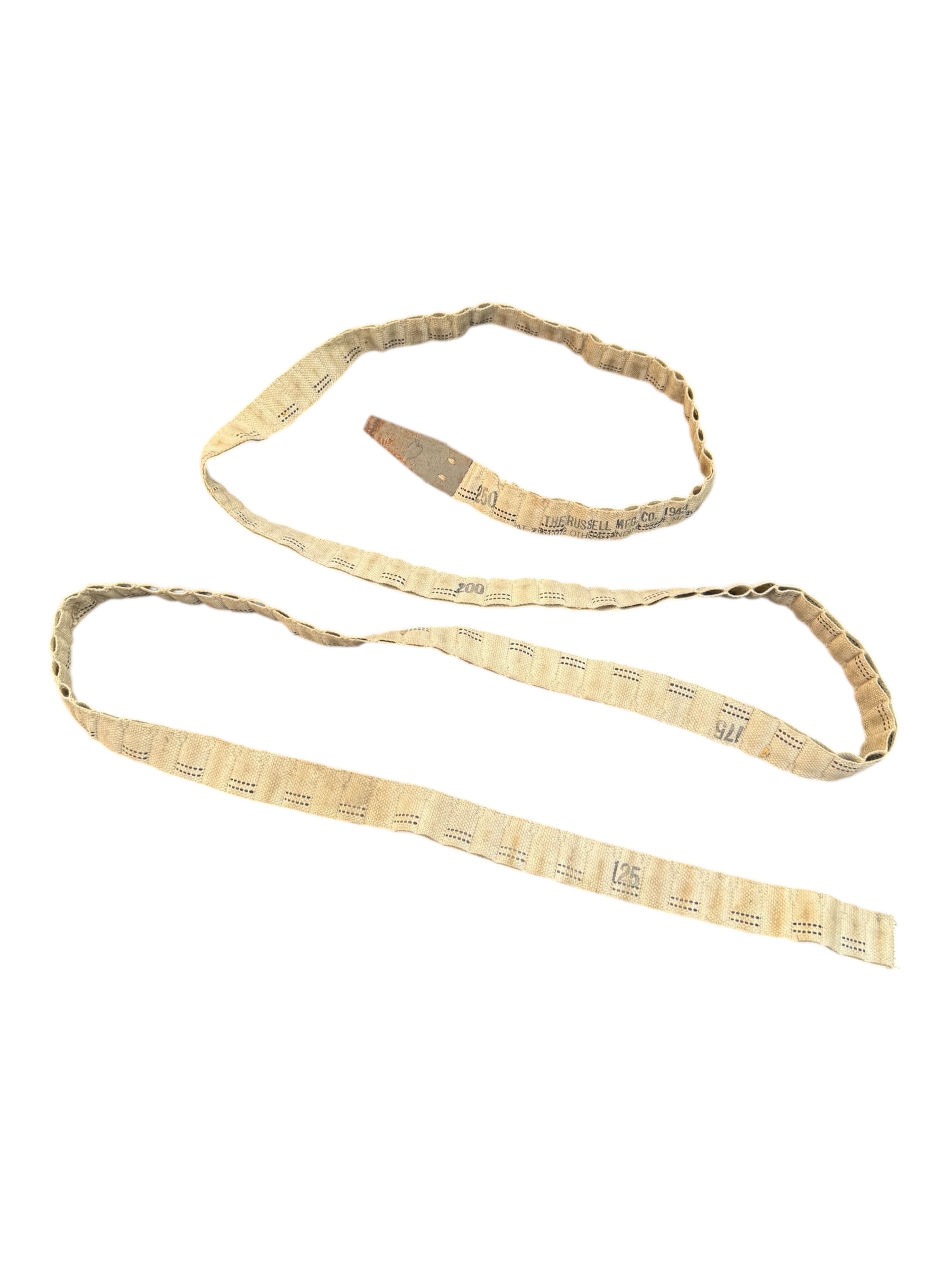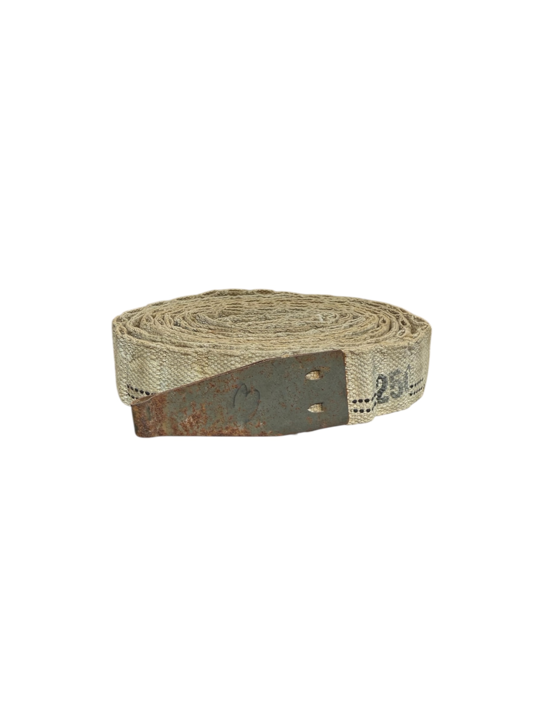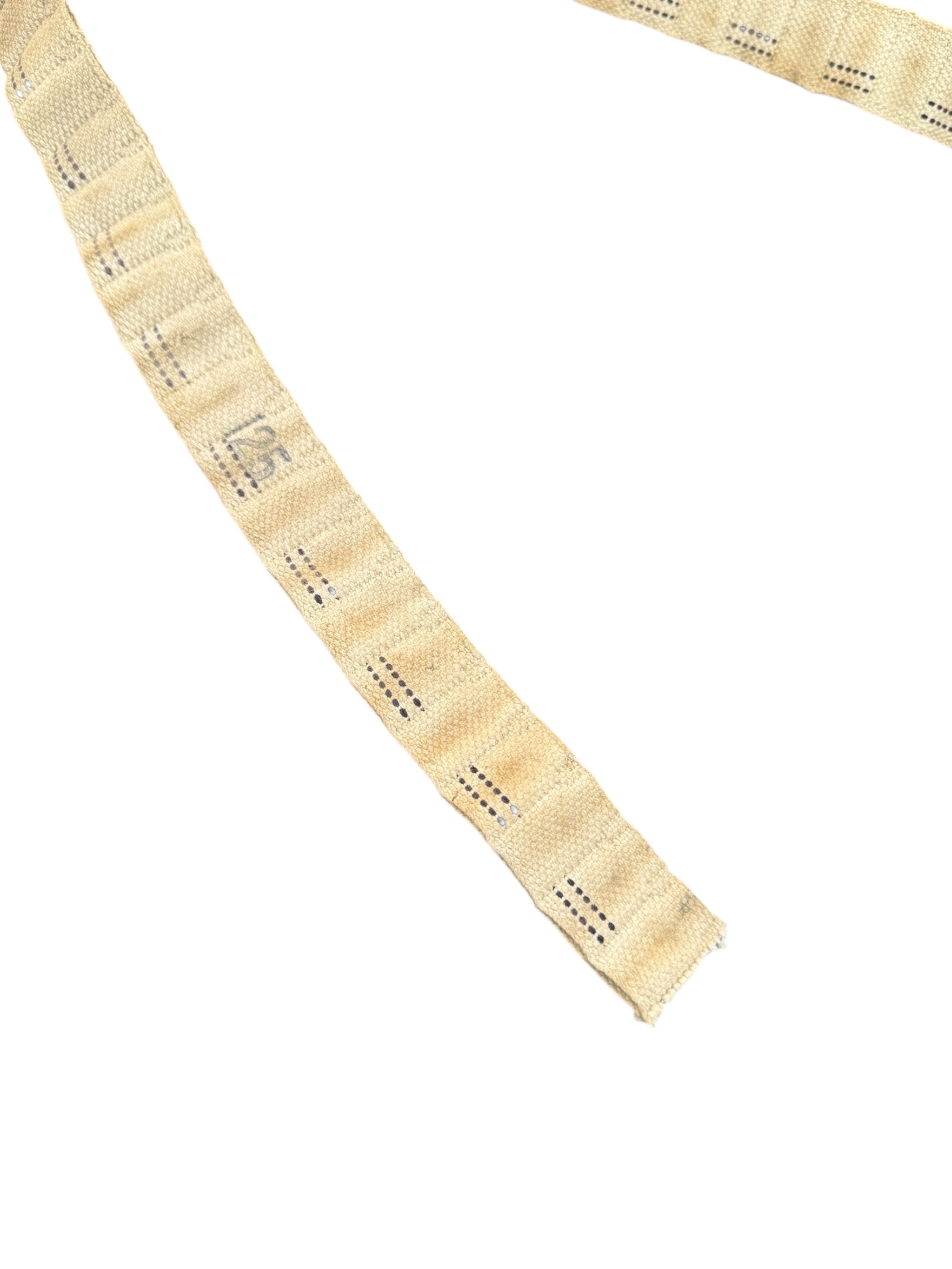 Amerikaanse WO2 .30 riem in gebruikte staat. Dit exemplaar is geproduceerd in 1943 en de markering is nog duidelijk zichtbaar. De riem is helaas ingekort.