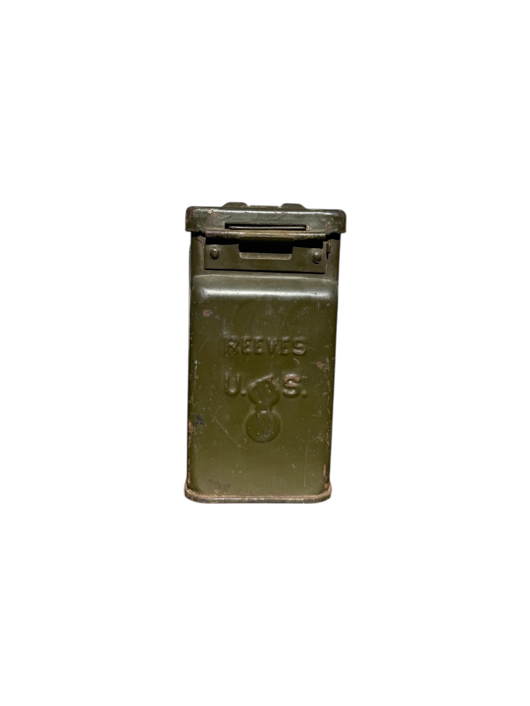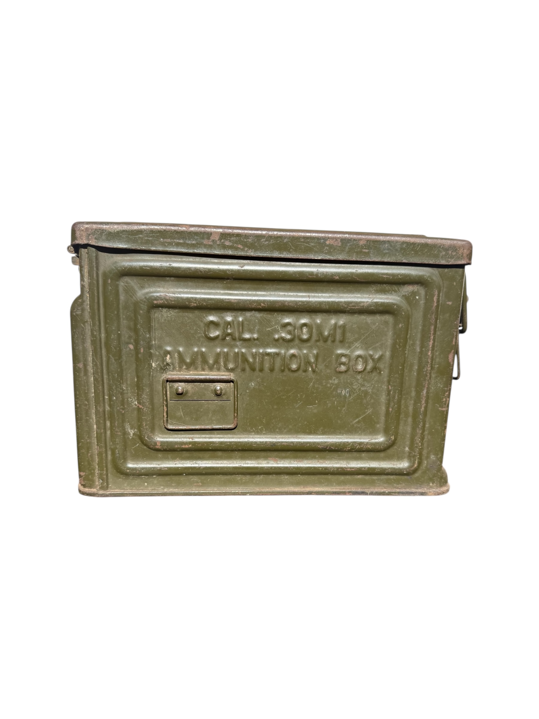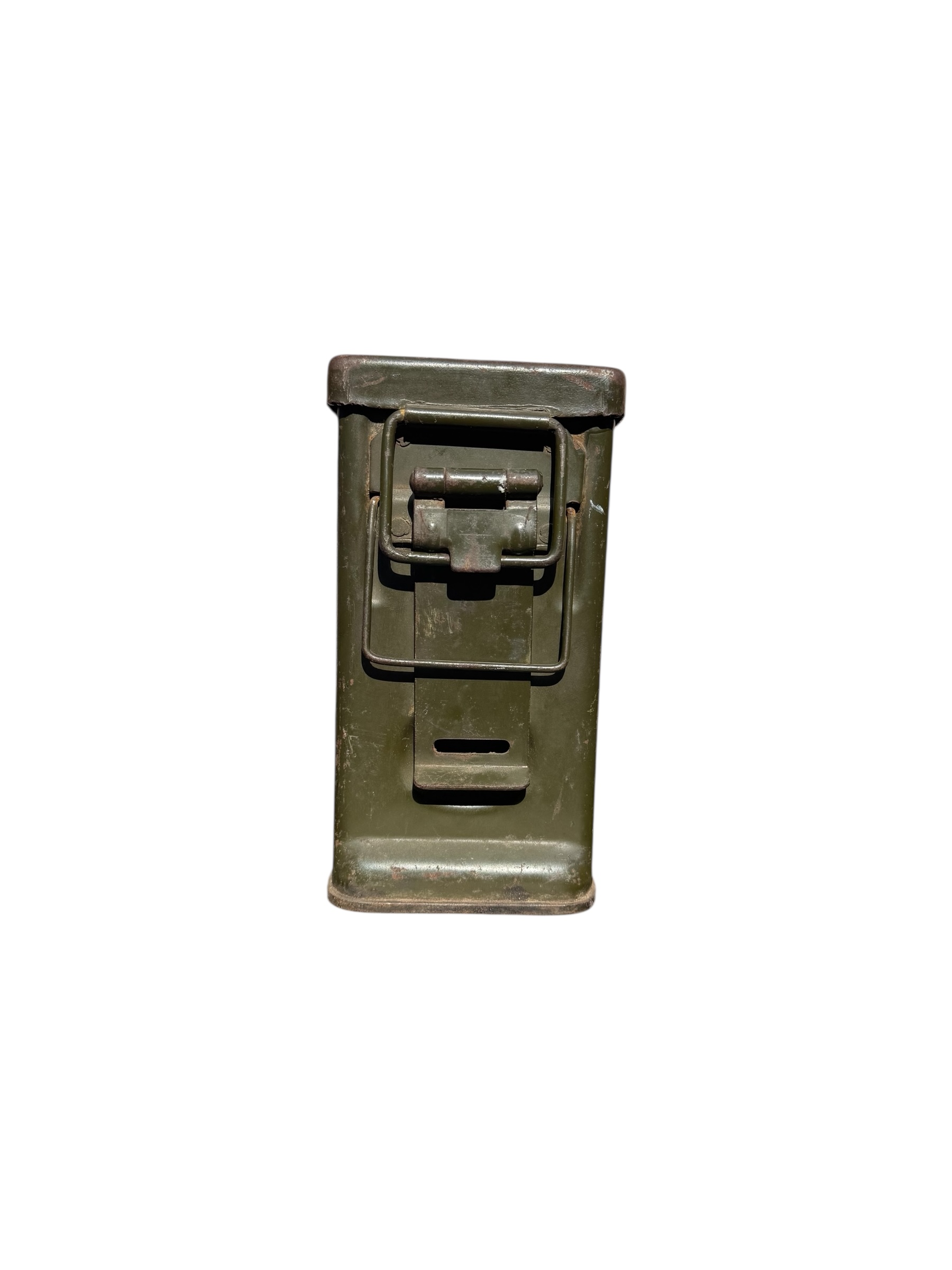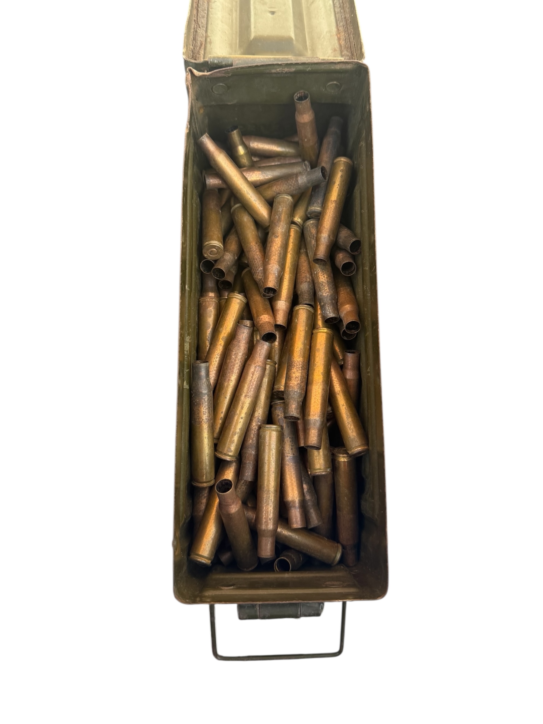 Amerikaanse WO2 .30 munitiekist in goede staat. Dit exemplaar is compleet met 244 lege patronen uit 1944 en de riem wordt bij de aankoop meegeleverd.
