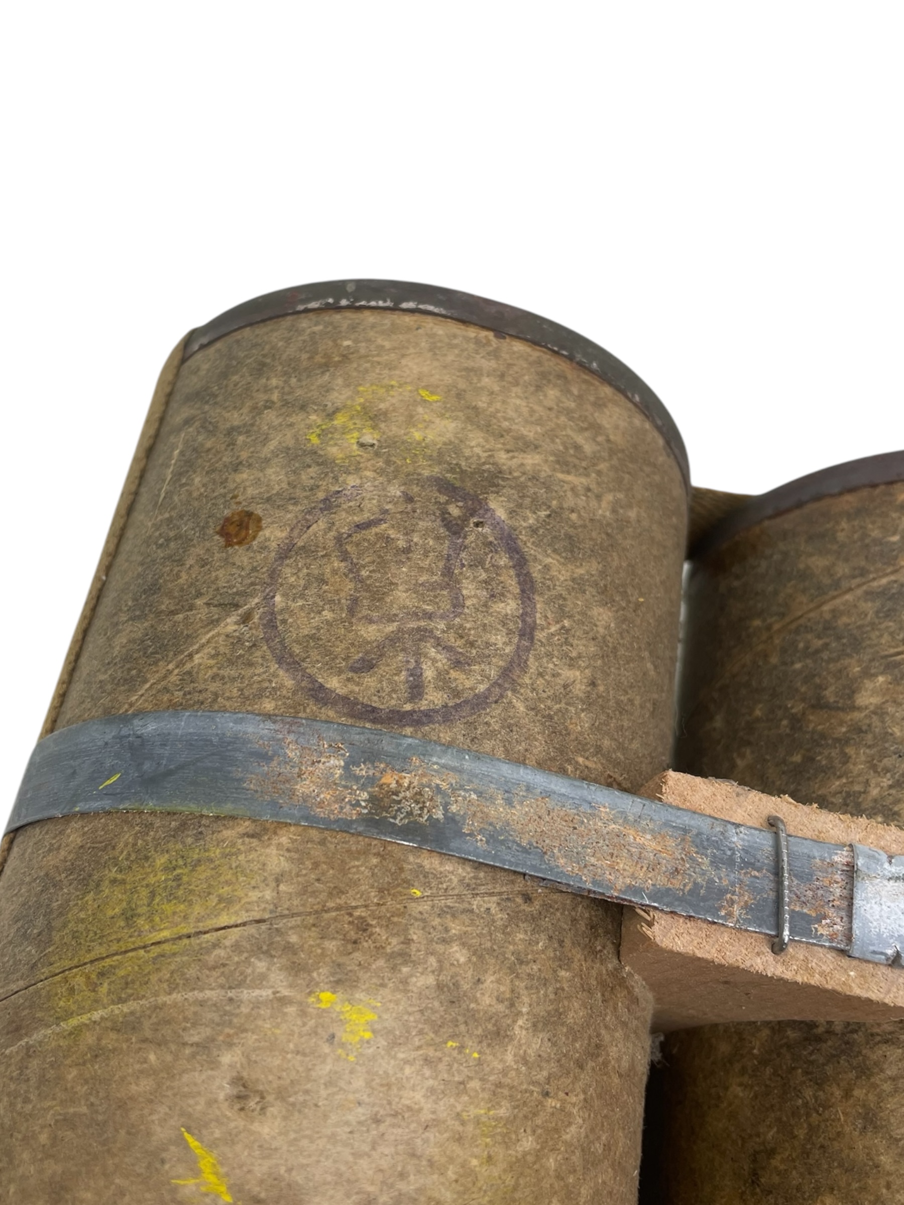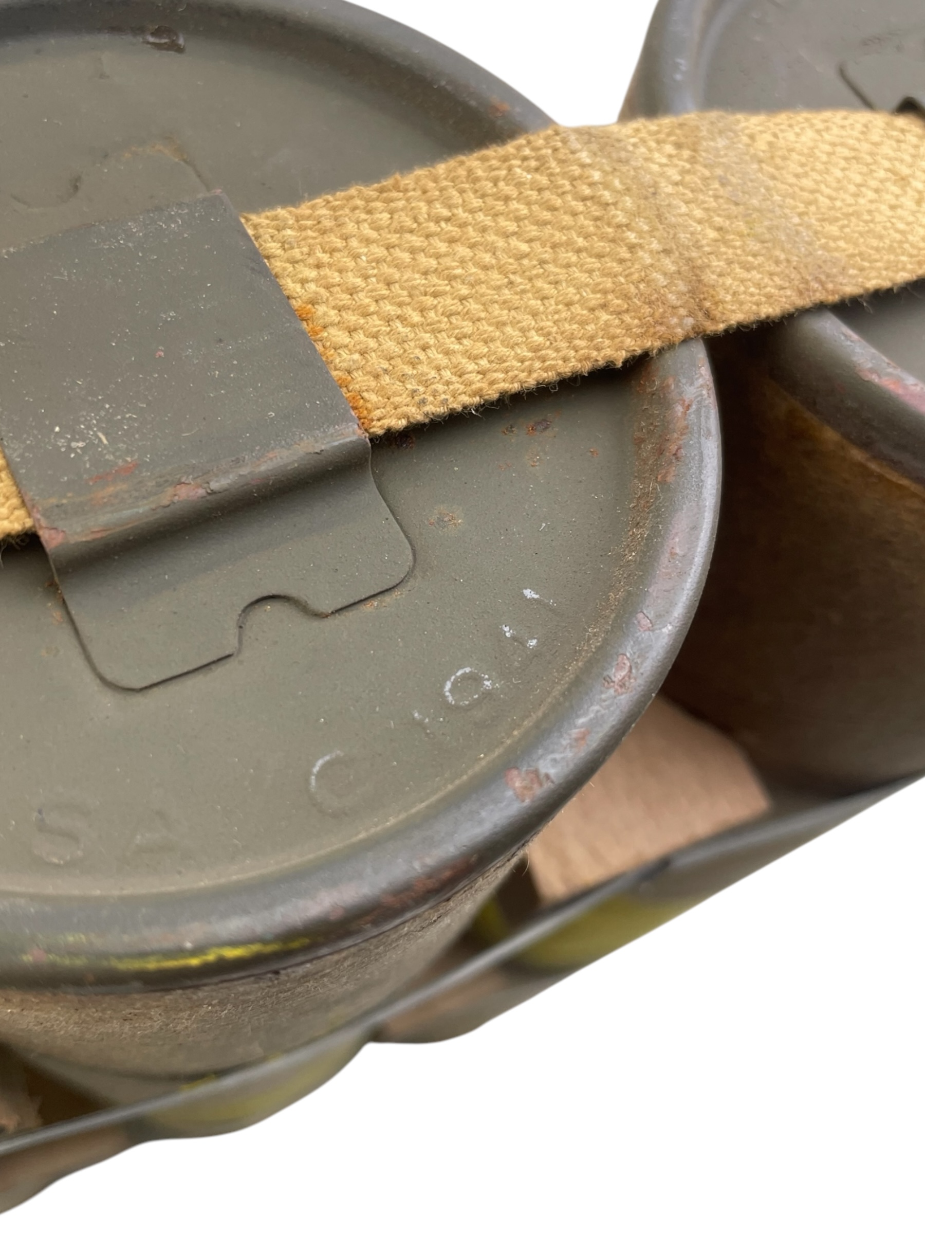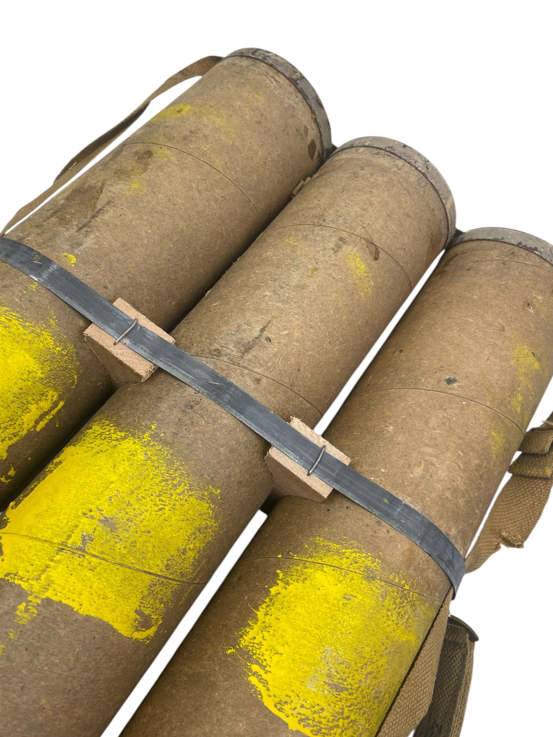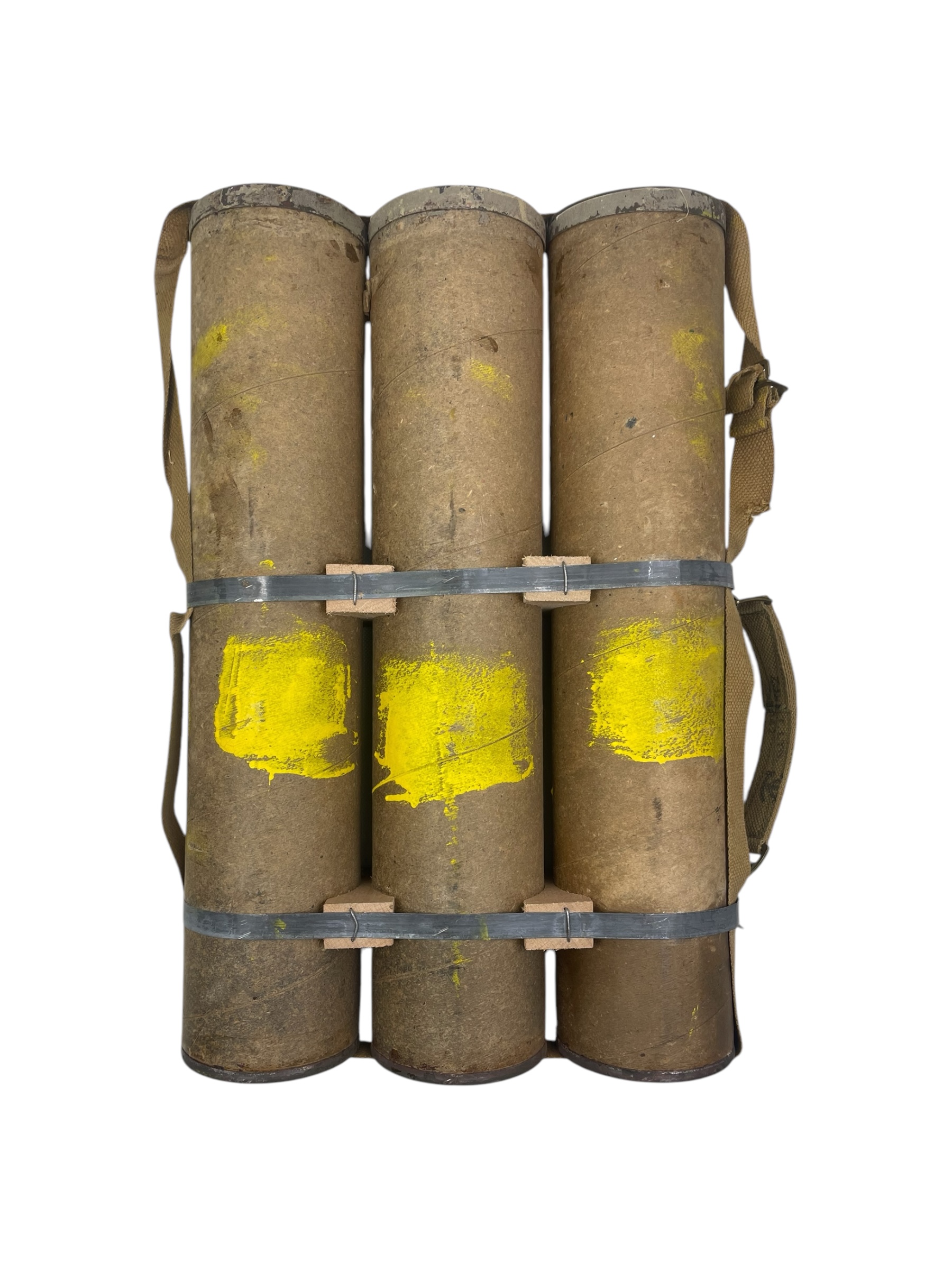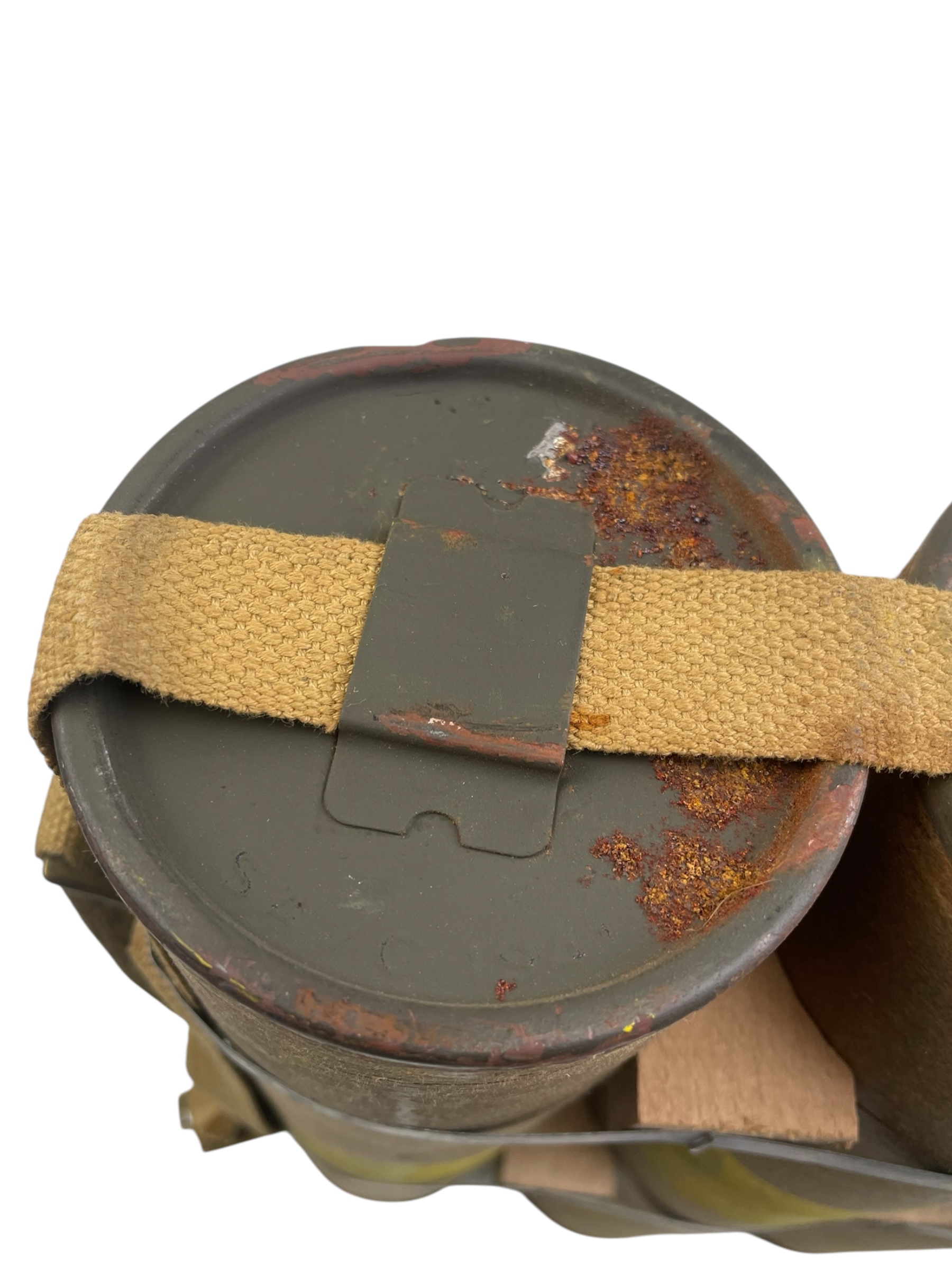 Canadese WO2 3inch mortar carrier. Deze is 1941 gedateerd en er zijn diverse markeringen terug te vinden op de kokers en op de webbing. Het wordt steeds lastiger om dit soort exemplaren te vinden!