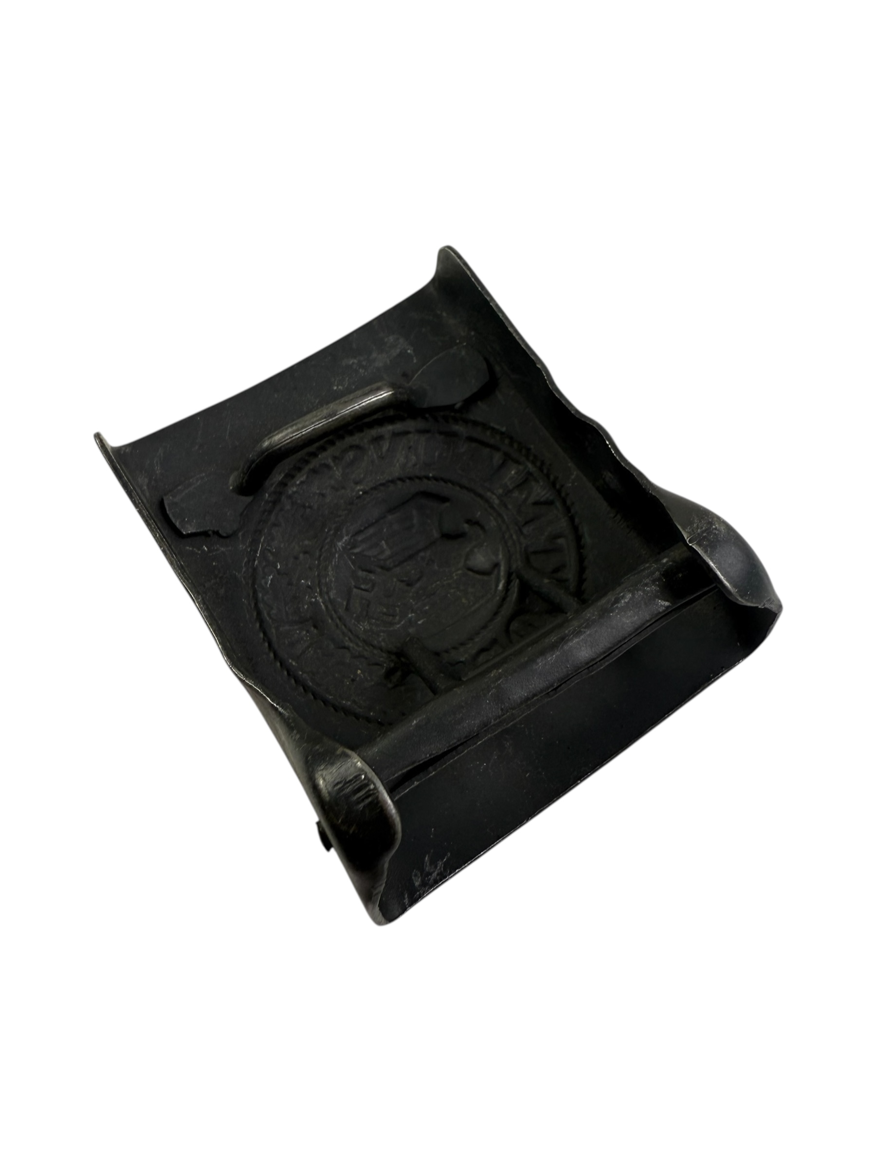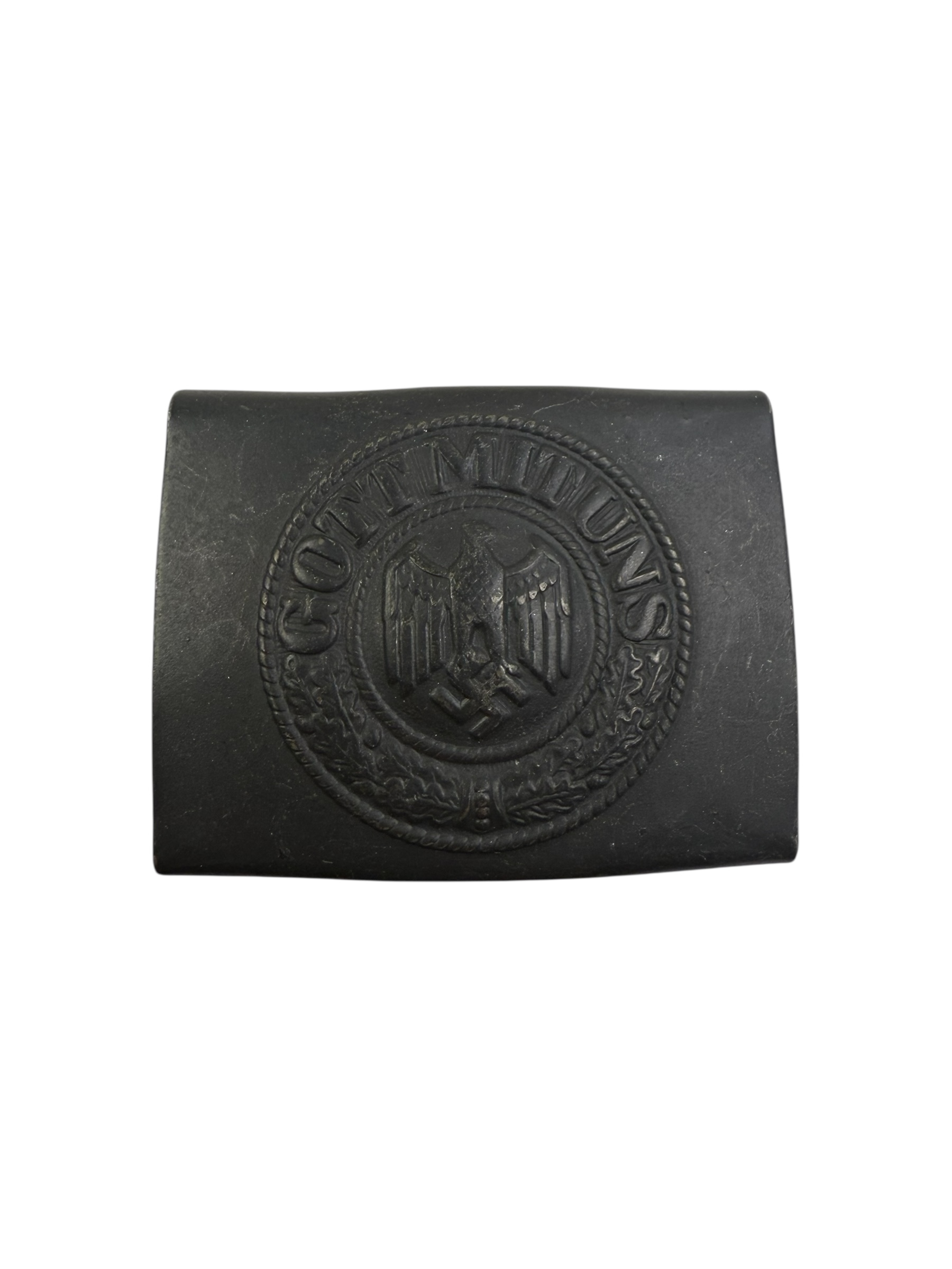 Duits WO2 Wehrmacht/Kriegsmarine koppelslot, ook wel het Einheitskoppelschloss genoemd. Dit exemplaar verkeert in zeer goede staat en is gemaakt van staal, waaruit blijkt dat het om een laat-oorlogse productie gaat (1944/1945). Het is geproduceerd door Bruder Schneider in Wenen en de verf is bijna overal nog zichtbaar.