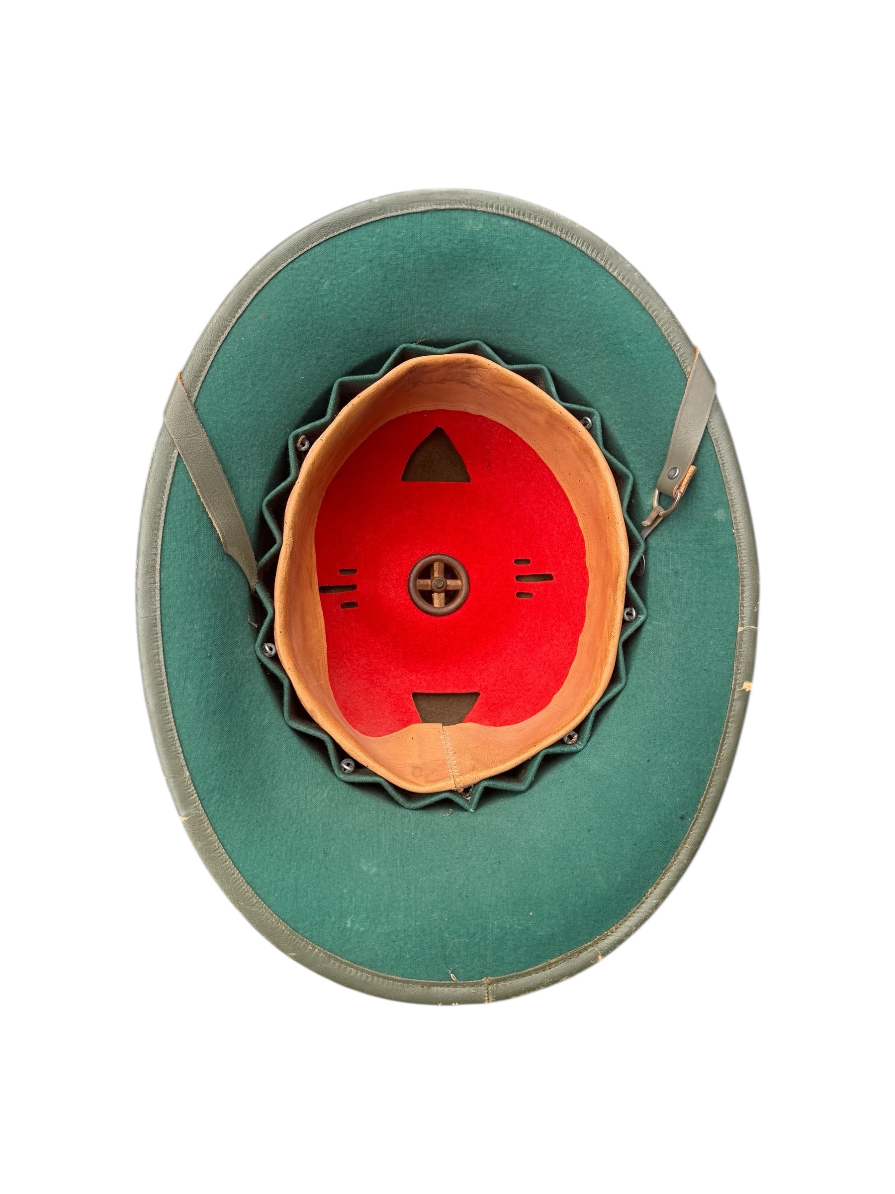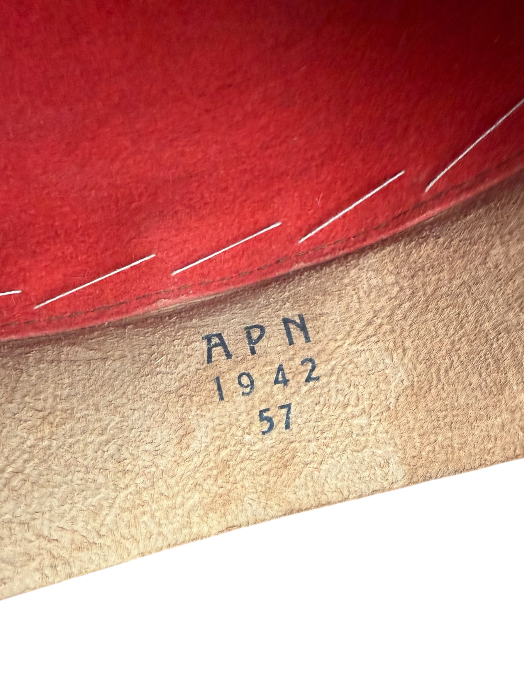 Duitse WO2 tropenhelm in zeer goede staat. Het betreft een maat 57, geproduceerd door A.P.N. in 1942. Alle markeringen zijn nog goed zichtbaar en het leder is nog mooi soepel voor zijn leeftijd.