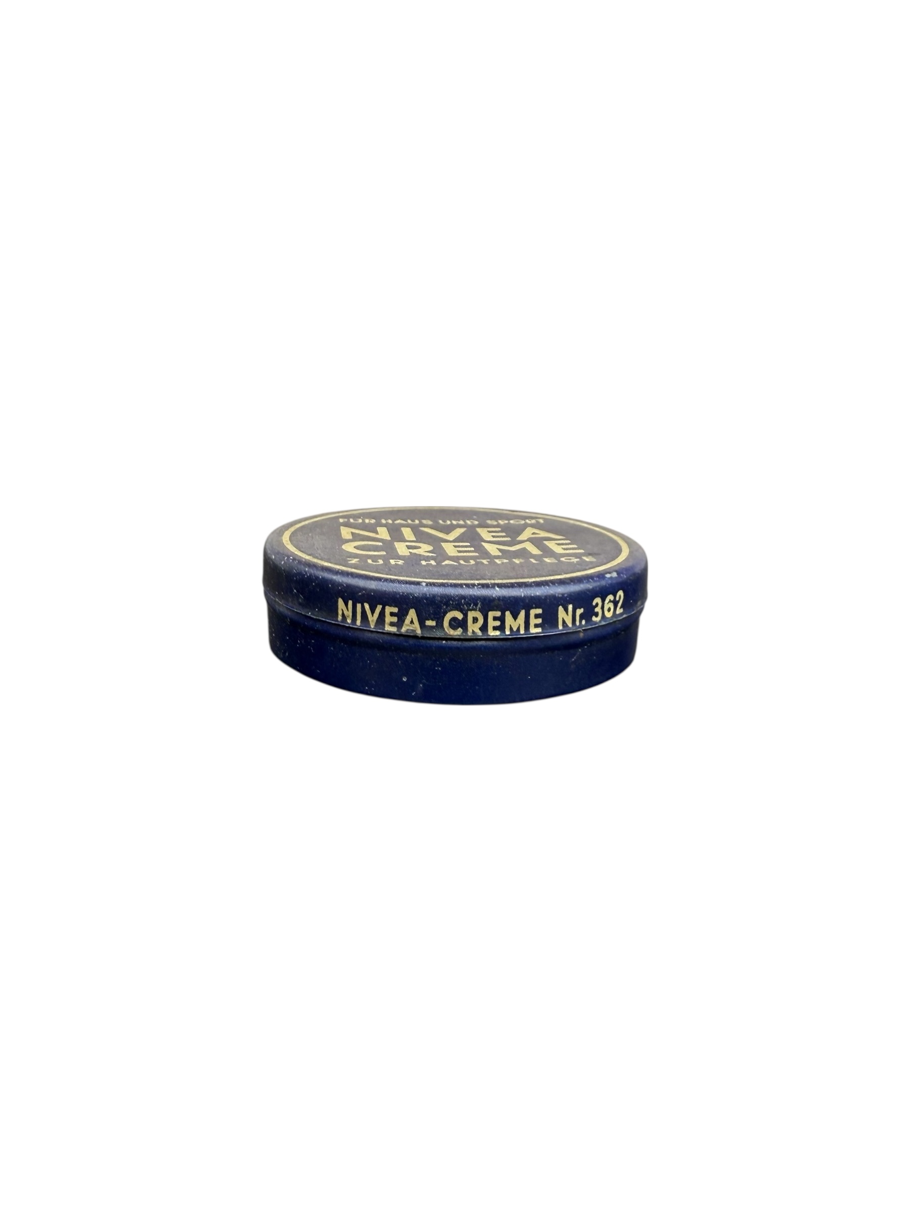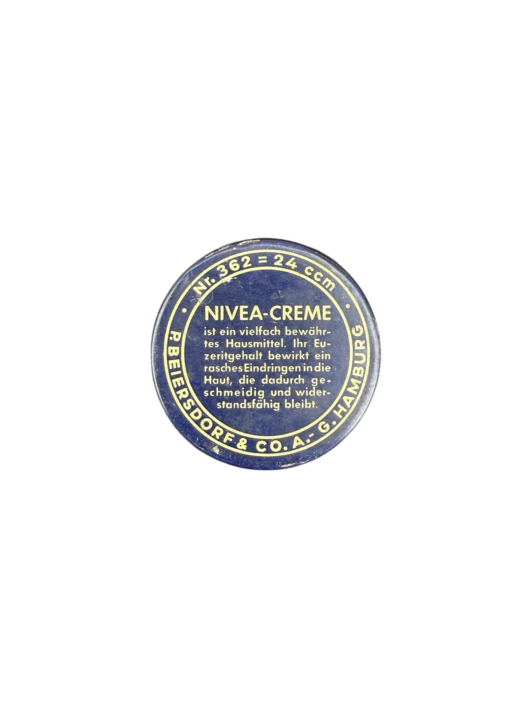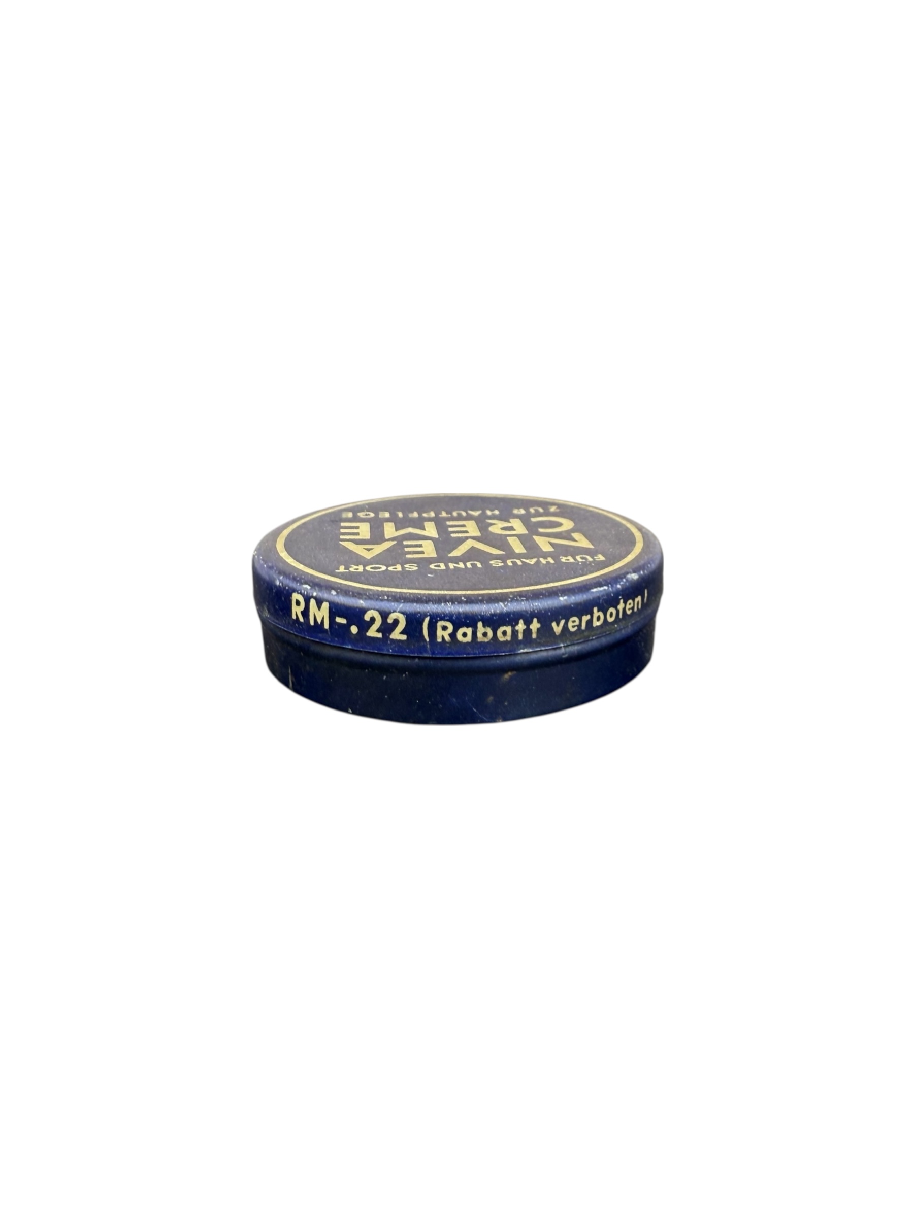 Duits WO2 blikje Nivea crème in goede staat. Deze is voorzien van een RM prijsaanduiding (Reichsmark), waaraan te zien is dat het om een periodiek exemplaar gaat. Het betreft bovendien de kleinste uitvoering.