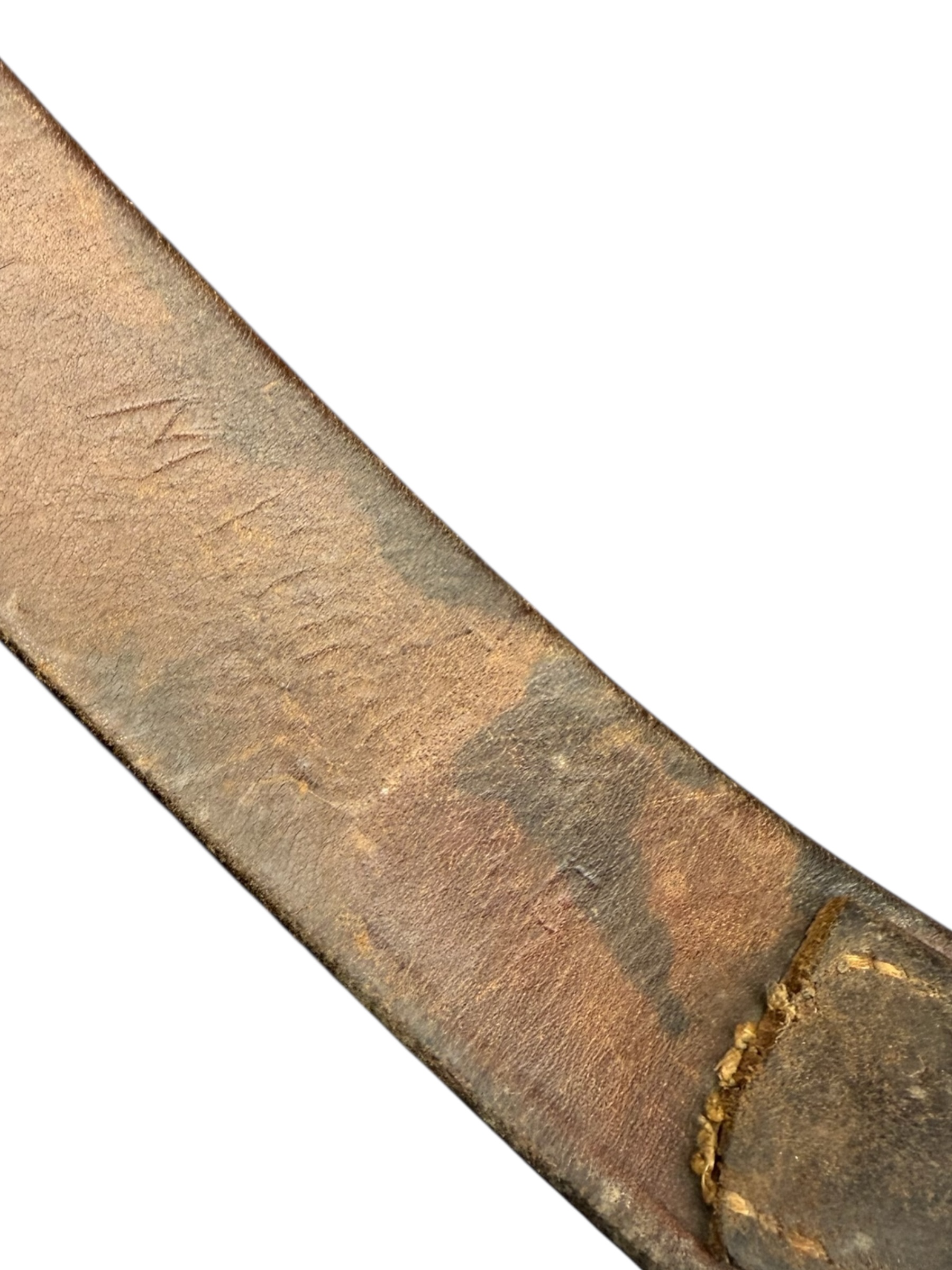Duitse WO2 Wehrmacht koppel in goede, gedragen staat. Het koppelslot is vervaardigd uit aluminium door de producent F.L.L. , wat verwijst naar Friedrich Linden, Lüdenscheid. Er is een naam in de leren riem gekrast, maar deze is helaas moeilijk te achterhalen. De totale lengte bedraagt ongeveer 90 cm.