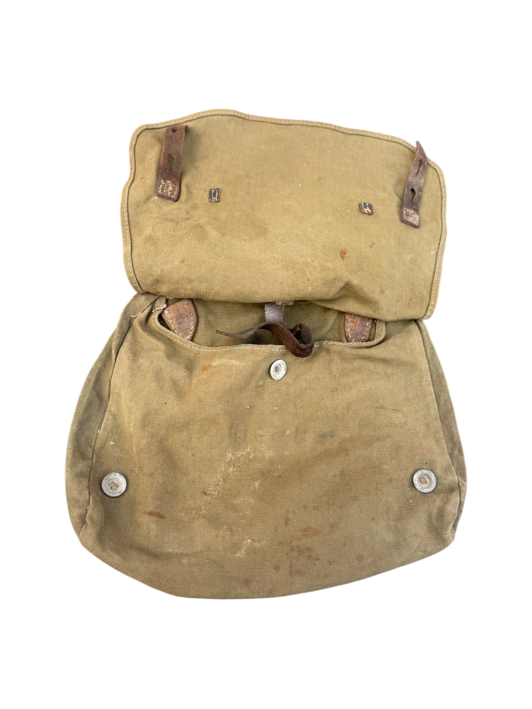 Duitse WO2 Wehrmacht broodzak in gedragen staat. Alle knopen zijn nog aanwezig en er zijn verder geen opmerkingen of defecten. De stempel aan de binnenzijde is grotendeels nog zichtbaar.
