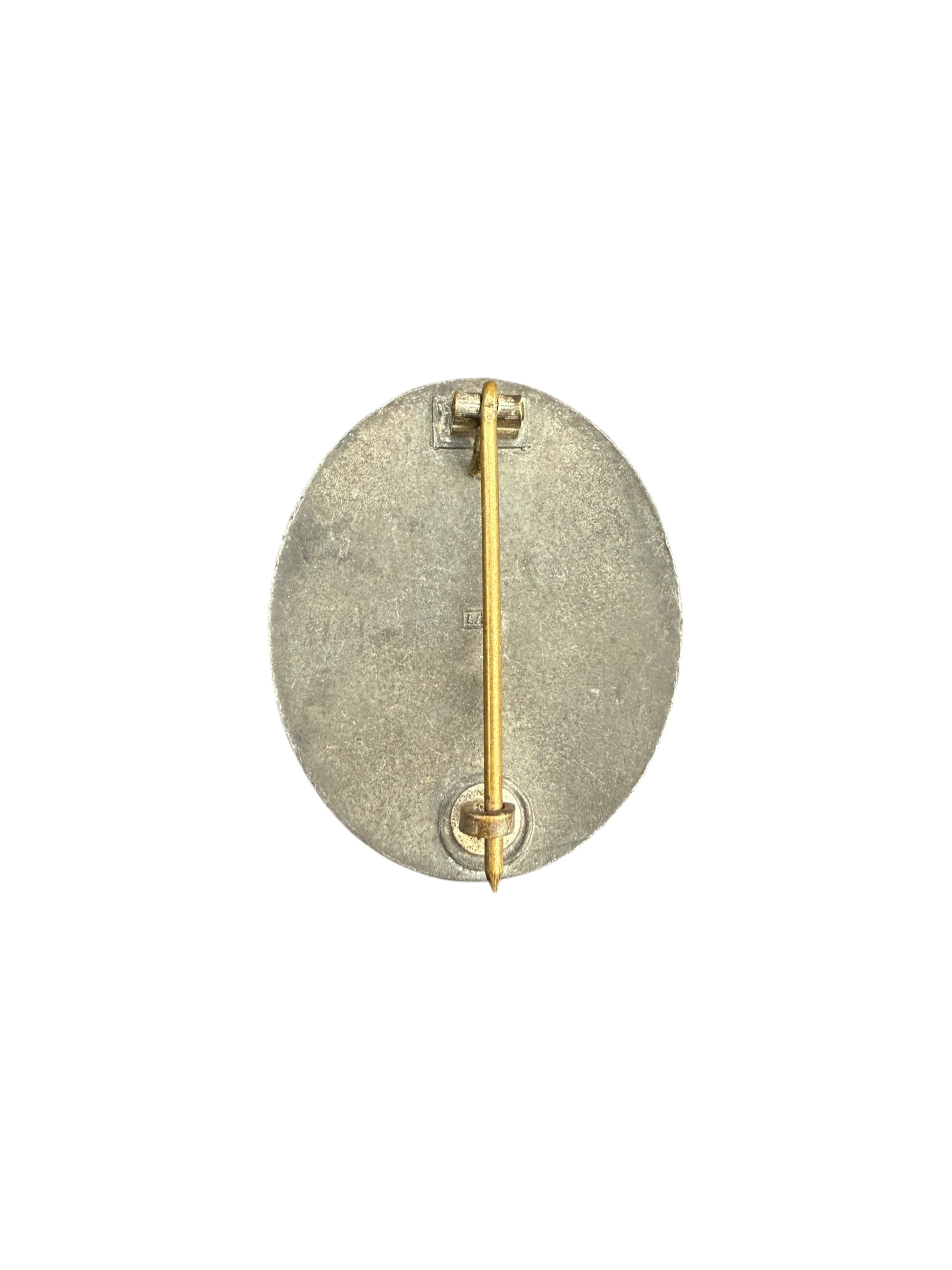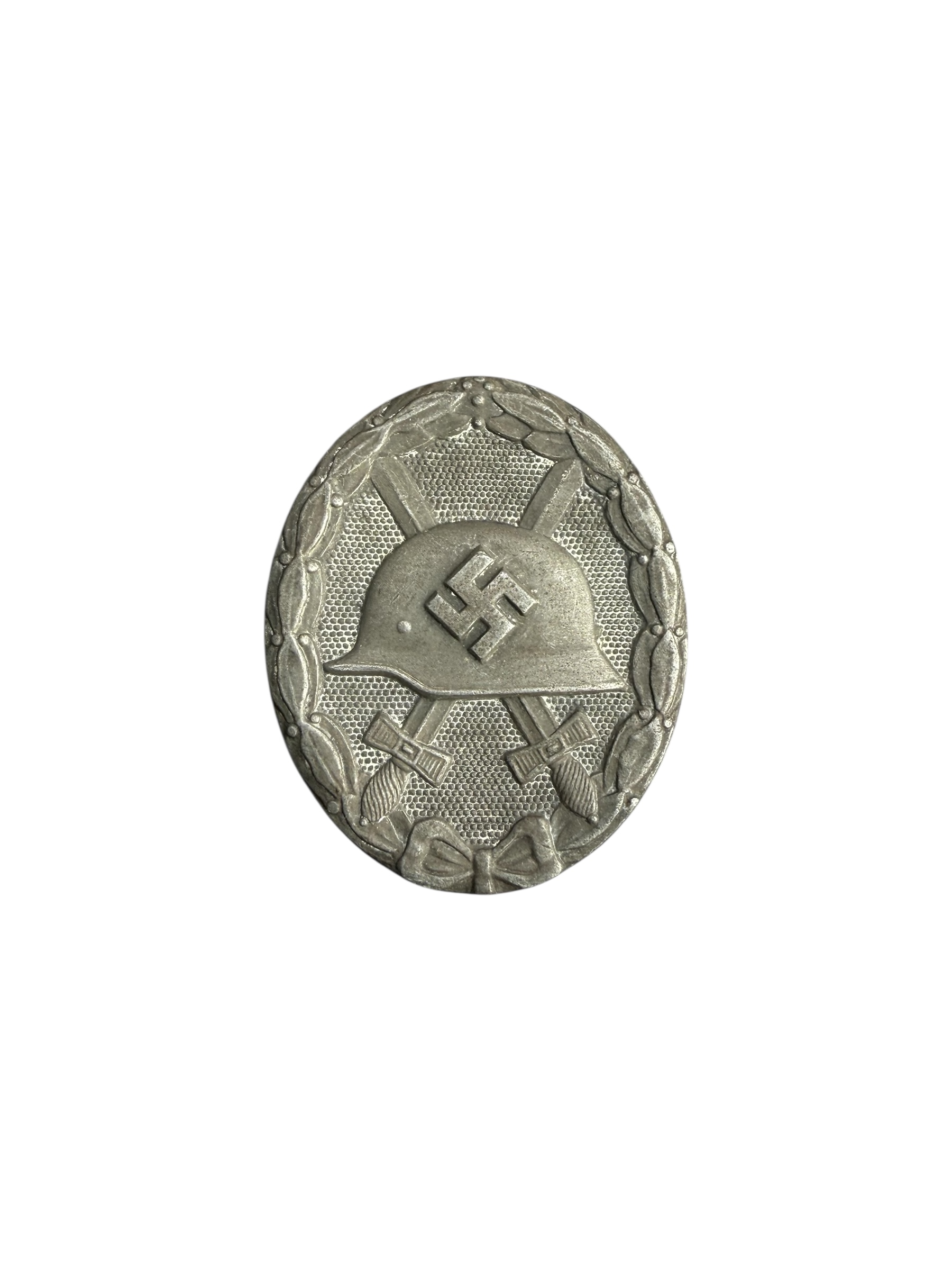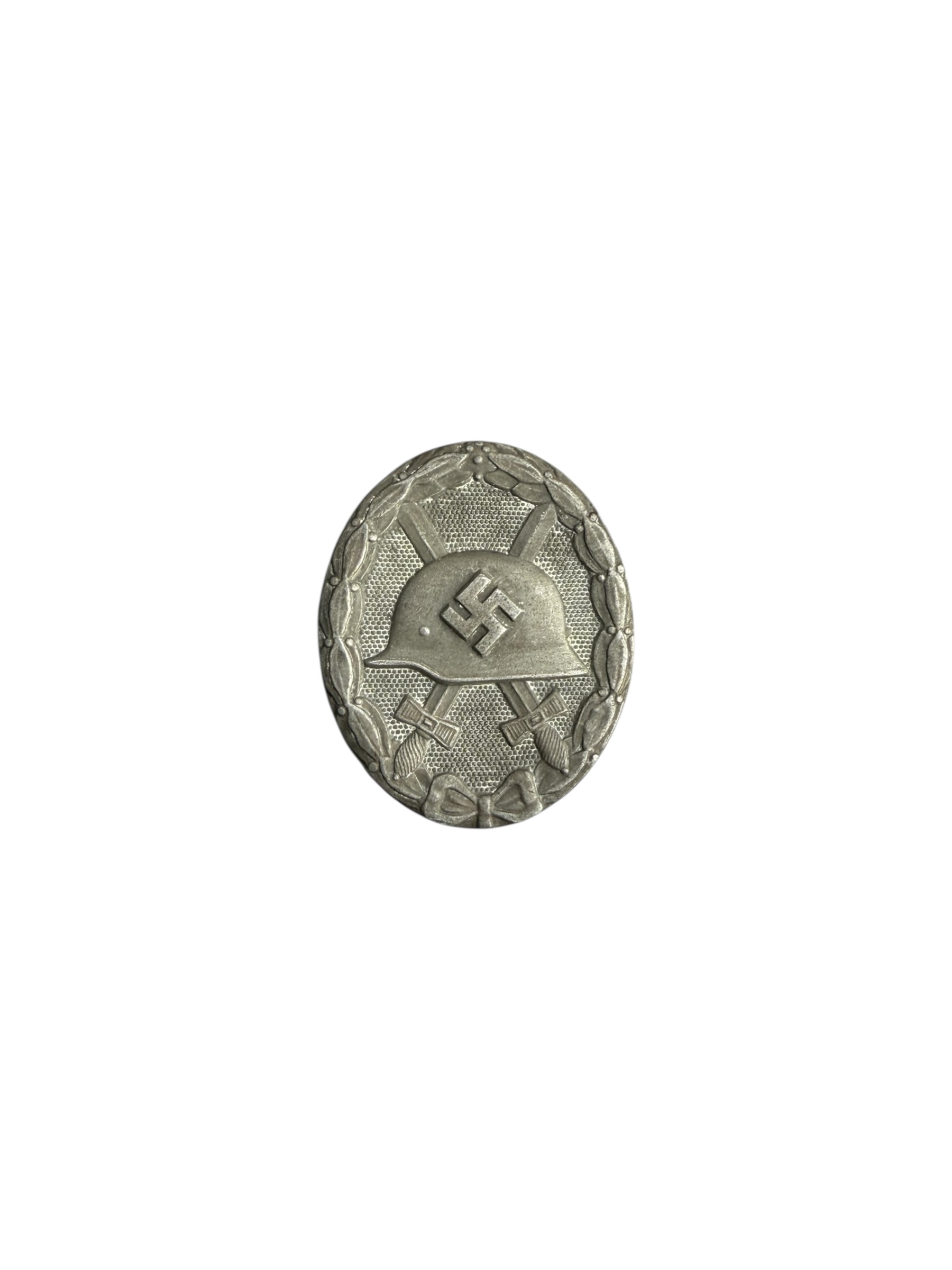 Duits WO2 Verwundetenabzeichen in zilver, in nette gedragen staat. Dit exemplaar is vervaardigd uit zink en gemarkeerd met L/53, wat verwijst naar de producent Hymmen & Co uit Lüdenscheid.