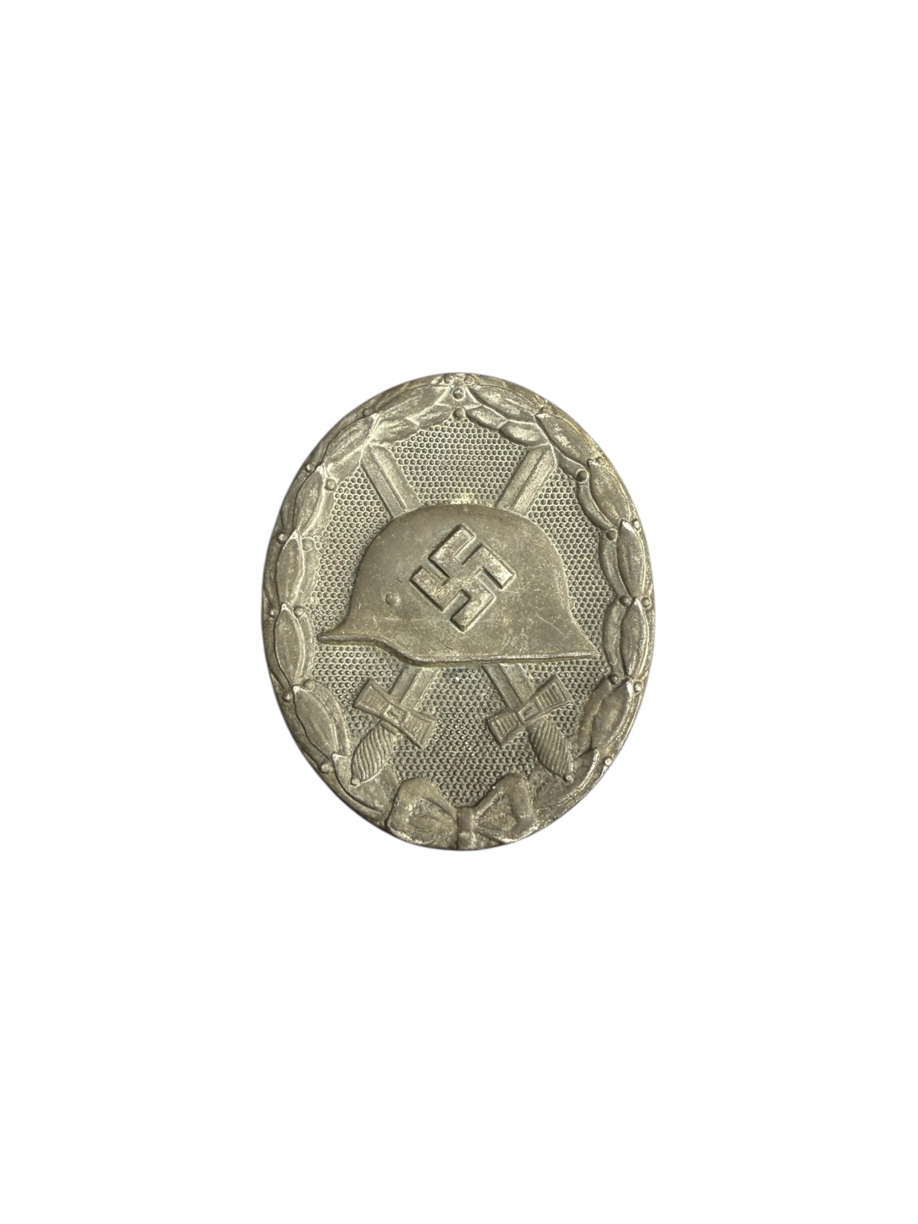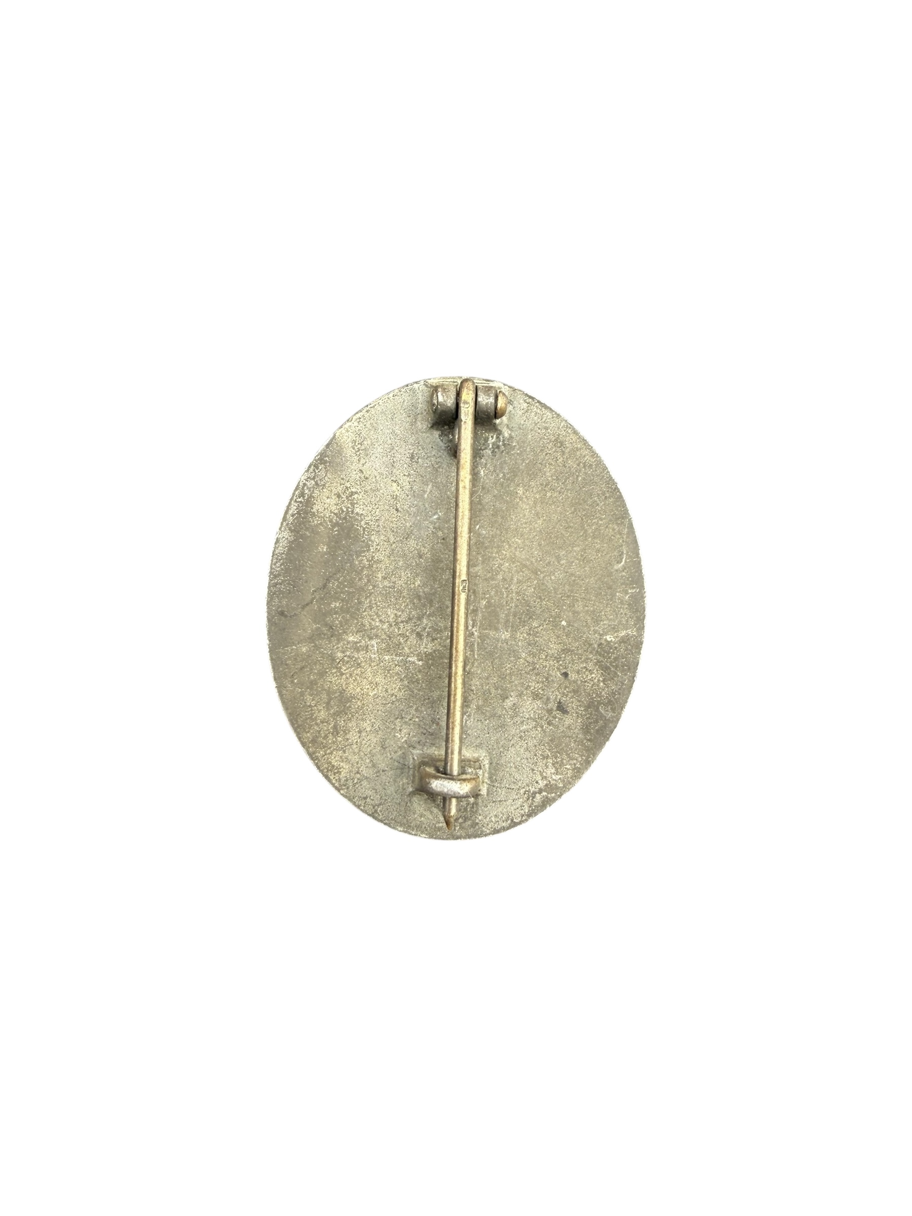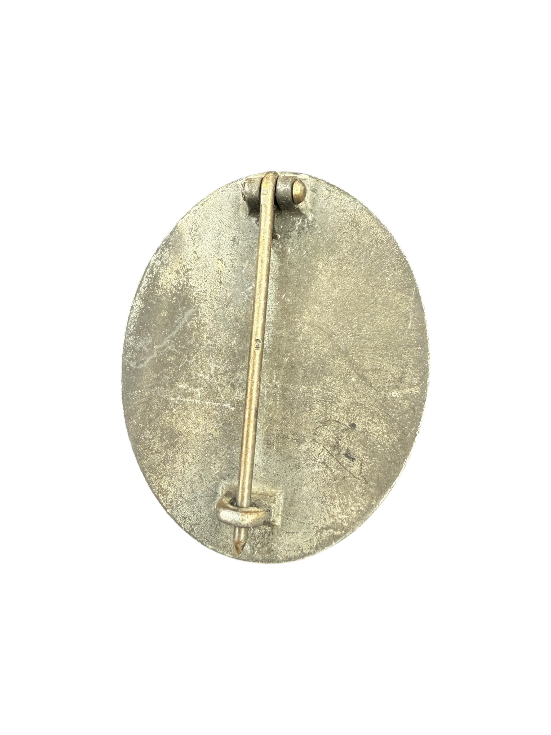 Duits WO2 Verwundetenabzeichen in zilver, in nette gedragen staat. Dit exemplaar is vervaardigd uit zink en gemarkeerd met maker 7, wat verwijst naar de producent Paul Meybauer uit Berlijn.