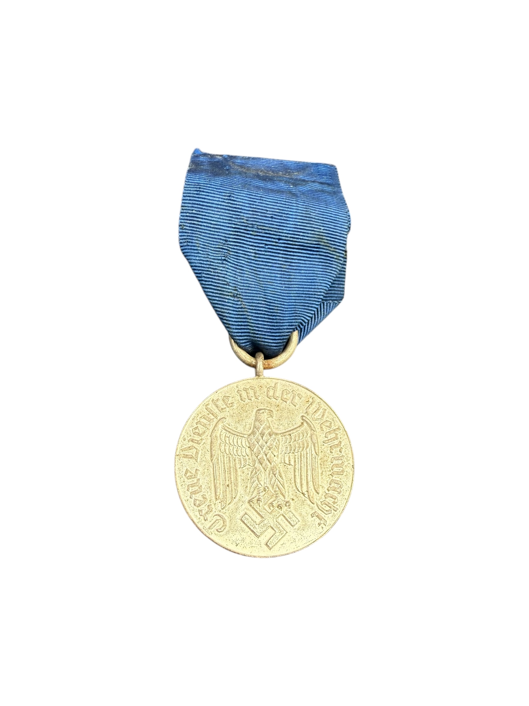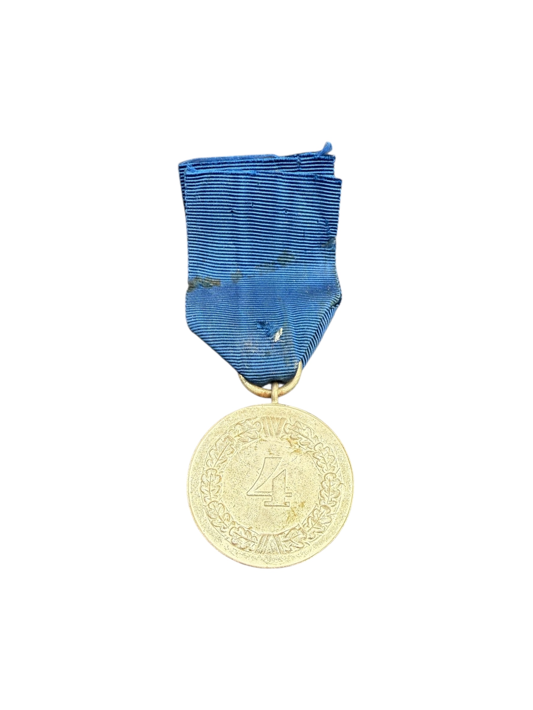 Duitse WO2 medaille voor trouwe dienst, “4 Jahre Treue Dienste in der Wehrmacht”. Deze onderscheiding werd op 16 maart 1936 ingevoerd en diende ter erkenning van vier jaar dienst binnen de Wehrmacht. Daarnaast bestonden er hogere gradaties voor 12, 18 en 25 jaar dienst.