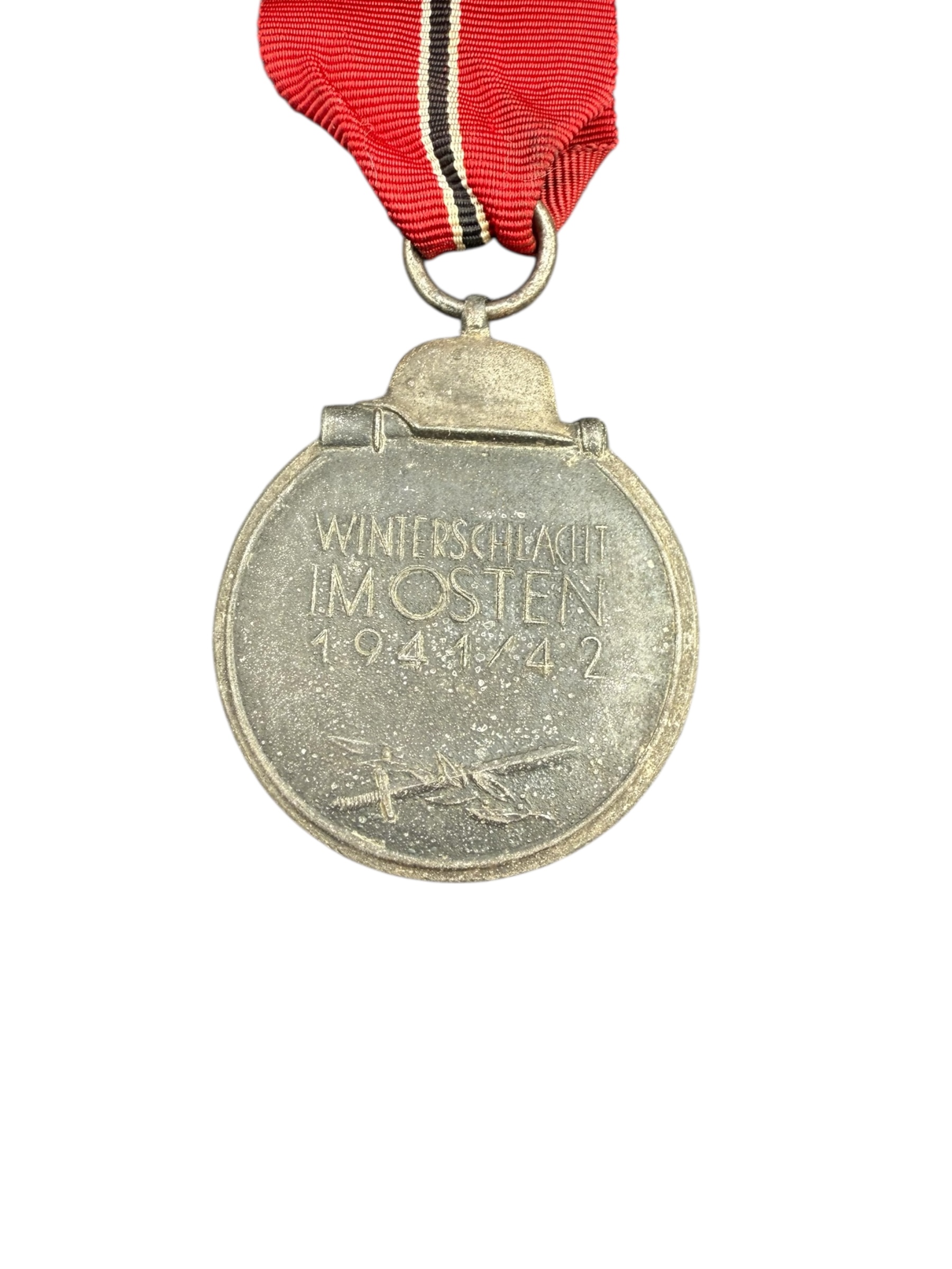 Duitse WO2 Ostmedaille, officieel de Medaille Winterschlacht im Osten 1941/42. Dit exemplaar heeft een lang lint en verkeert in gedragen staat.