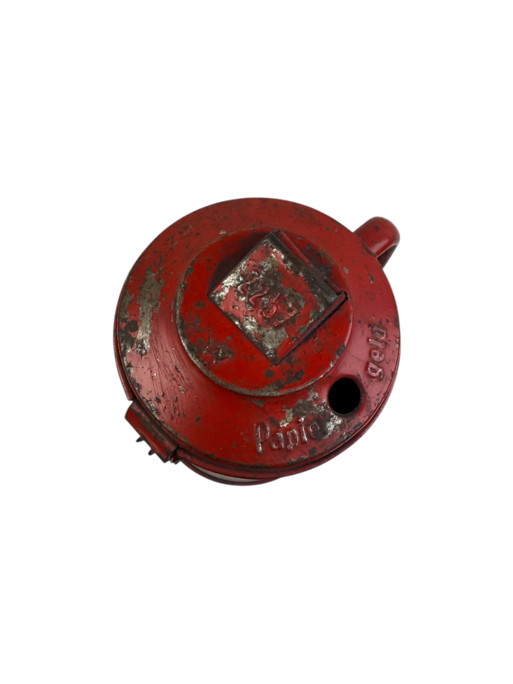 Duitse WO2 Winterhilfswerk collectebus, ook wel de Sammelbüchse genoemd. Dit exemplaar is geproduceerd in 1943 en verkeert in gebruikte staat. De originele verf is plaatselijk nog zichtbaar.
