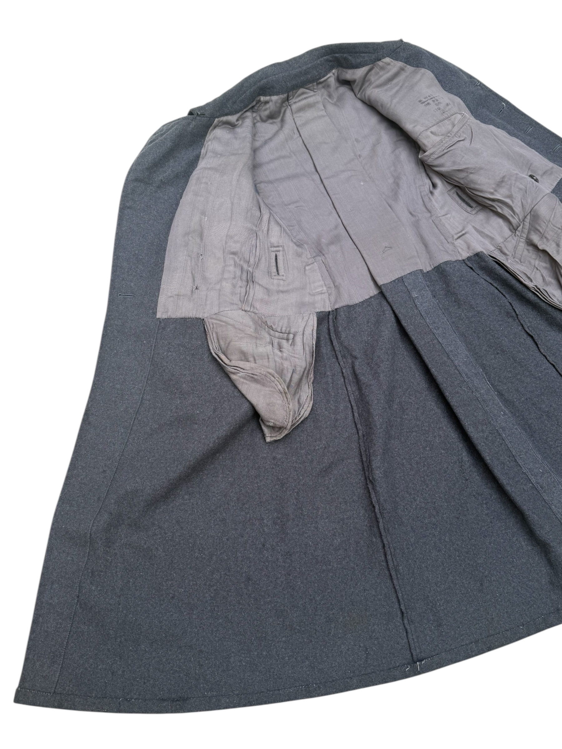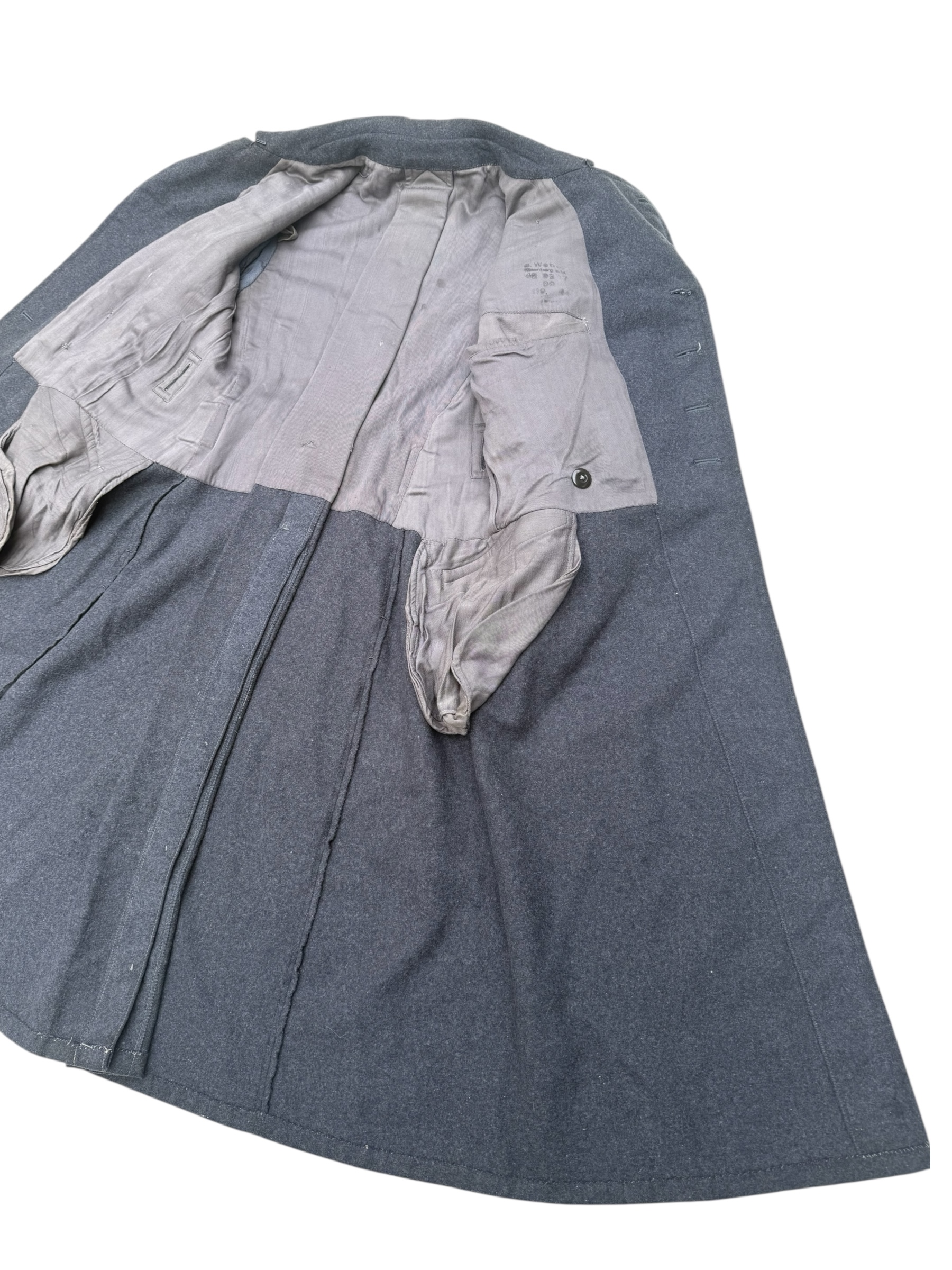Duitse WO2 Luftwaffe Flak mantel in nette staat, geproduceerd in 1940. Alle producentmarkeringen zijn nog duidelijk zichtbaar. In de binnenzak van de jas is een Wehrpass gevonden, die bij de aankoop wordt meegeleverd.