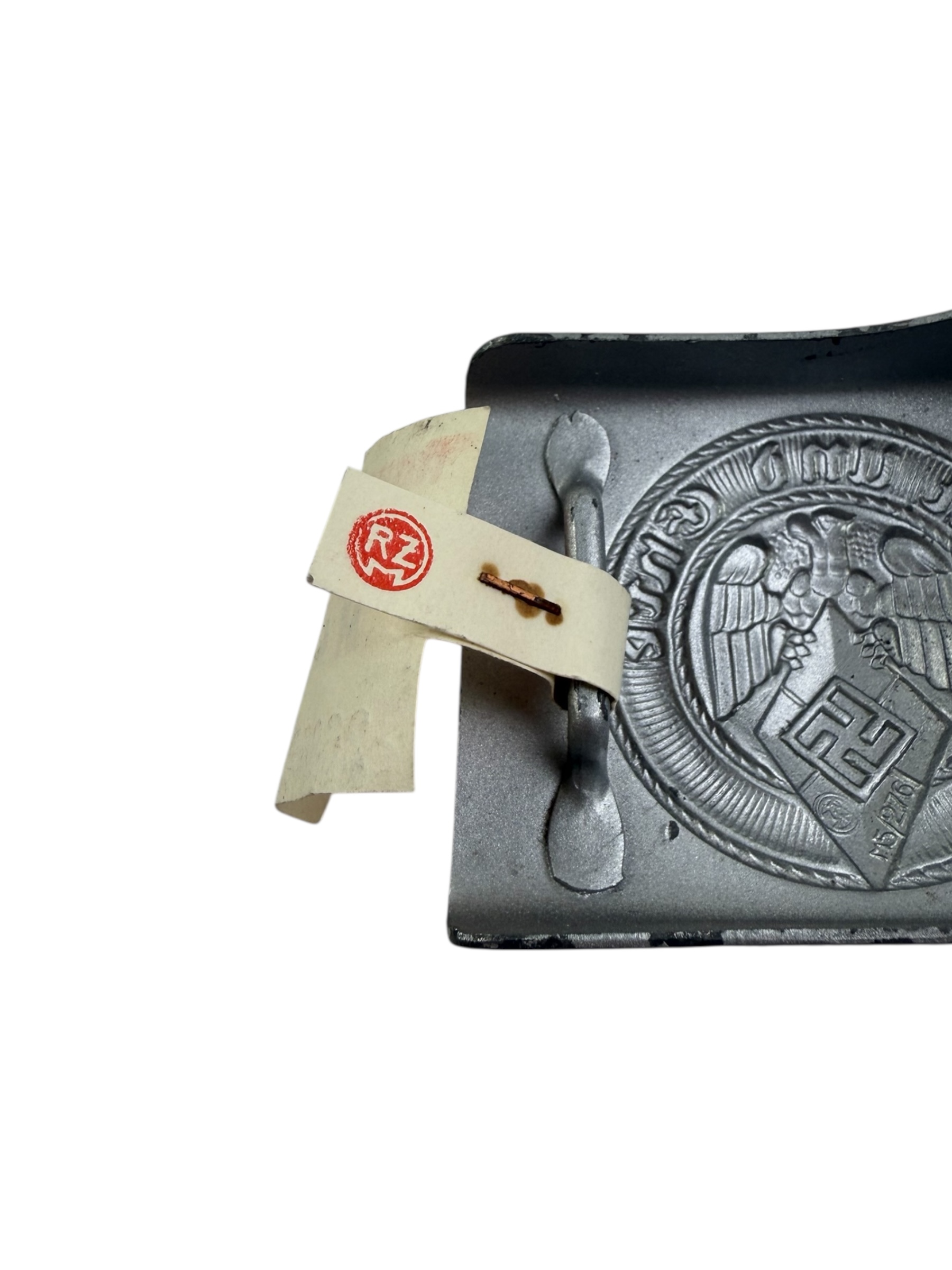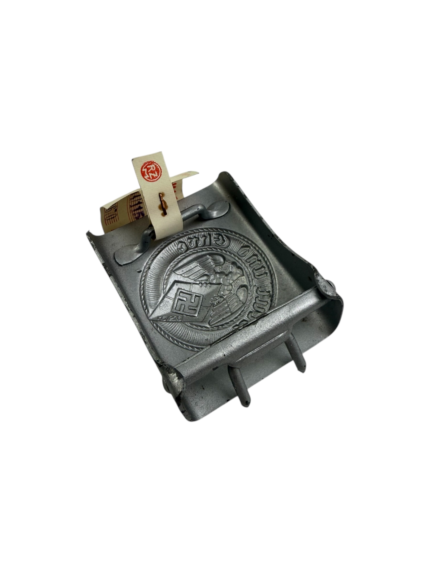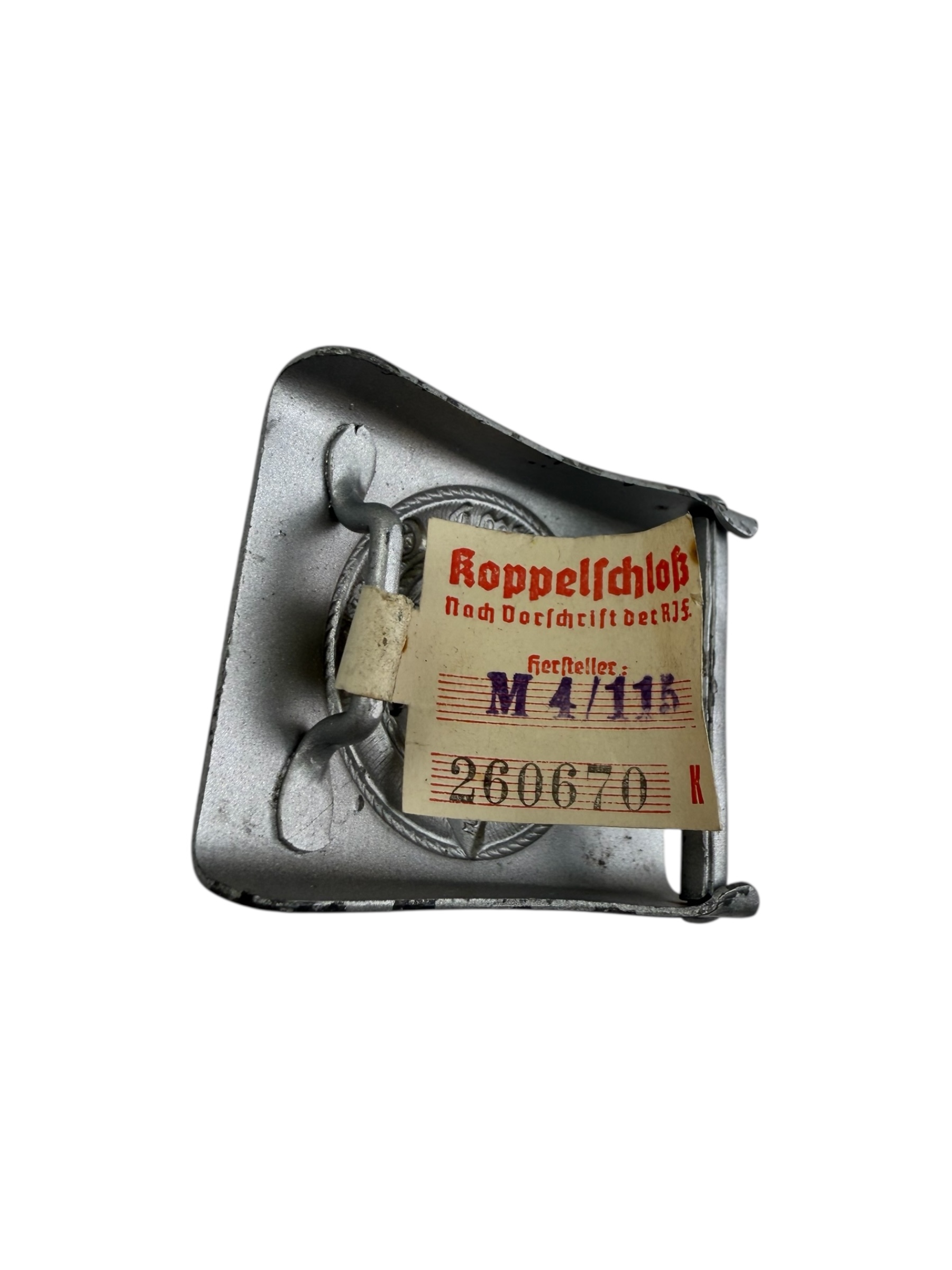 Duits WO2 Hitlerjugend koppelslot. Dit exemplaar is gemaakt van staal en verkeert in zeer nette staat. De markering RZM M5/276 is nog duidelijk zichtbaar en het papieren label is eveneens aanwezig.
