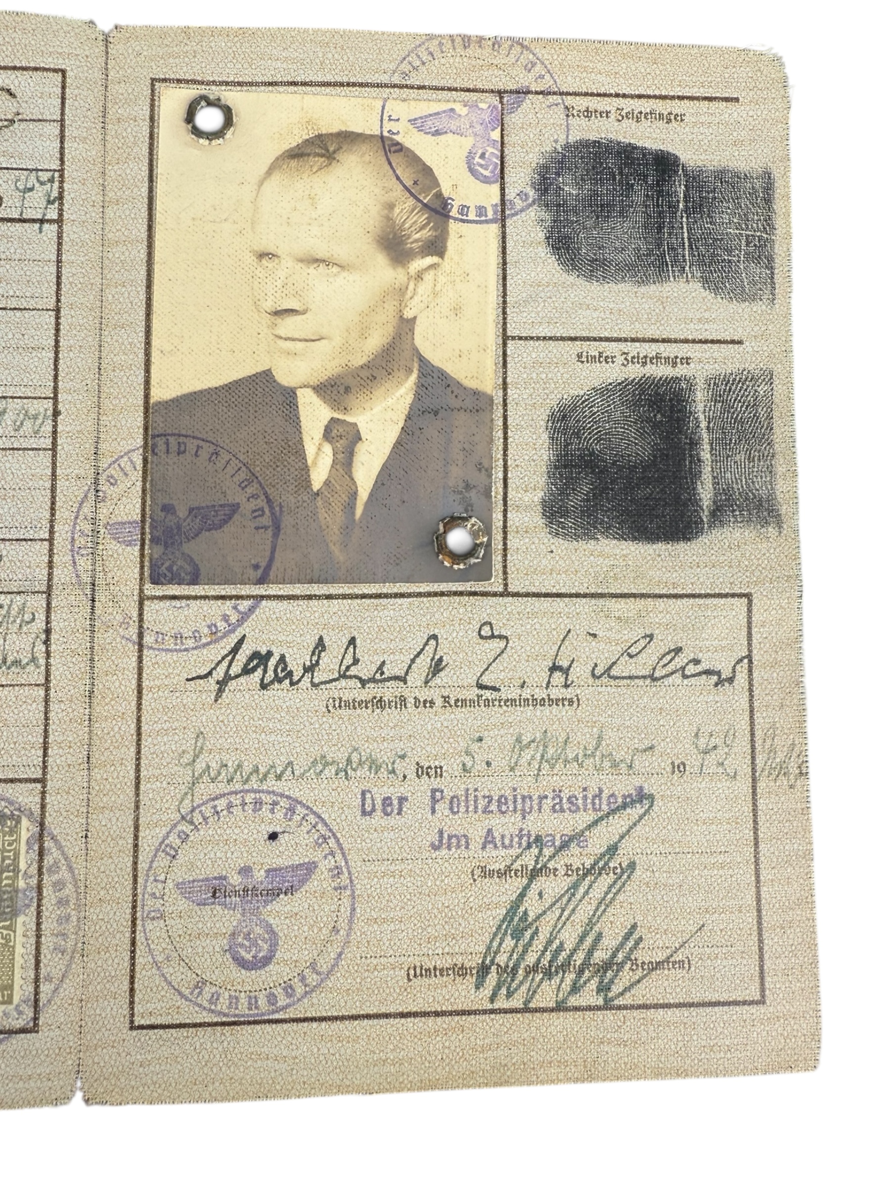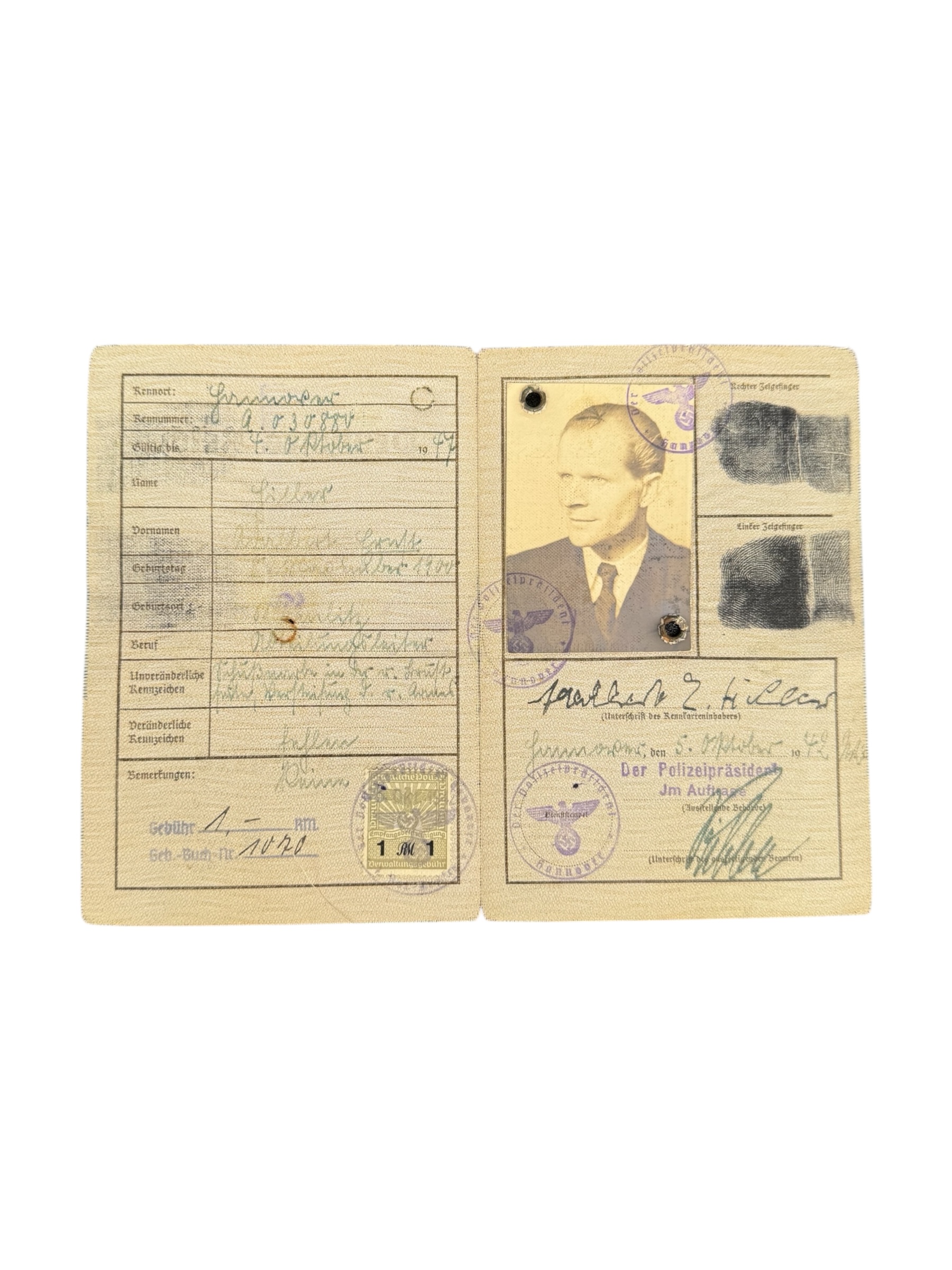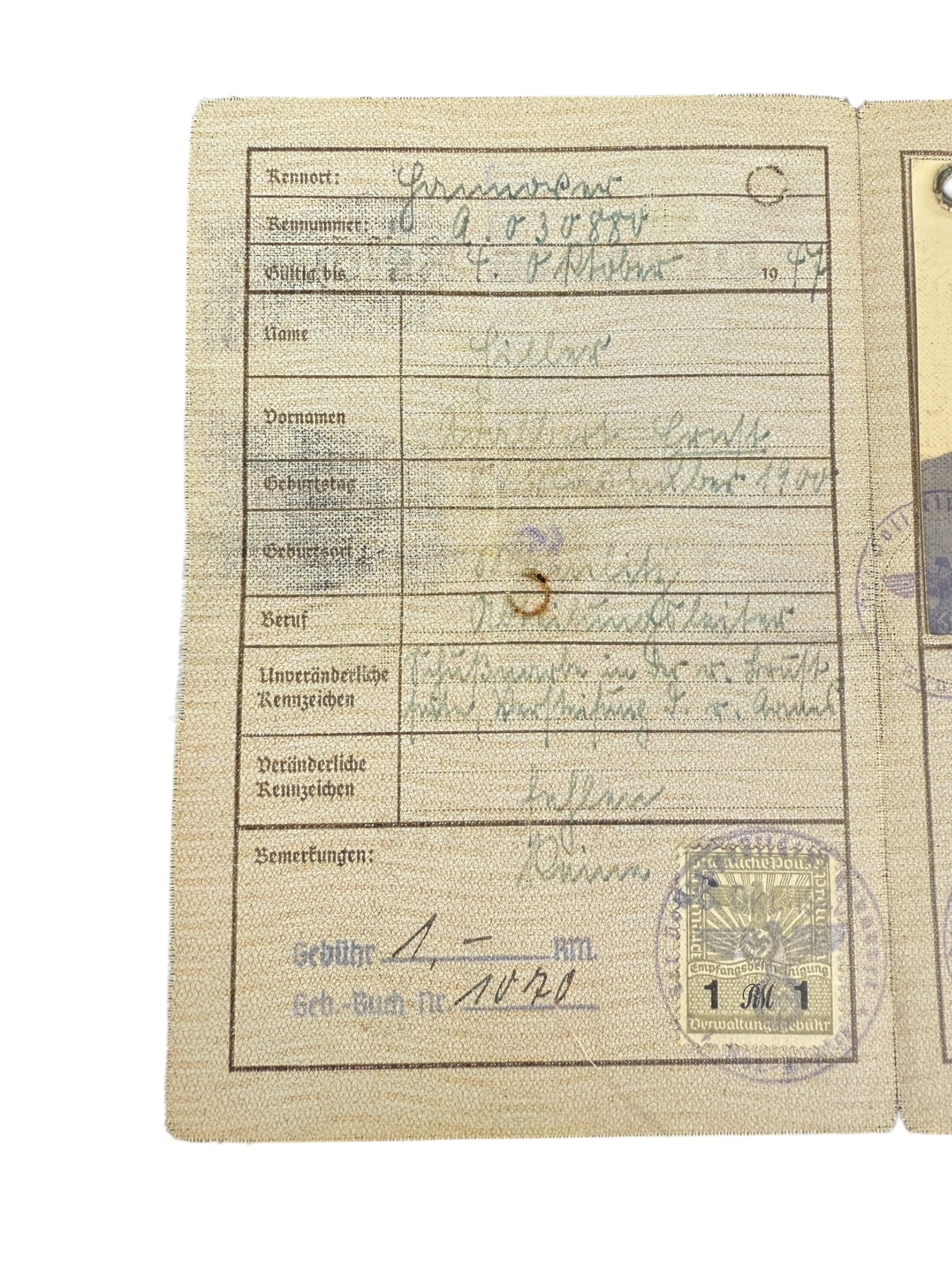 Duitse WO2 Kennkarte, gedateerd 1942. Dit exemplaar verkeert in goede gebruikte staat.