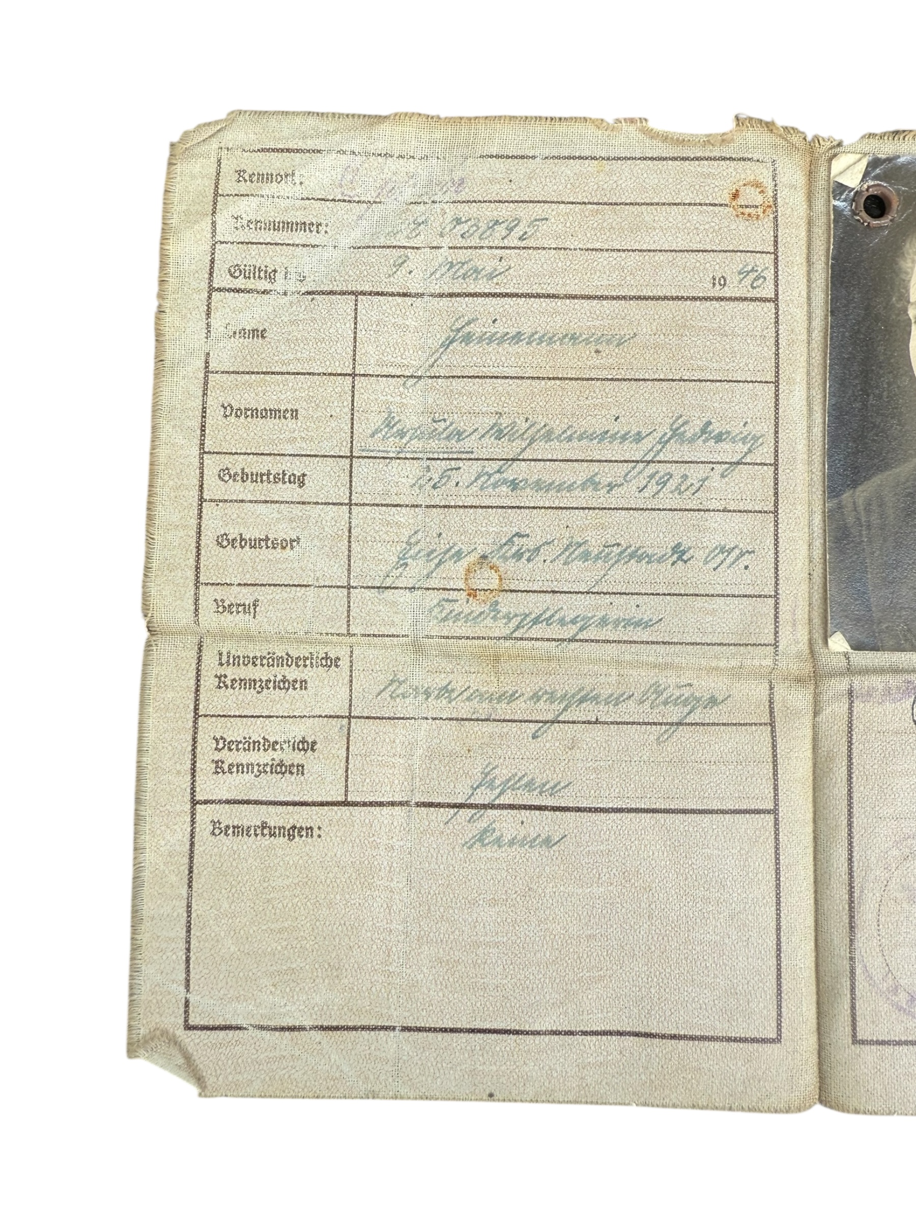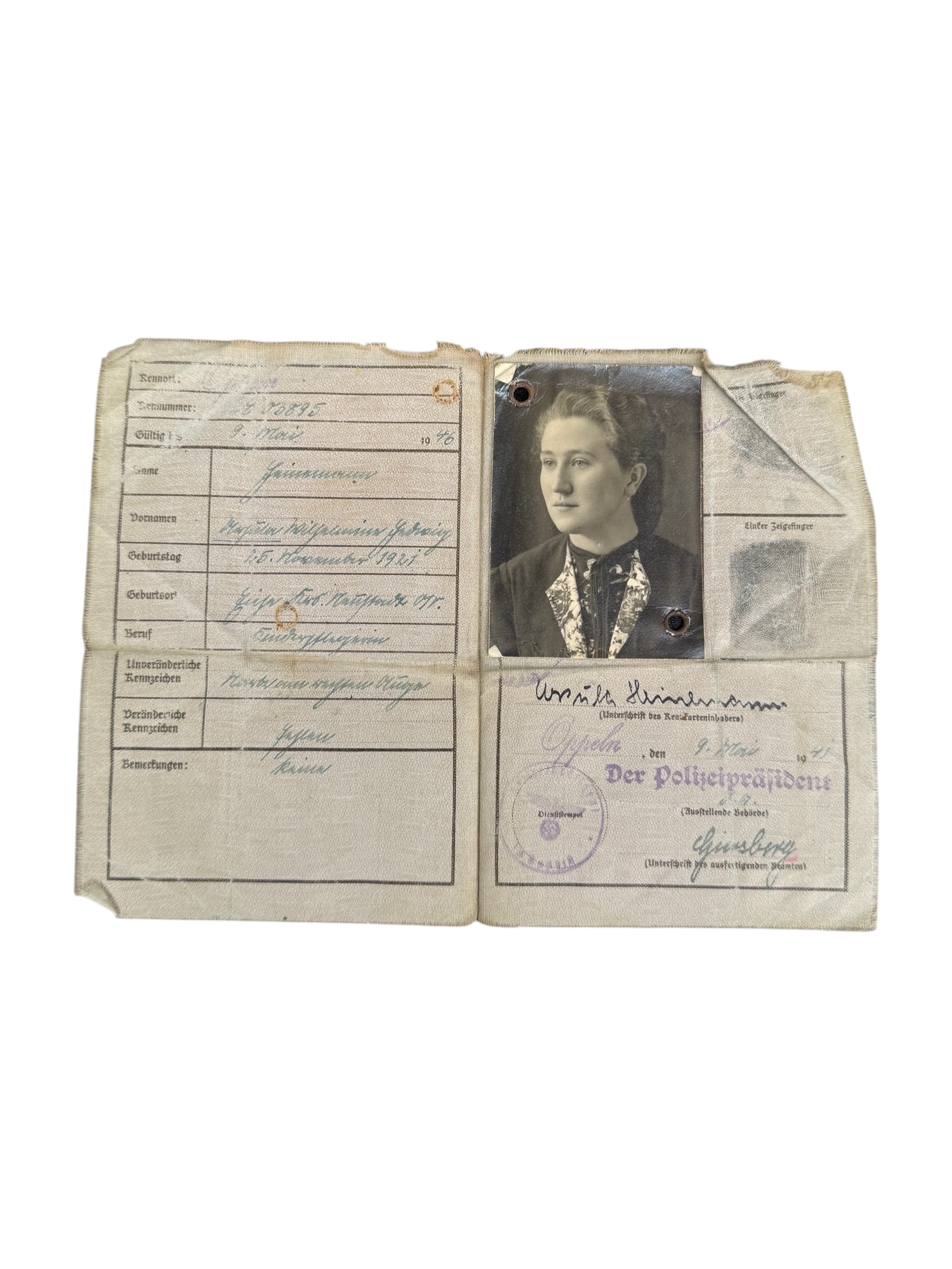 Duitse WO2 Kennkarte, gedateerd 1941. Dit exemplaar verkeert in goede gebruikte staat.