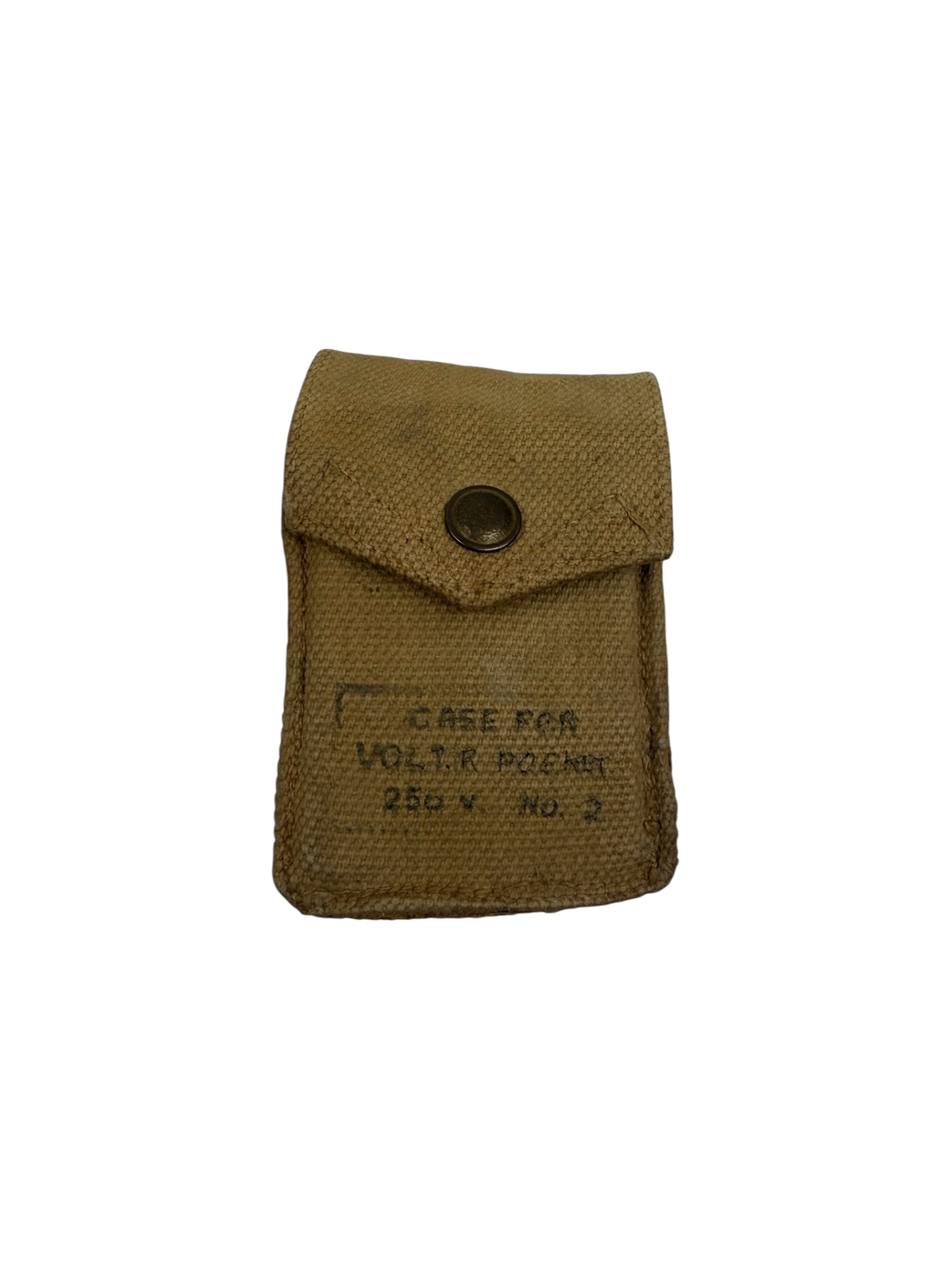 Engels WO2 tasje voor de pocket voltmeter. Dit exemplaar verkeert in goede staat en alle markeringen zijn nog duidelijk zichtbaar.
