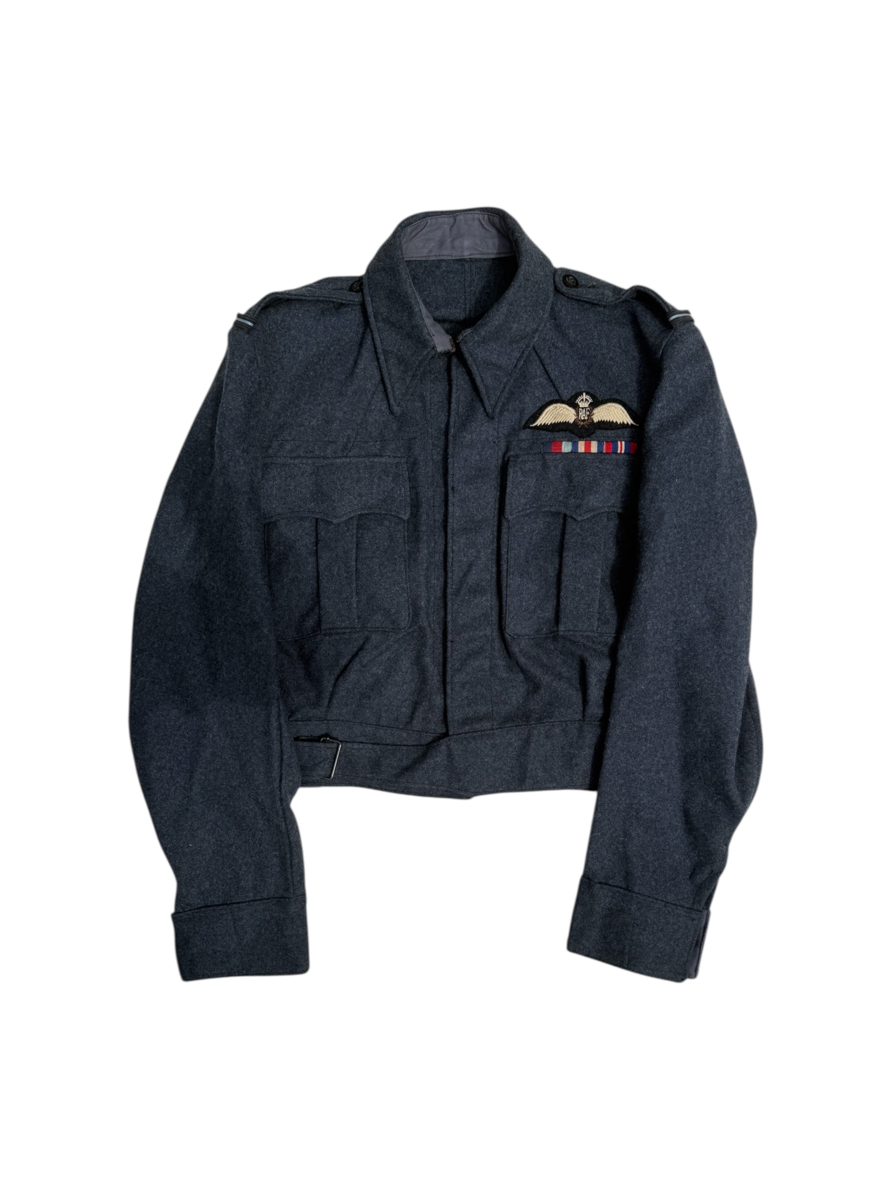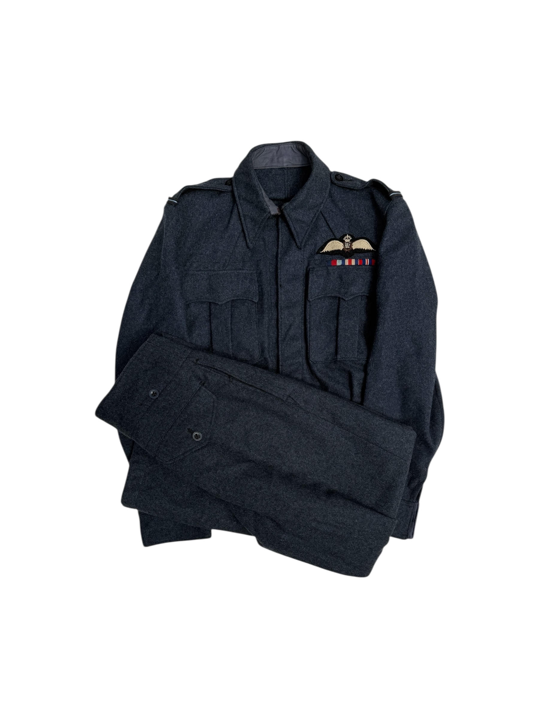 Engels WO2 Royal Air Force uniform in prachtige staat. De broek is 1944 gedateerd en de jas 1945. De staat matcht perfect en ze hebben allebei nog een leesbaar label. De broek is een Size 6 en de jas een Size 16, overigens zijn beiden vrij van motschade.