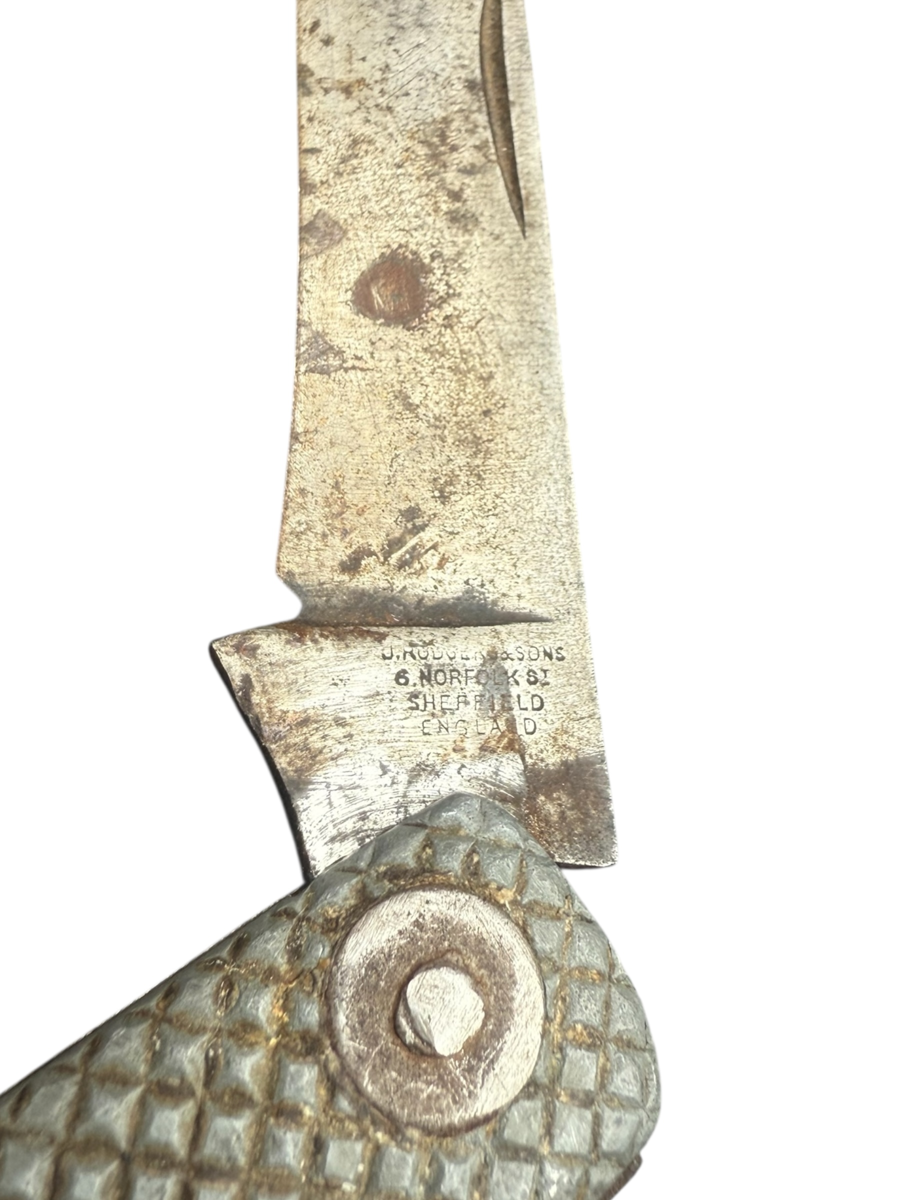 Engels WO2 Royal Navy zakmes uit 1944. Dit zakmes is vervaardigd door de producent J. Rodger & Sons en verkeert in gebruikte staat. Dit exemplaar is iets groter dan het standaard zakmes.