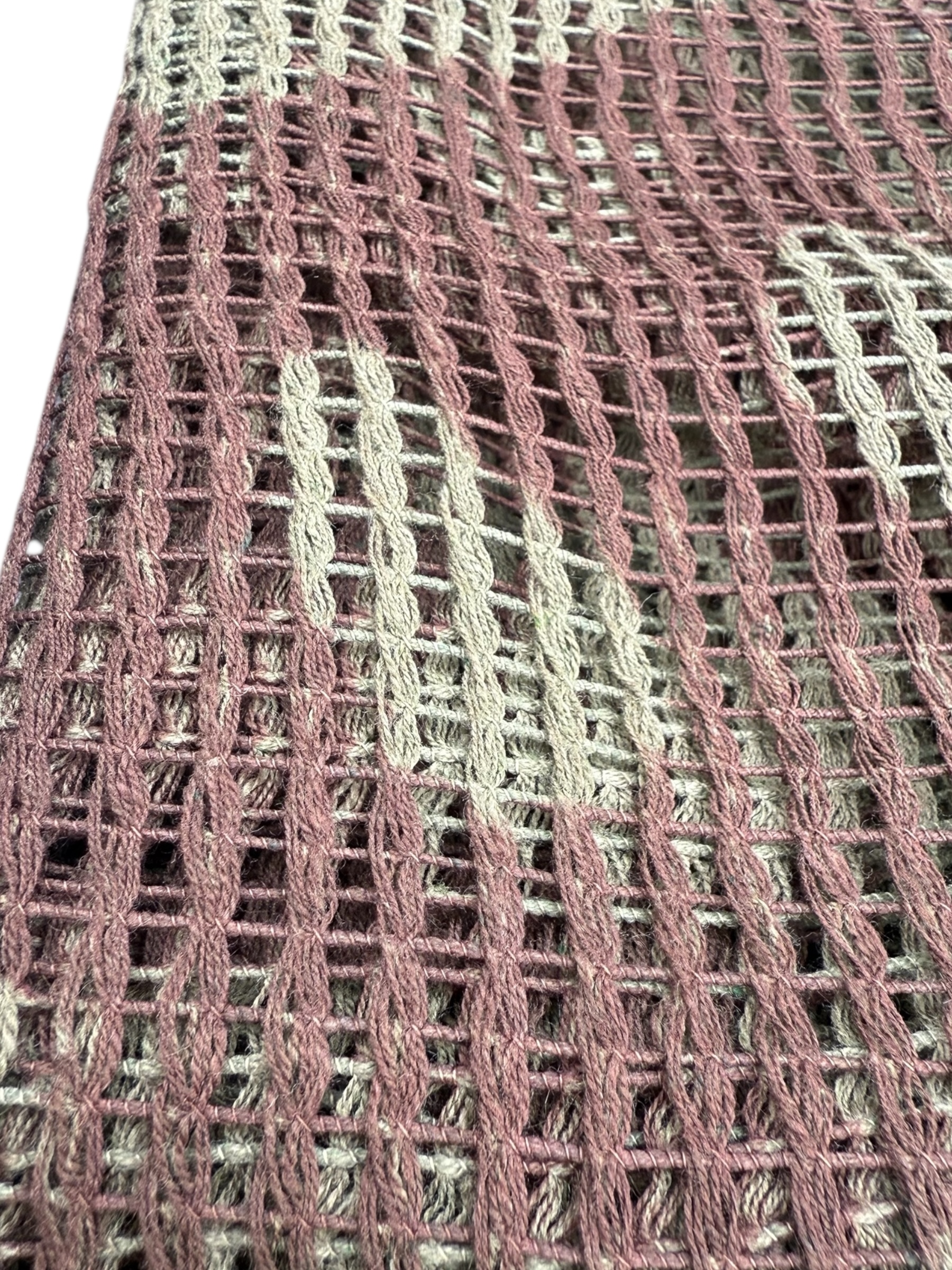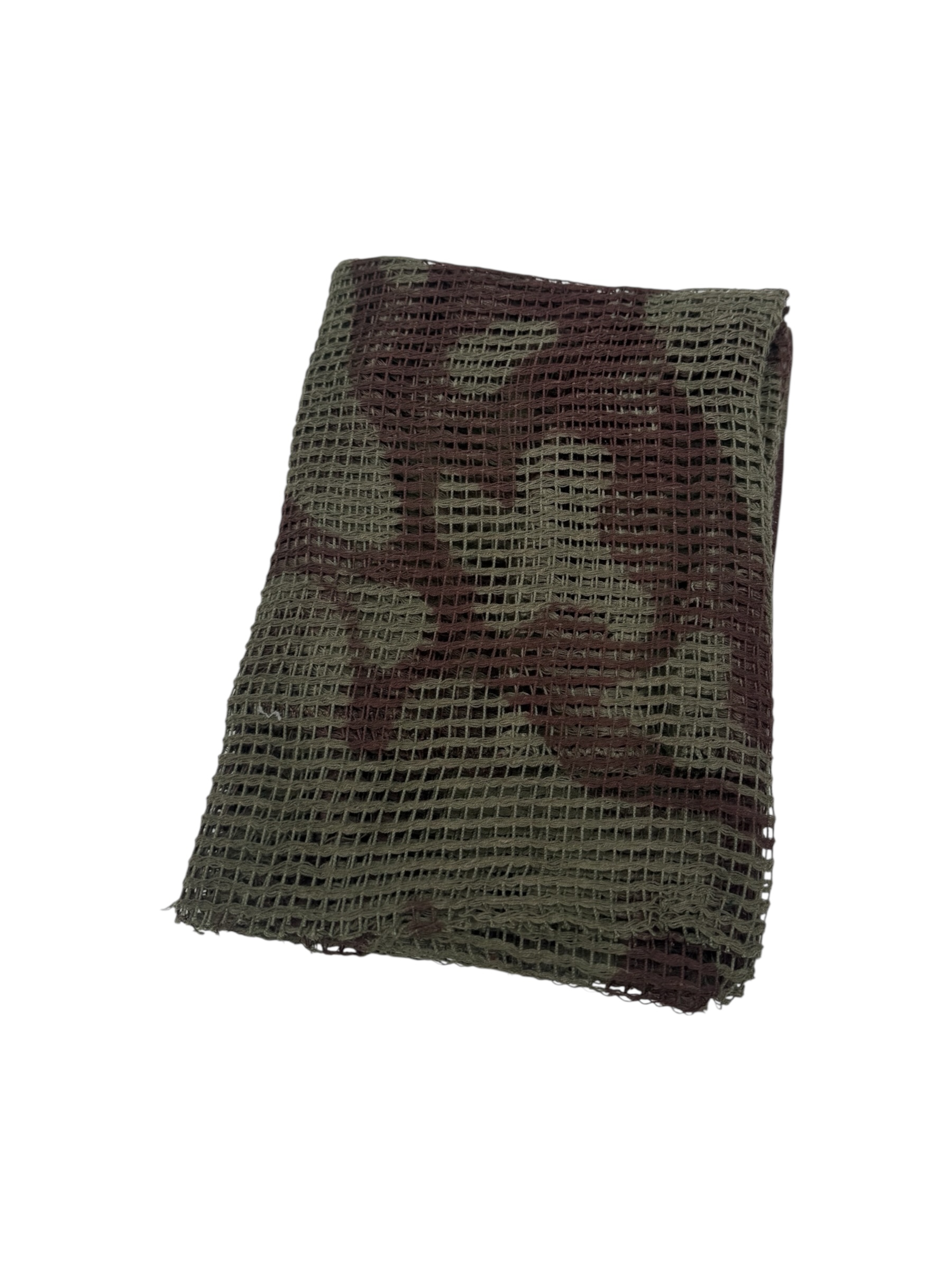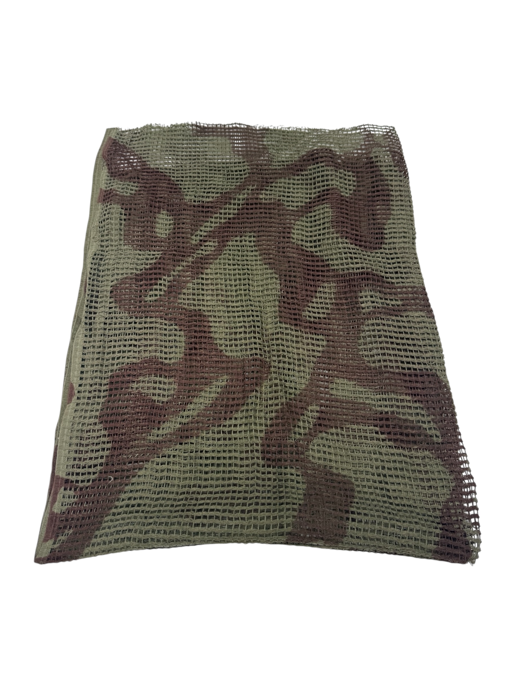Engelse WO2 camouflage sjaal/scarf in nette staat. Deze werden meestal gedragen als gewone sjaal, maar er zijn ook veel foto’s waarin hij wordt gebruikt als camouflage voor sluipschutters of op helmen. De afmetingen zijn ongeveer 76cm x 94cm.