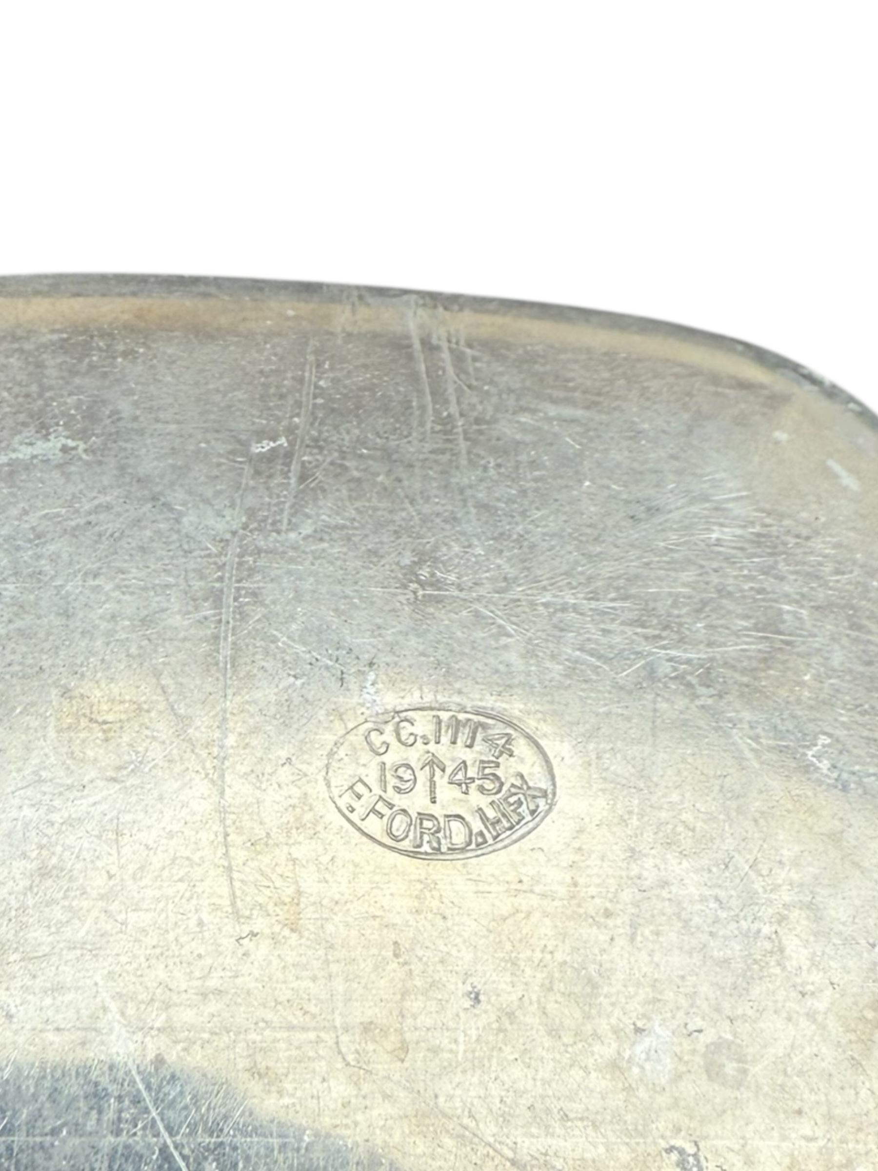 Engelse WO2 zeepdoos in goede staat. Dit exemplaar is van aluminium en de producentmarkeringen zijn nog duidelijk leesbaar.