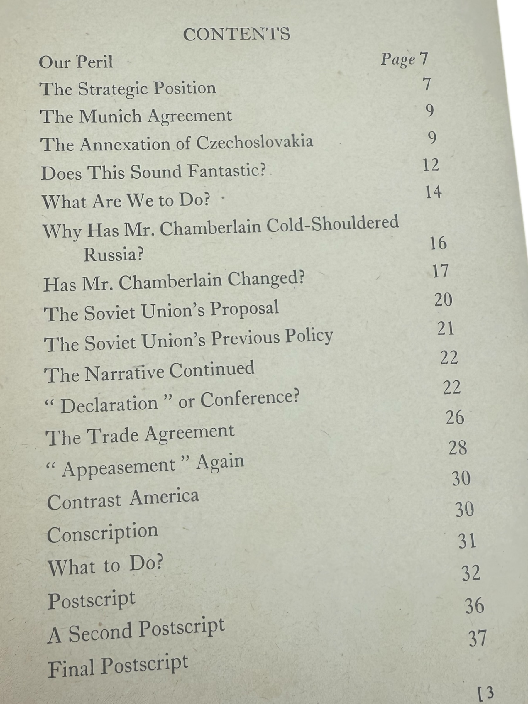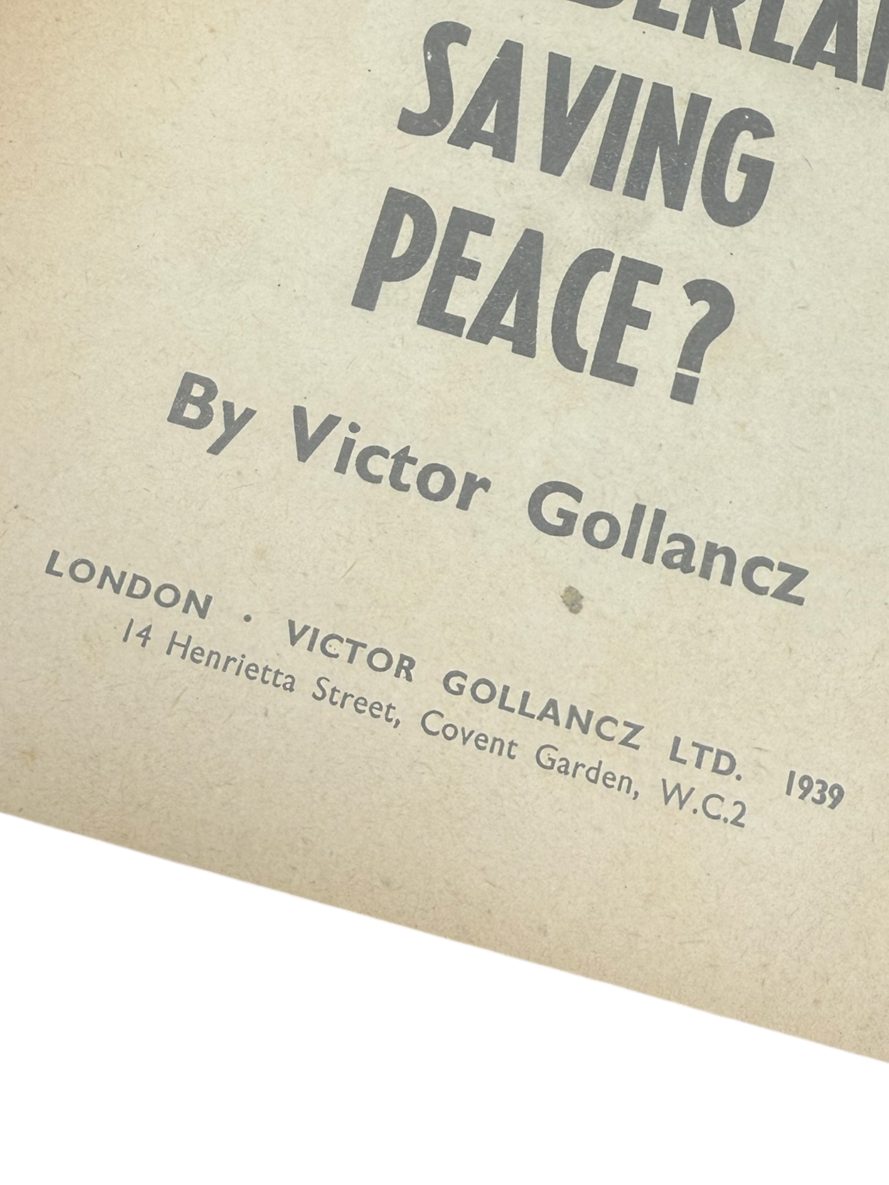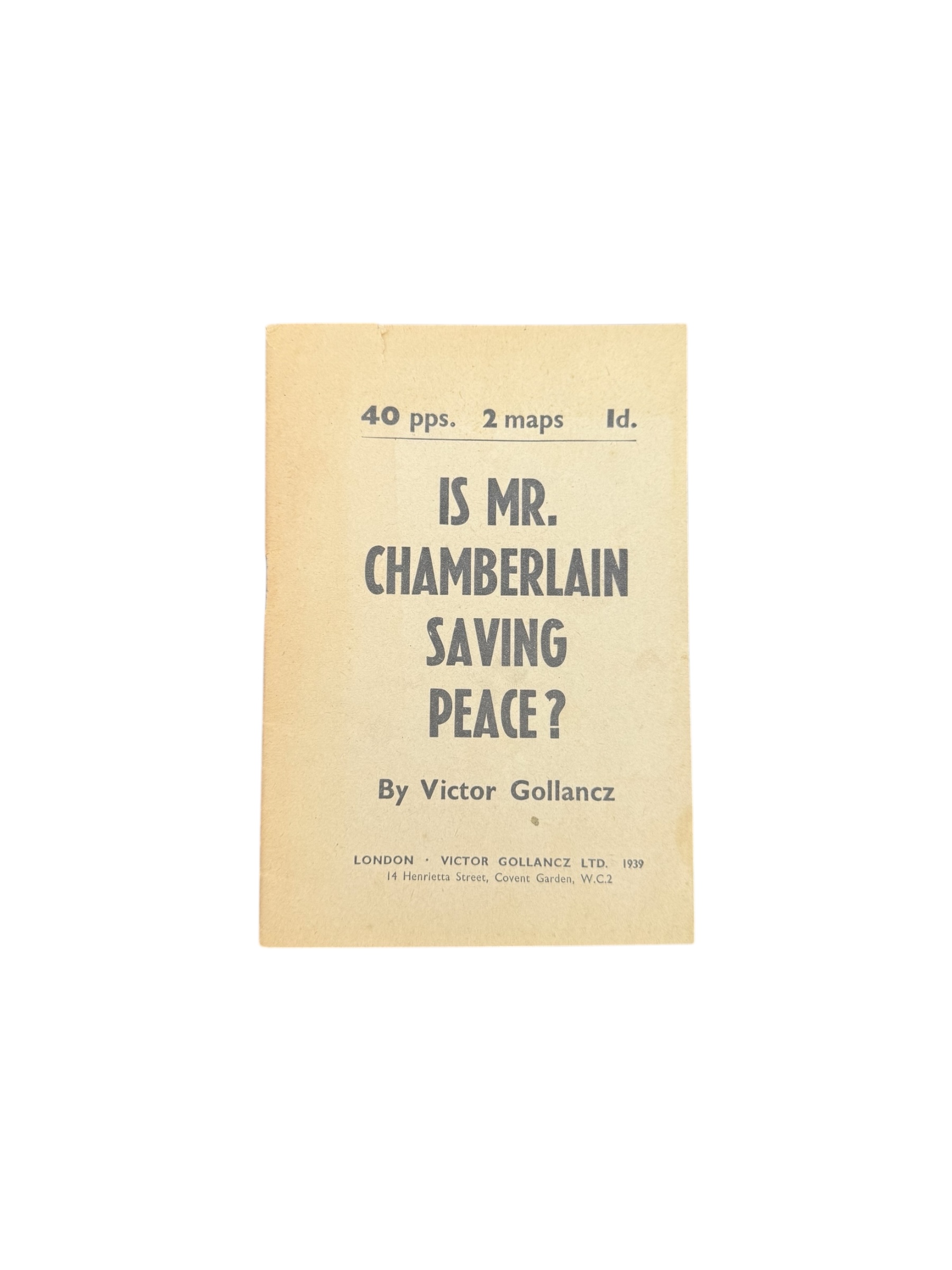 Engels WO2 pamflet “Is Mr. Chamberlain Saving Peace?” Gedateerd 1939 en in nette staat.