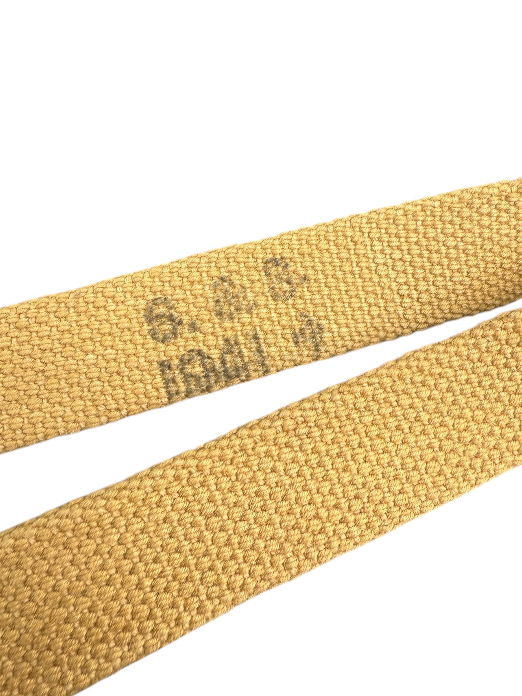 Engelse WO2 webbing Utility strap in hele nette staat. Dit exemplaar is 1944 gedateerd en de markeringen zijn nog duidelijk leesbaar.