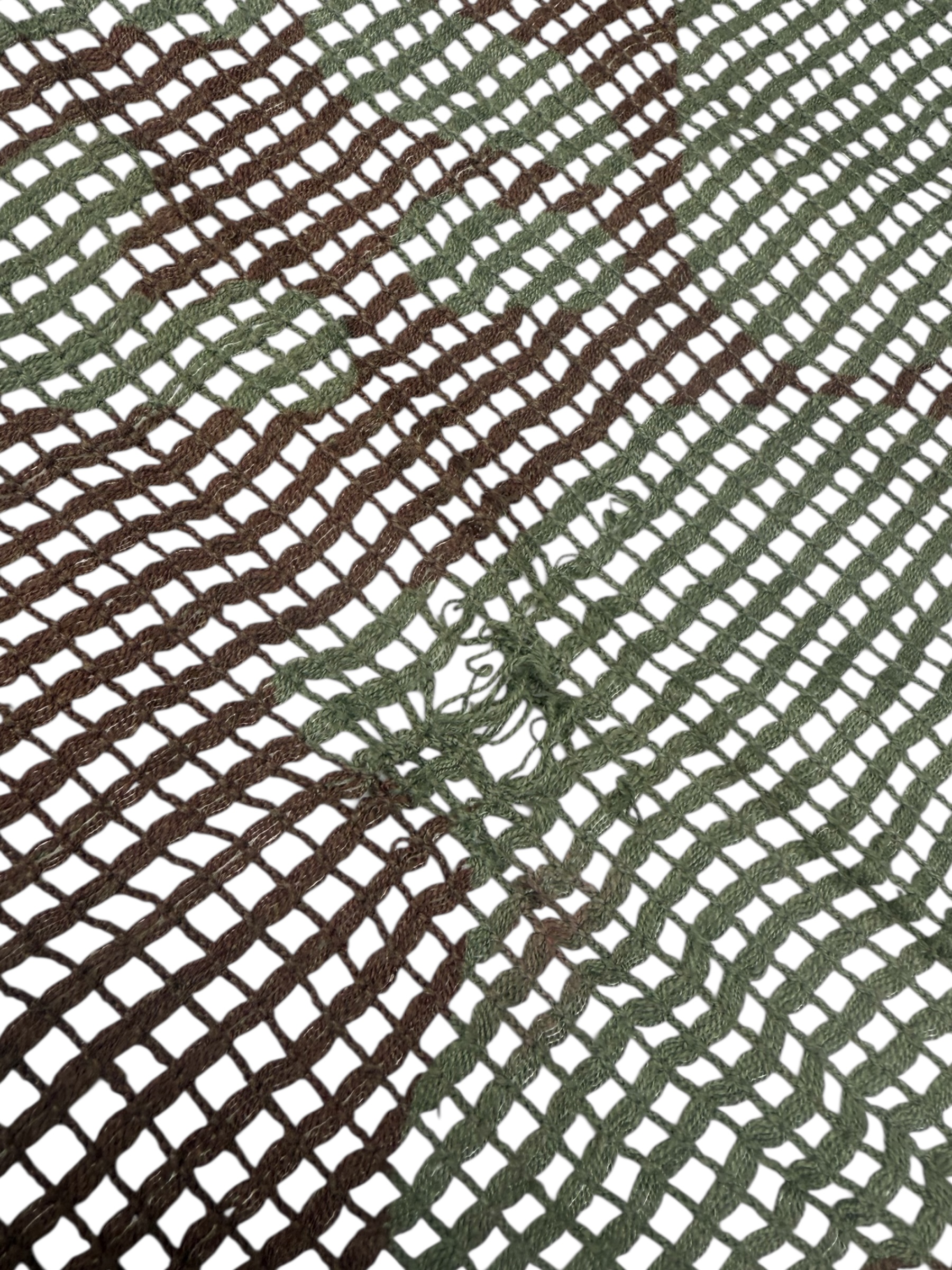 Engelse WO2 camouflage sjaal/scarf in nette staat. Deze werd meestal gedragen als gewone sjaal, maar er zijn ook foto’s waarin hij werd gebruikt als camouflage voor sluipschutters of op helmen. De afmetingen zijn ongeveer 176 cm x 72 cm. Alle naden zijn rondom nog zichtbaar, dus dit stuk is niet gesneden of uitgeknipt zoals je vaker ziet.