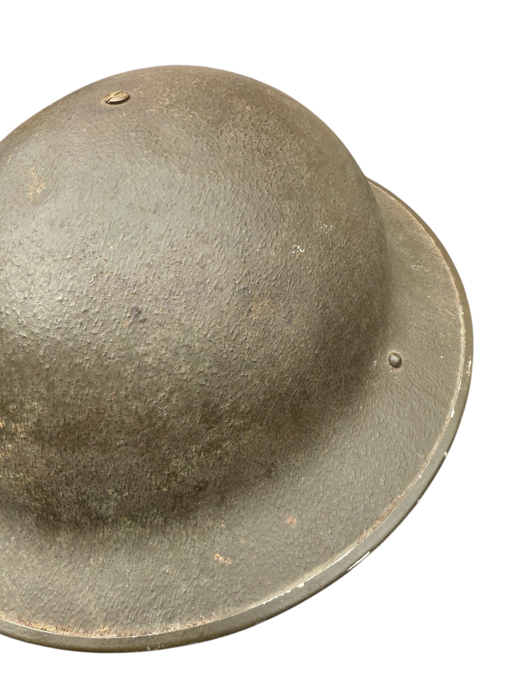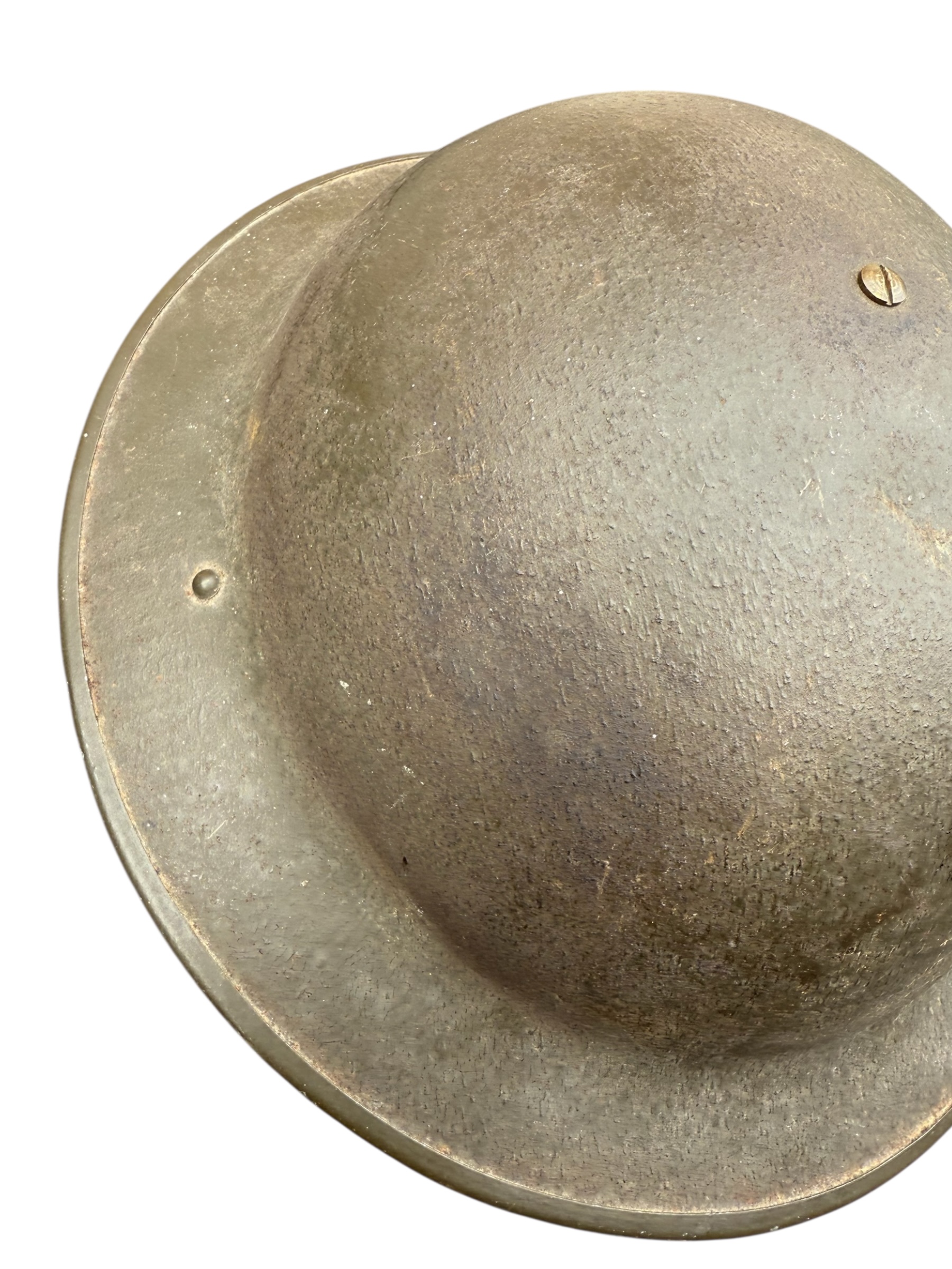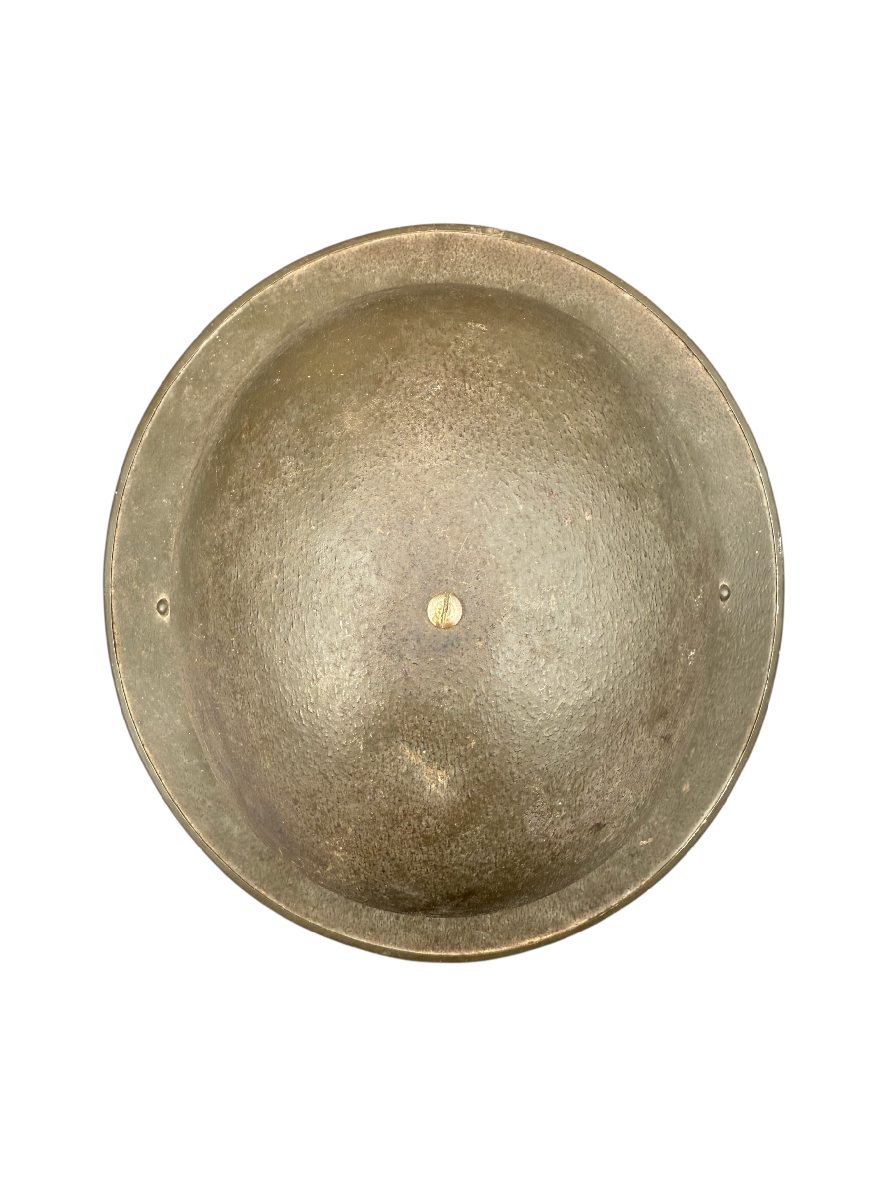Engelse WO2 helm in goede, gebruikte staat. Het binnenwerk met maat 7 dateert uit 1938 en de helmschaal uit 1942. De helm is tevens voorzien van een vroeg-oorlogse kinband.