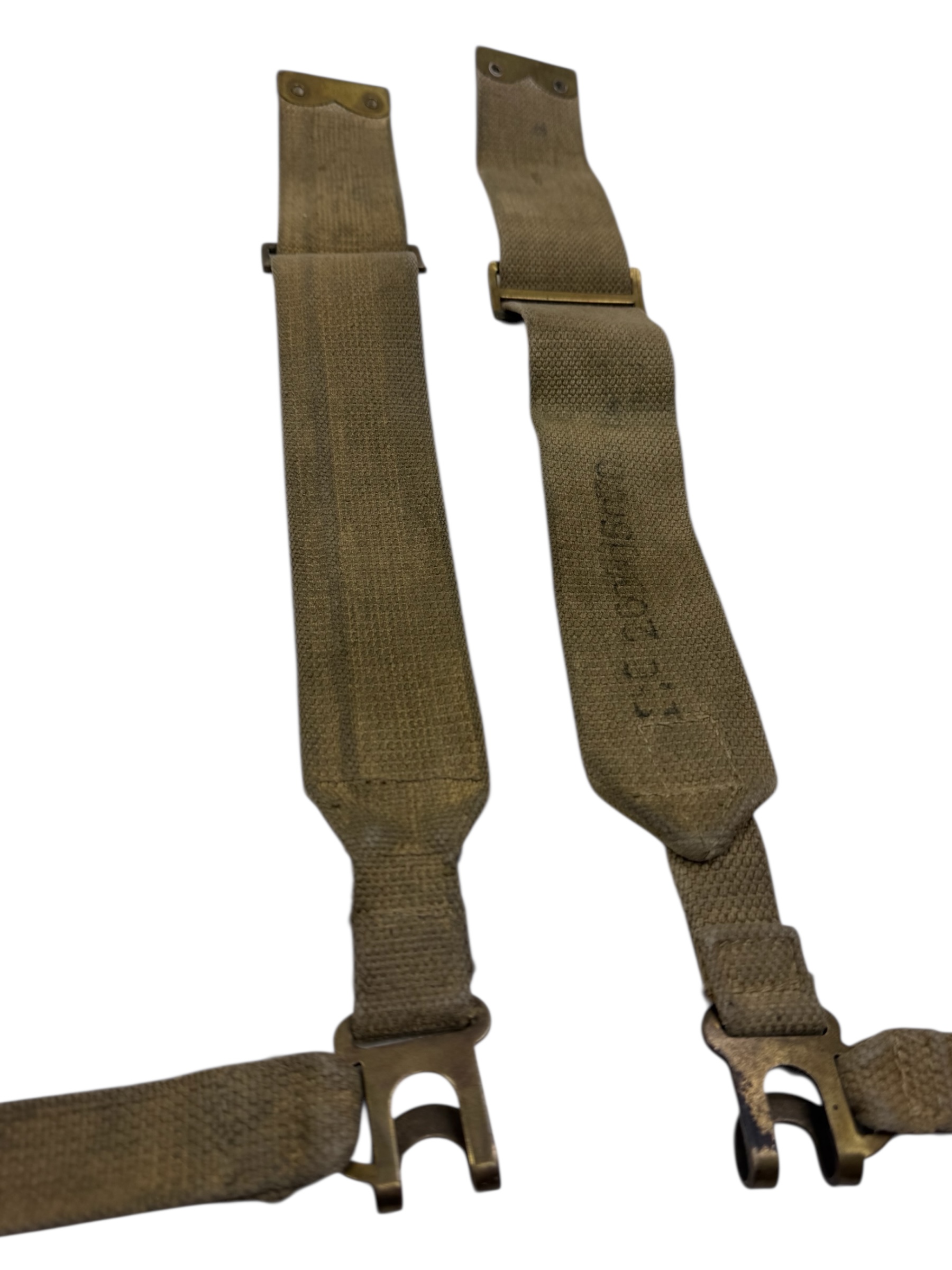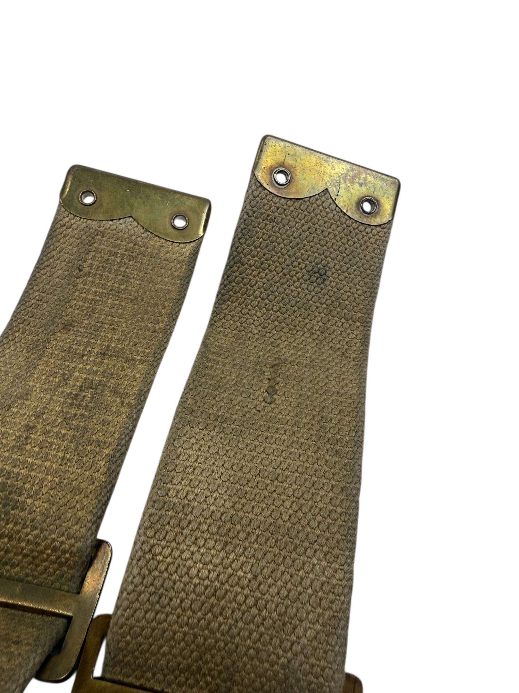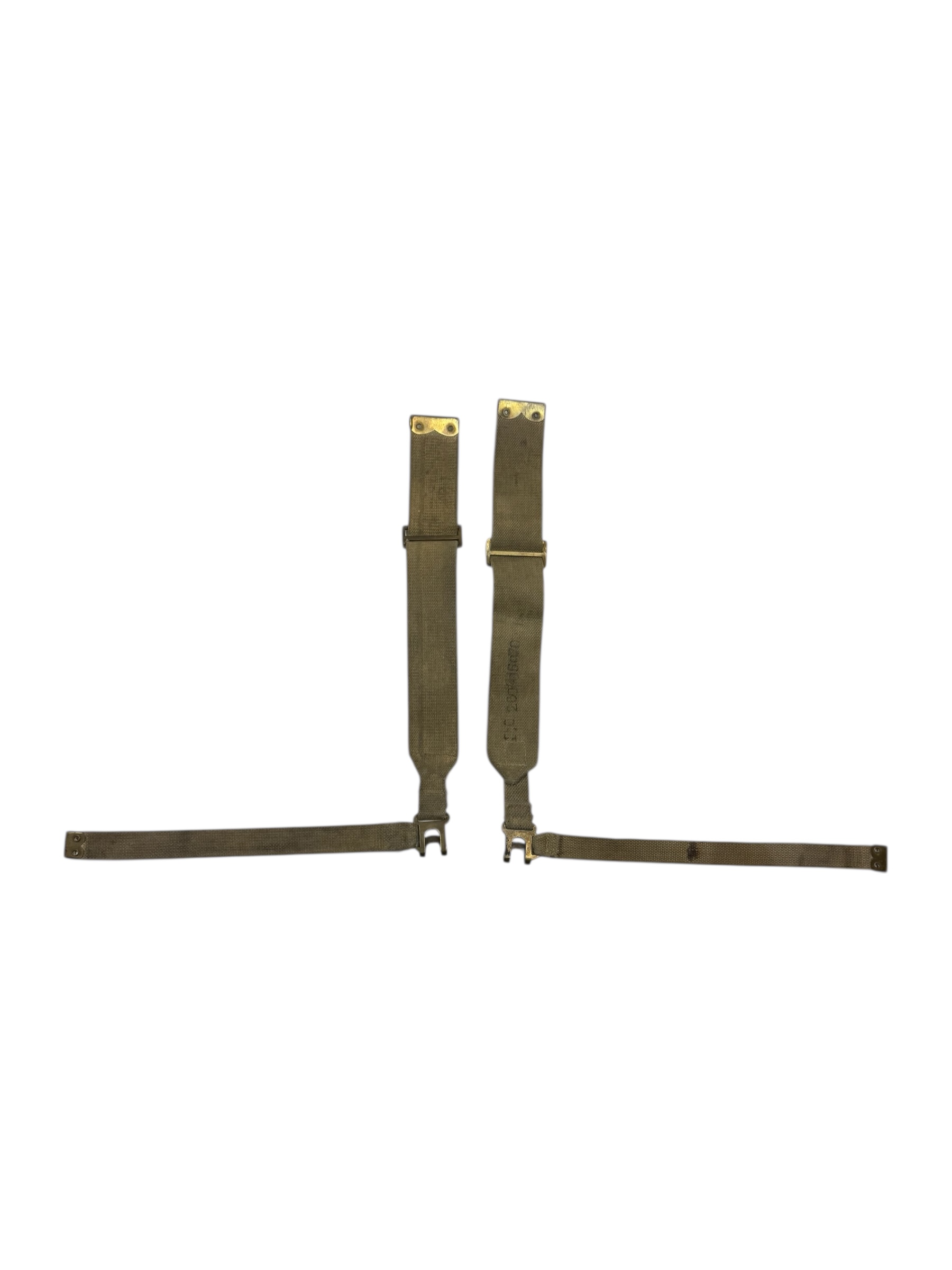 Engels WO2 setje L-Straps in gedragen staat. Beiden zijn voorzien van een laag blanco en de staat komt goed overeen.