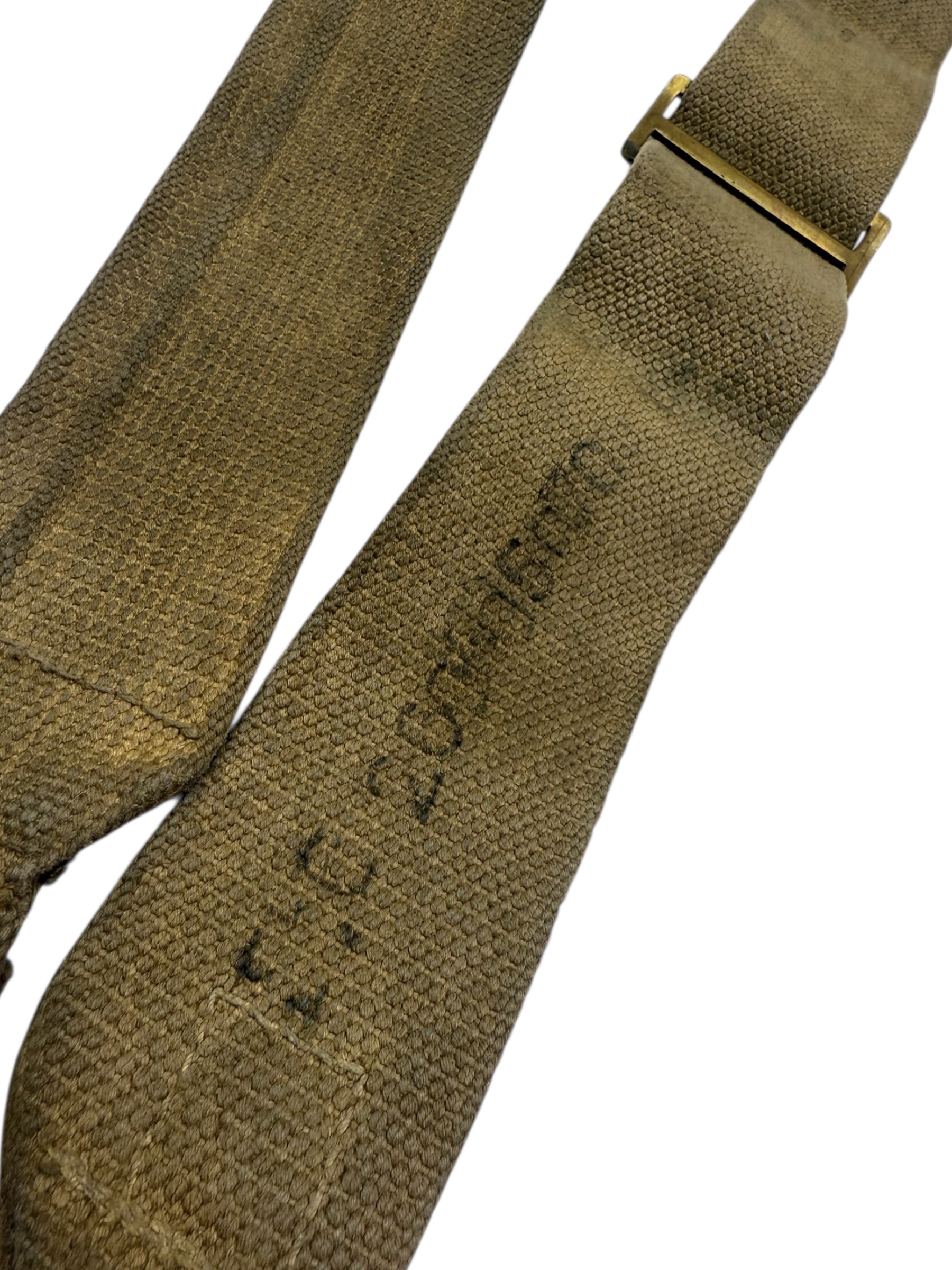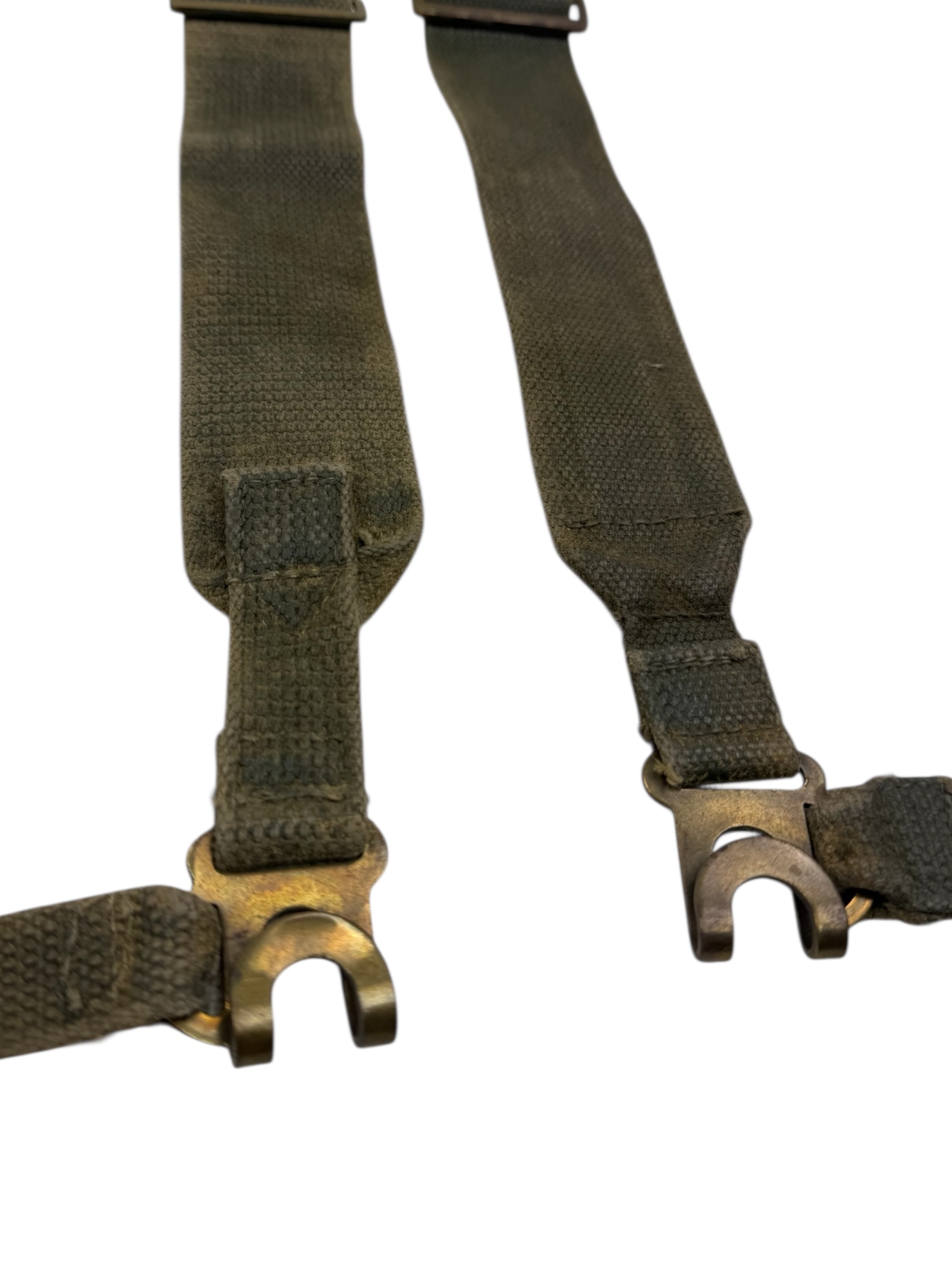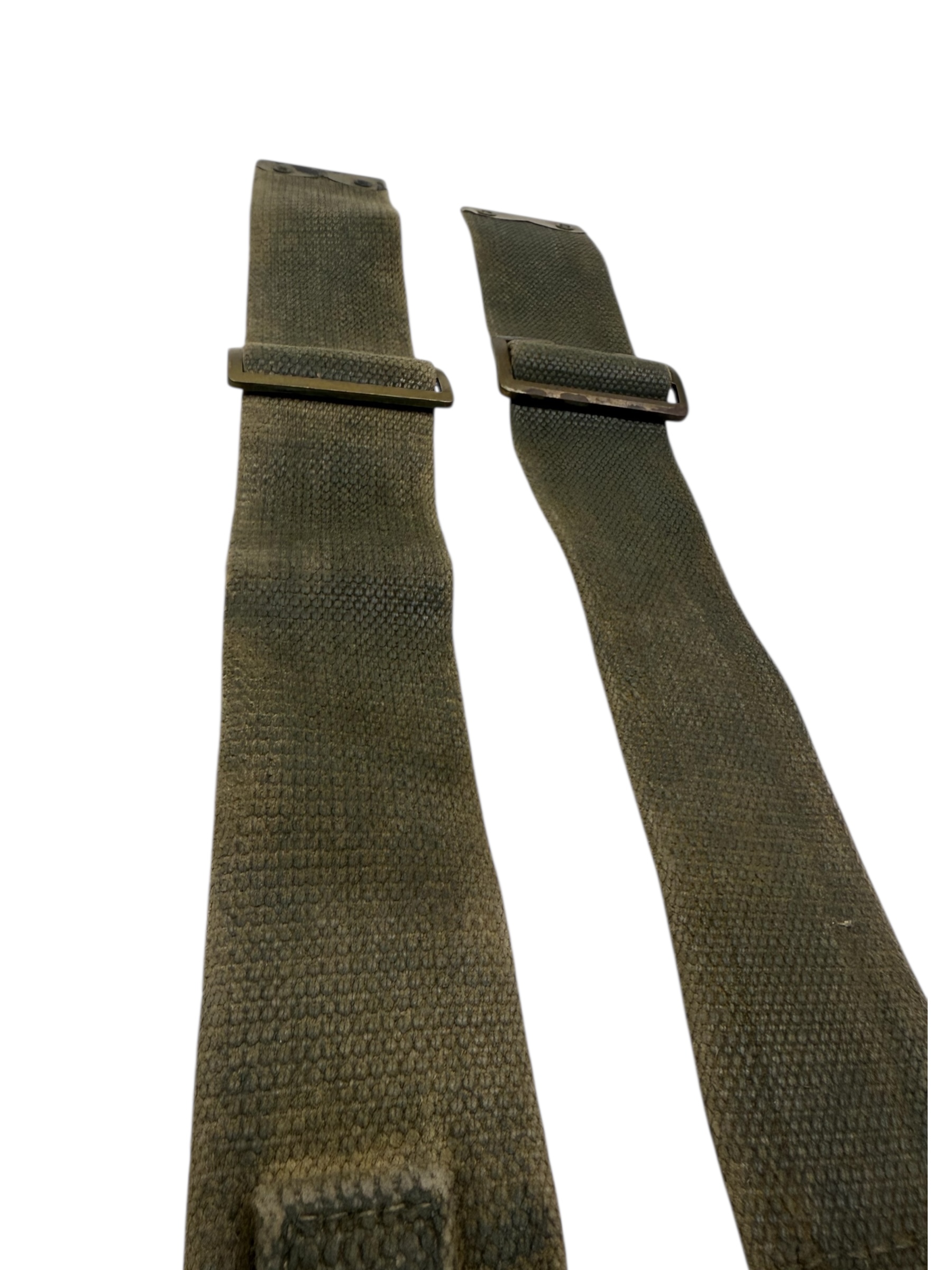 Engels WO2 setje L-Straps in gedragen staat. Beiden zijn voorzien van een laag blanco en de staat komt goed overeen.