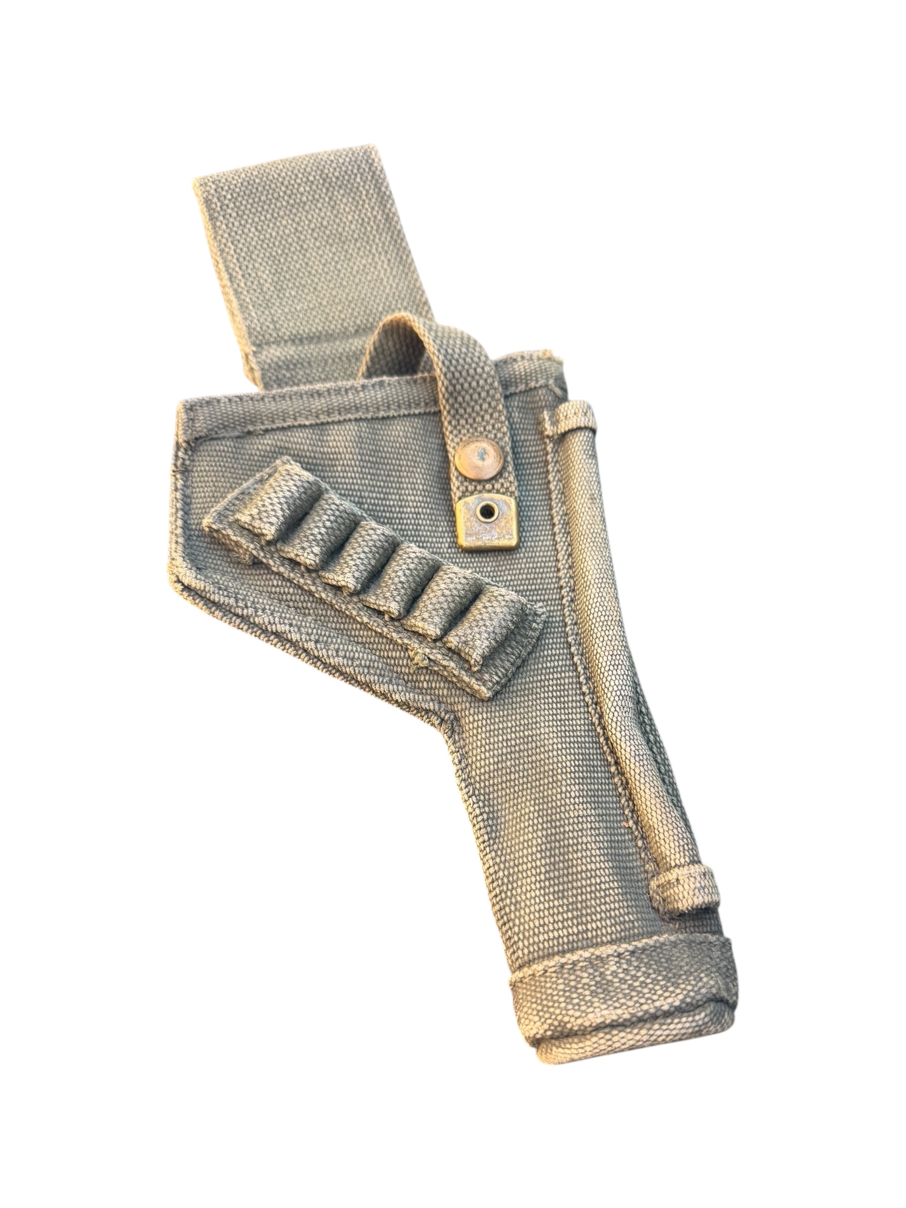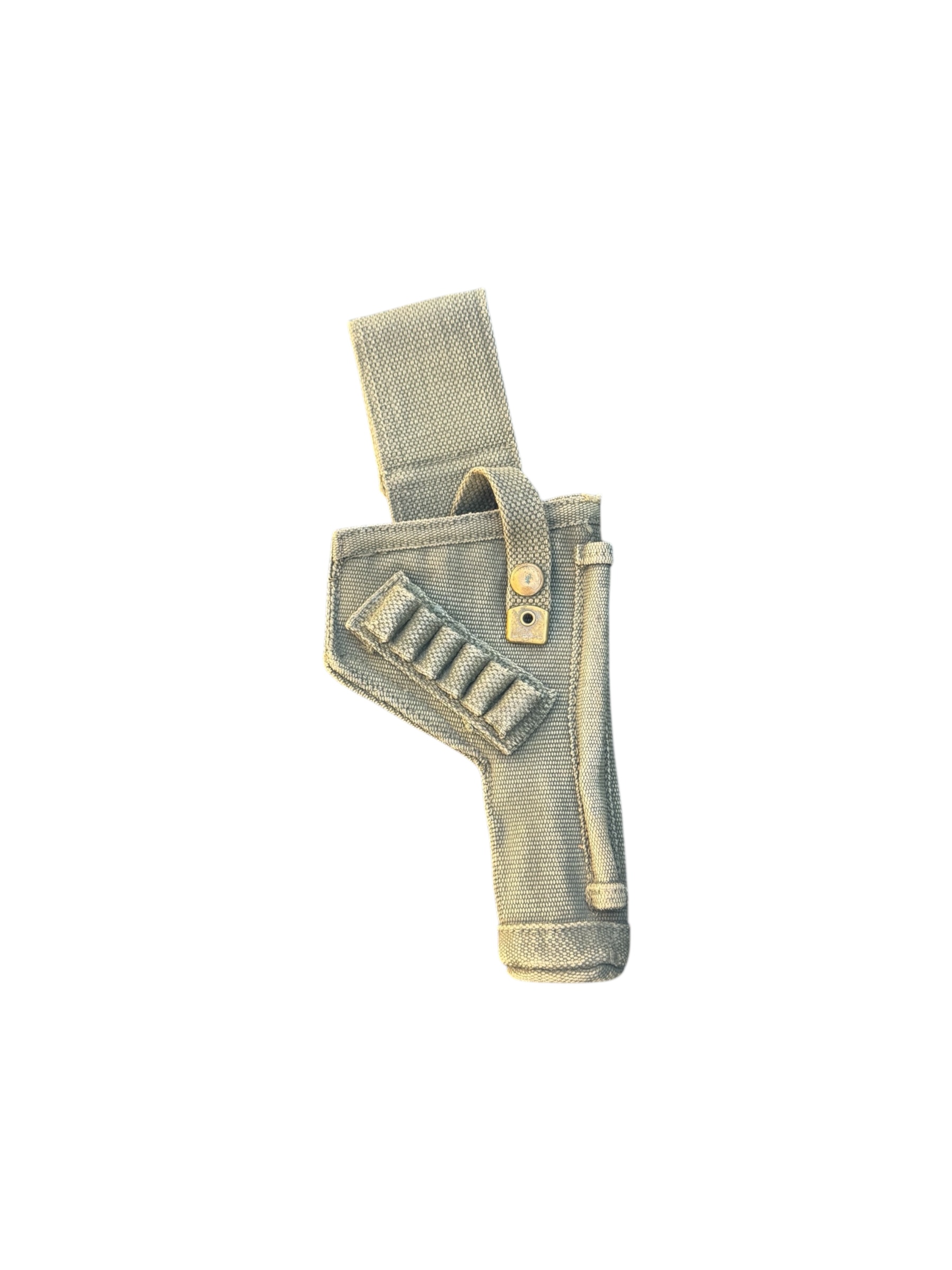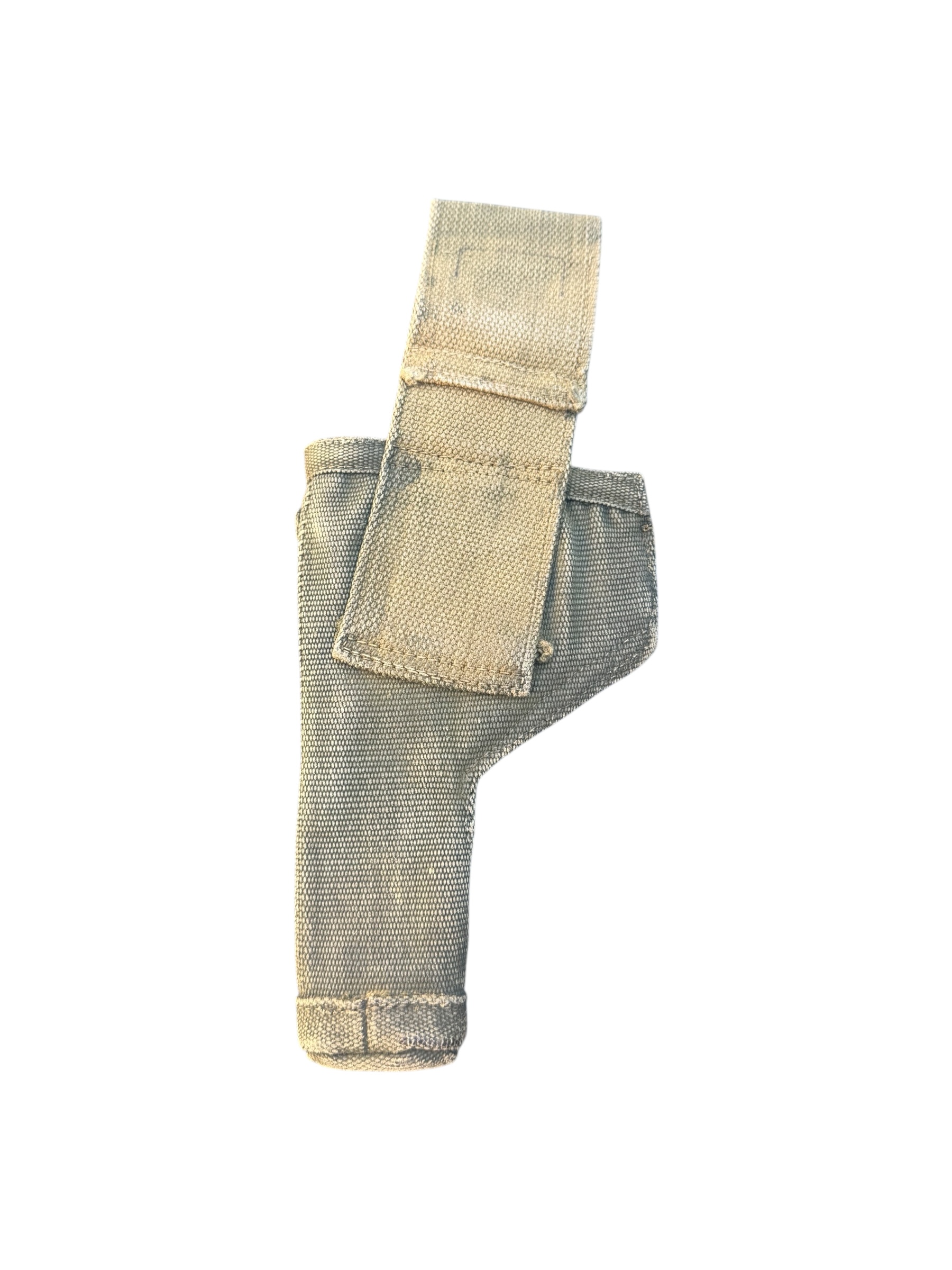 Engels WO2 tankerholster in goede gebruikte staat. Dit exemplaar is 1942 gedateerd en voorzien van een dunne laag zwarte blanco.