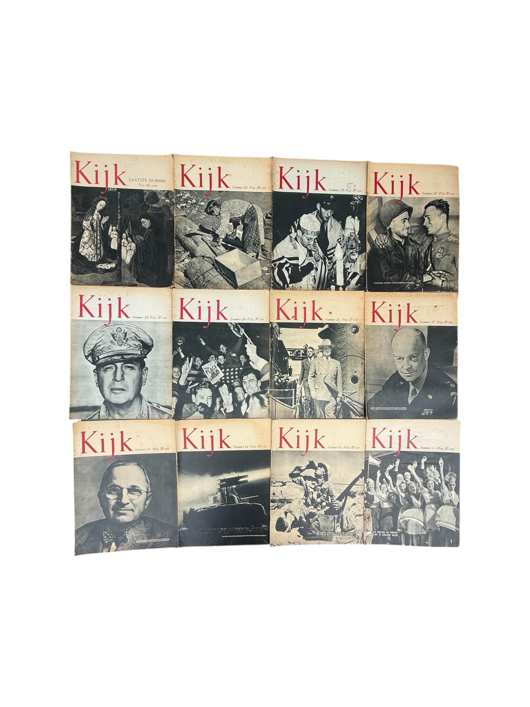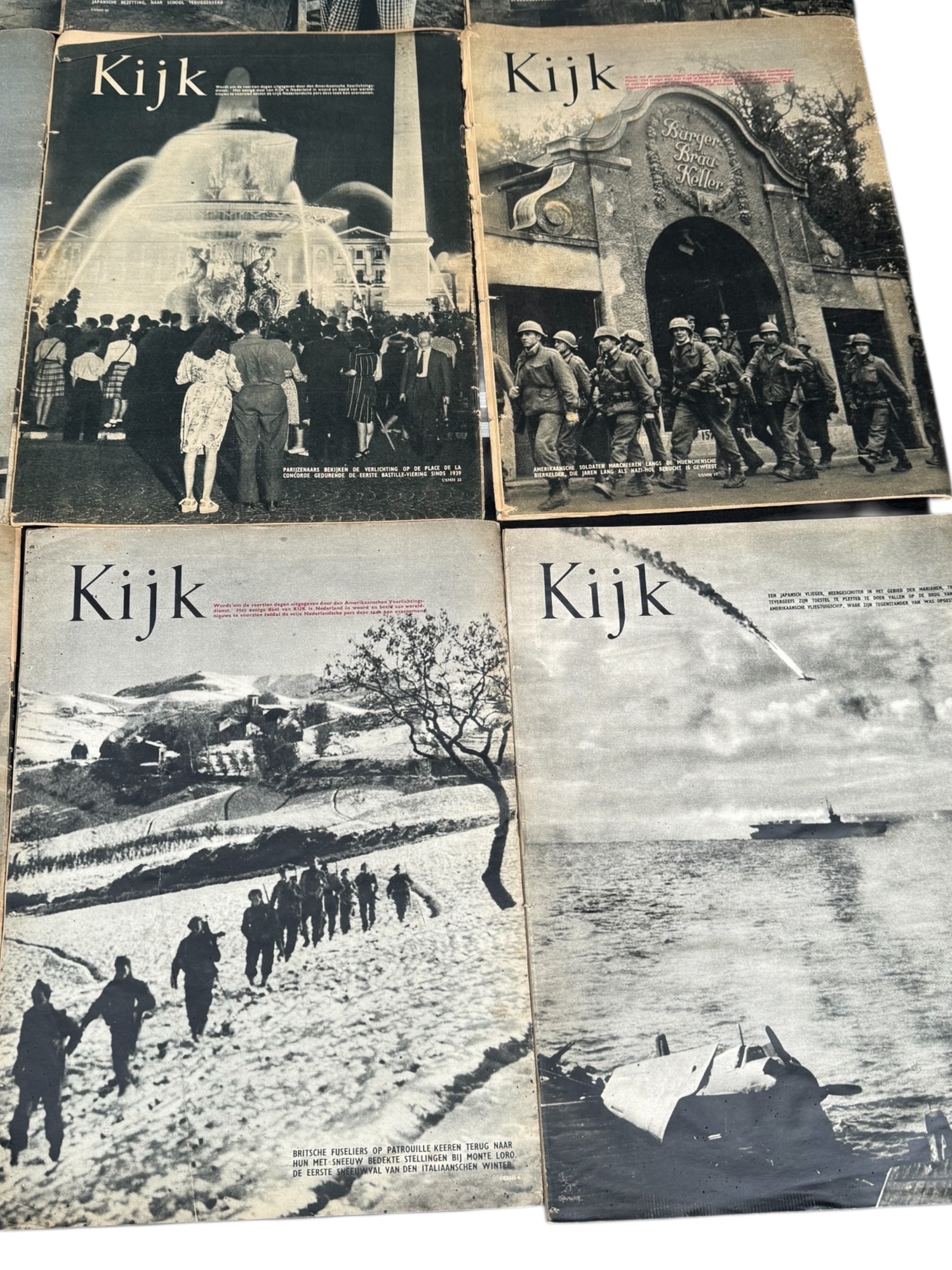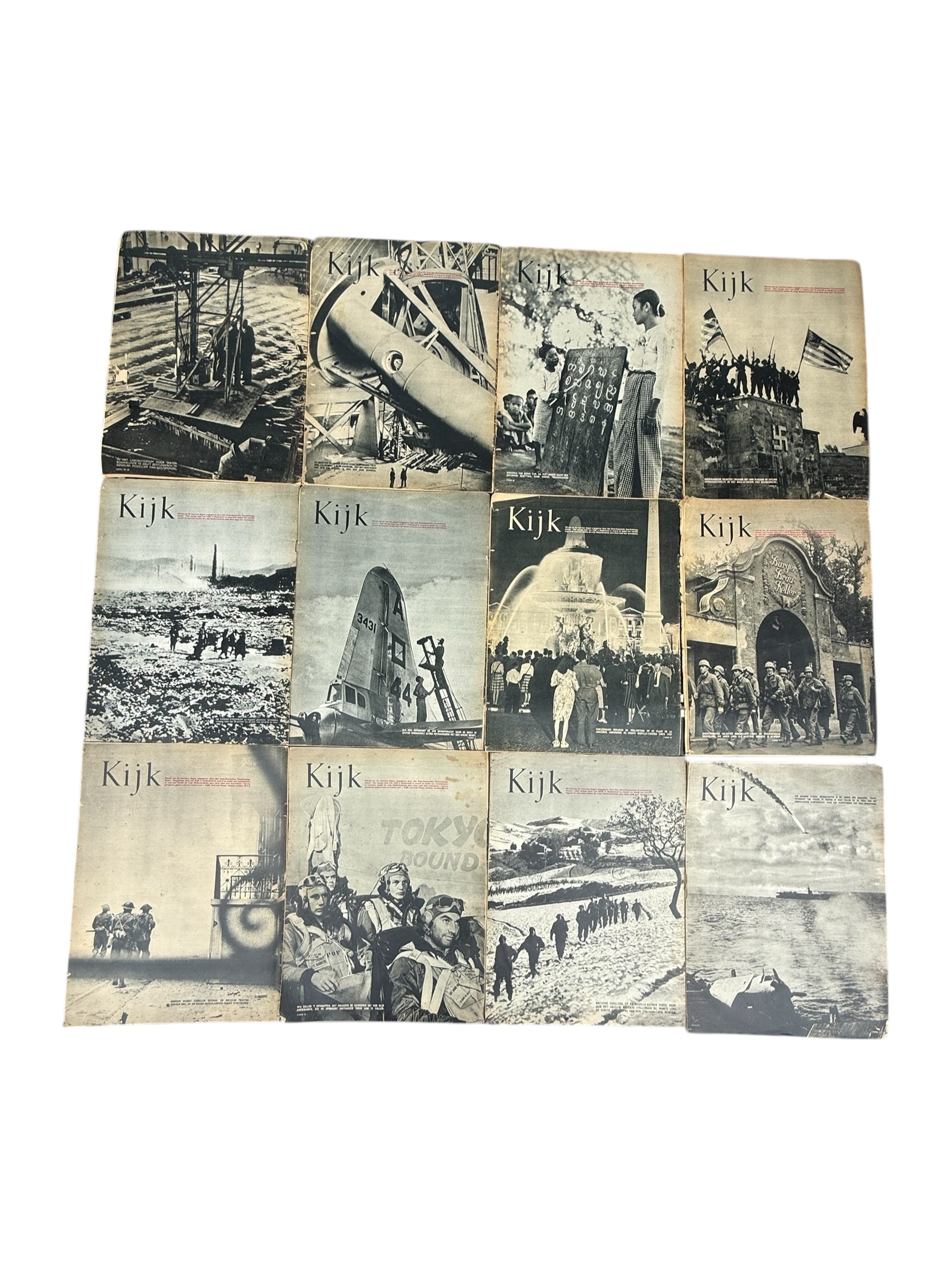 Lotje met 12 Nederlandstalige “Kijk” WO2 tijdschriften, waarvan de meeste exemplaren over het algemeen in goede gebruikte staat verkeren.