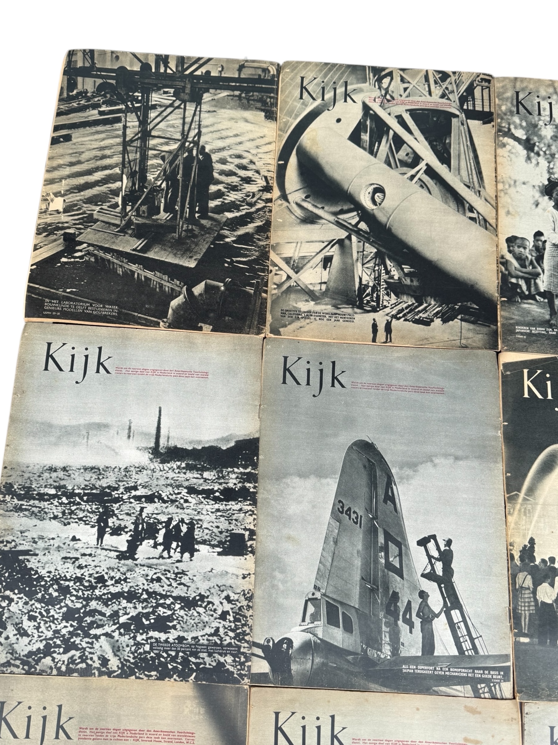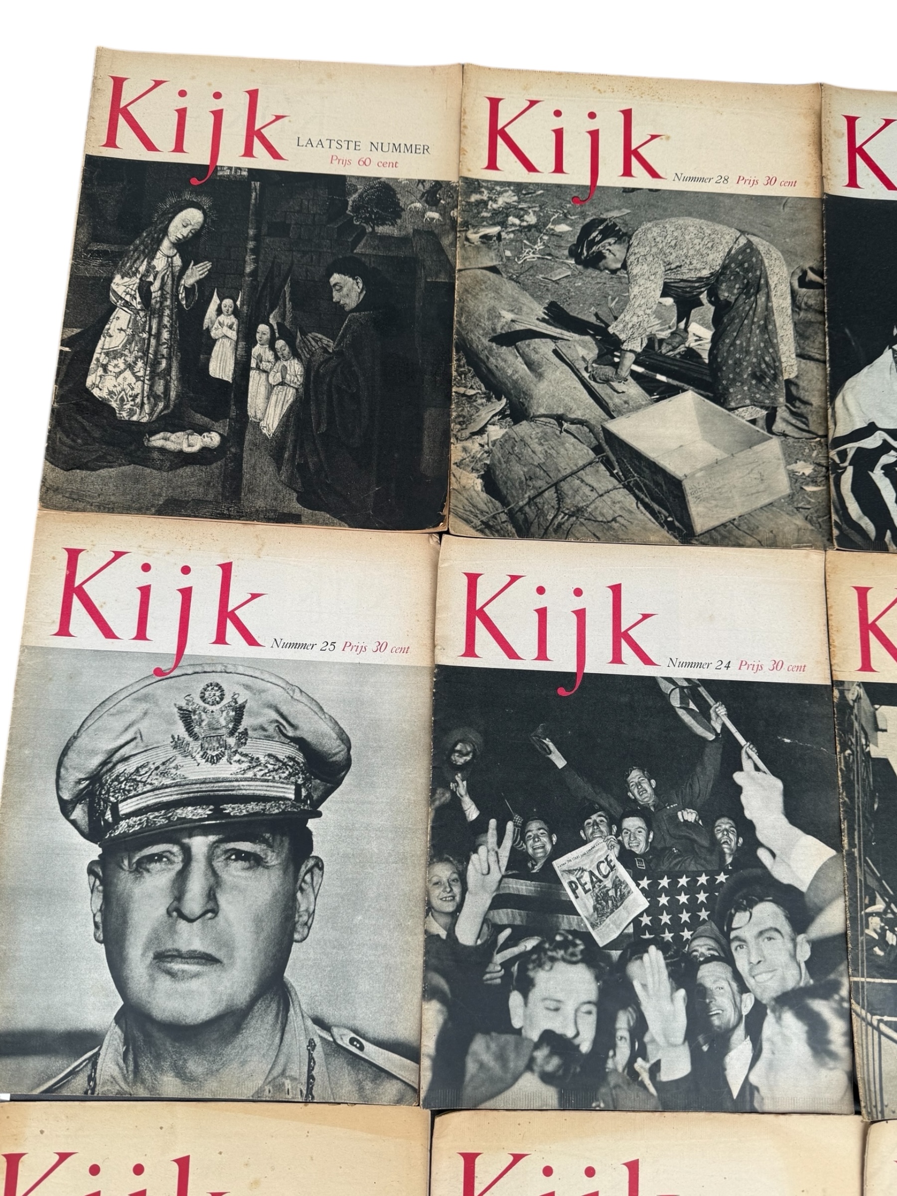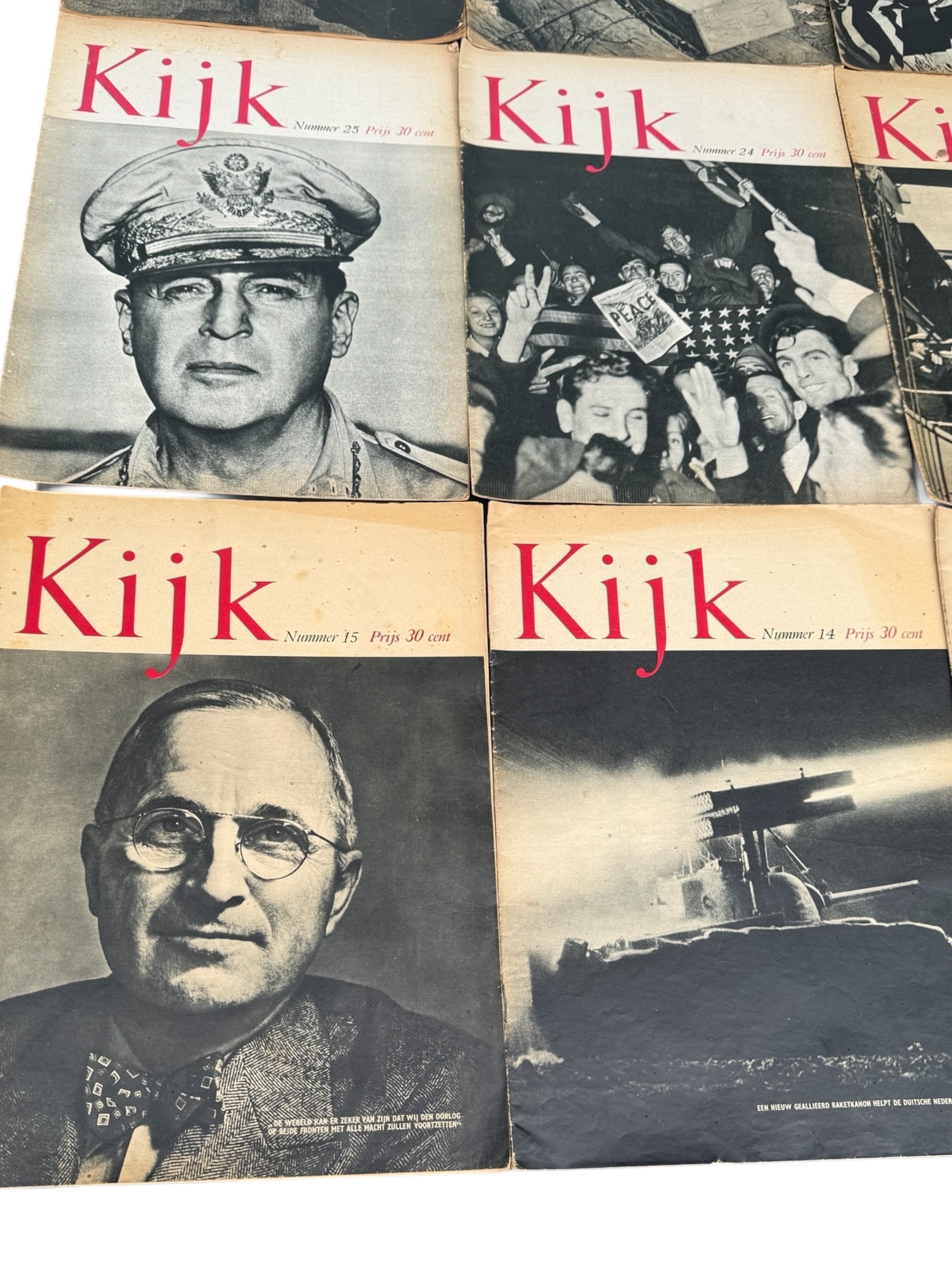 Lotje met 12 Nederlandstalige “Kijk” WO2 tijdschriften, waarvan de meeste exemplaren over het algemeen in goede gebruikte staat verkeren.